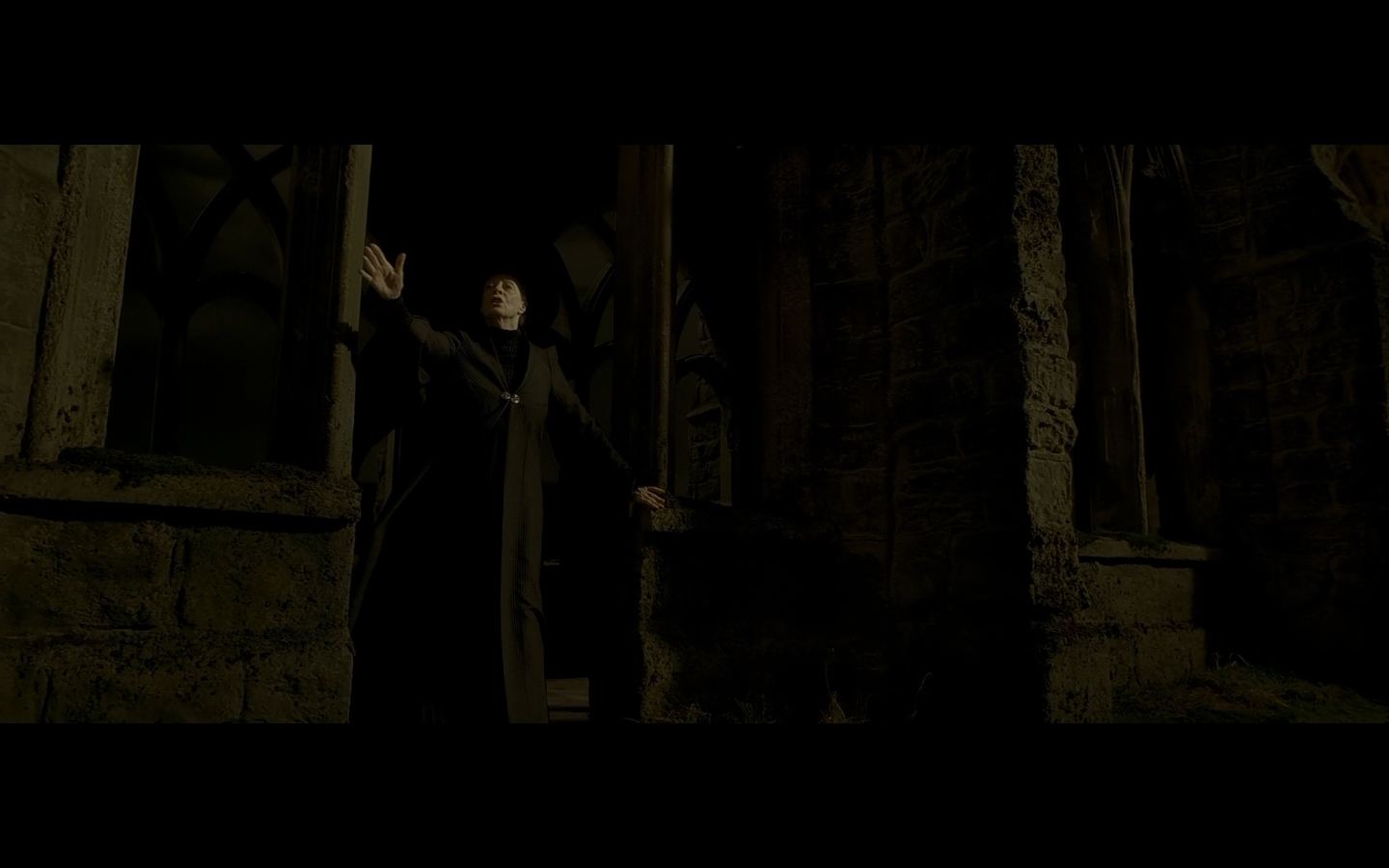 I know they’re like, biding their time for something else, but every time they come into contact with Harry, they just leave him wherever that is. Snape stops Bellatrix by saying that Harry belongs to the Dark Lord, but…should we maybe bring him, then? This is the kid they spend entire movies just plotting to get to, and now that they have him, they’re just walking away as he lies there. Even if they don’t want him now, do SOMETHING.