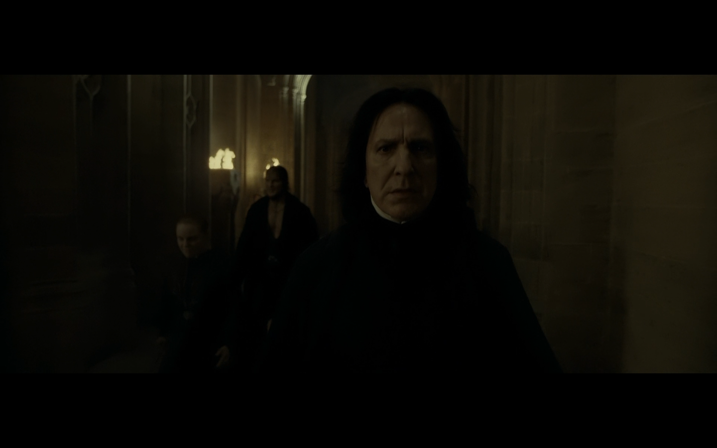 I was gonna argue that the reason they didn’t need him yet was because Voldemort was off figuring out about the Elder Wand and such, but then I realized — why not just kidnap him and keep him in Malfoy Manor? You’re gonna do that in the next movie anyway, so what’s the difference? It’s actually kind of a strange choice. I get where Snape is coming from, trying to protect him, but it’s weird that Bellatrix isn’t like, “Well fucking bring him to the Dark Lord then so I can watch him die!”