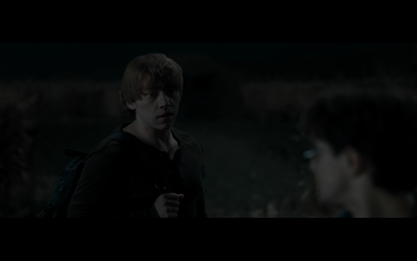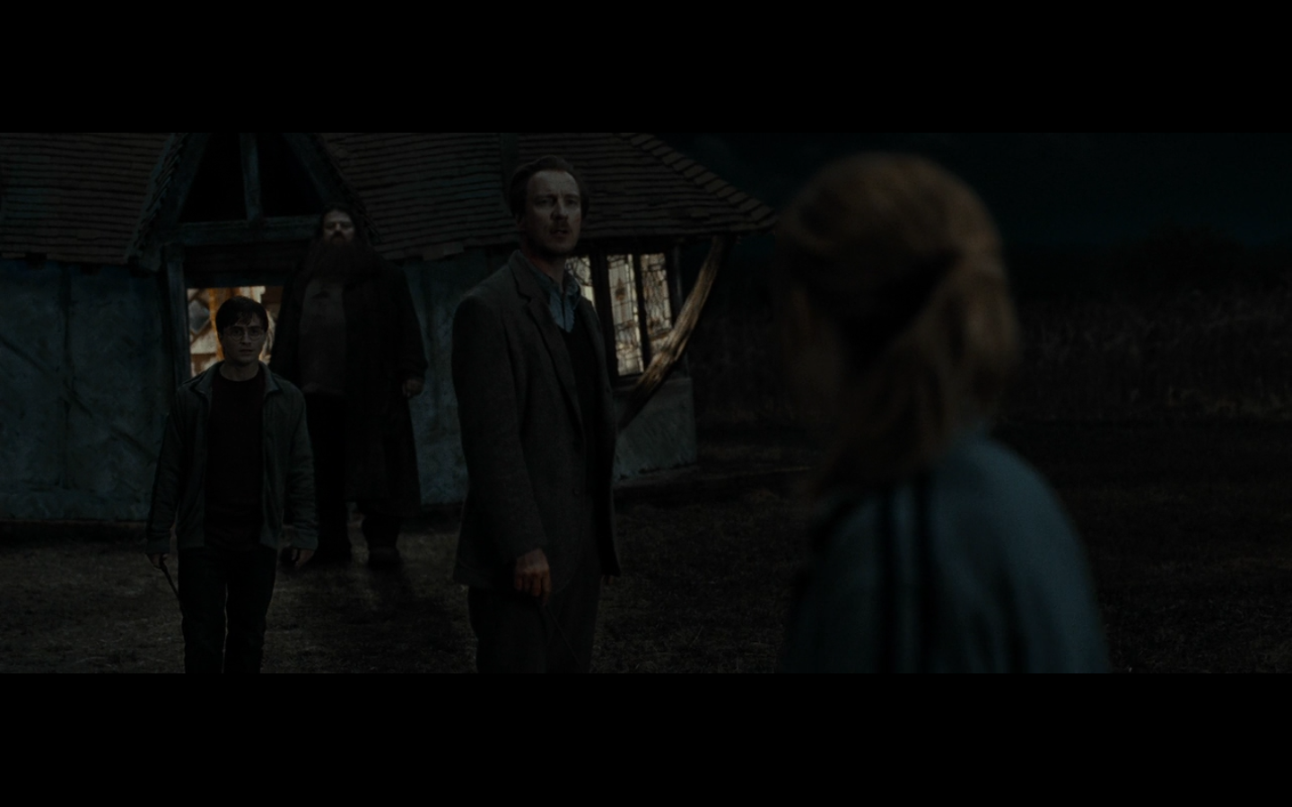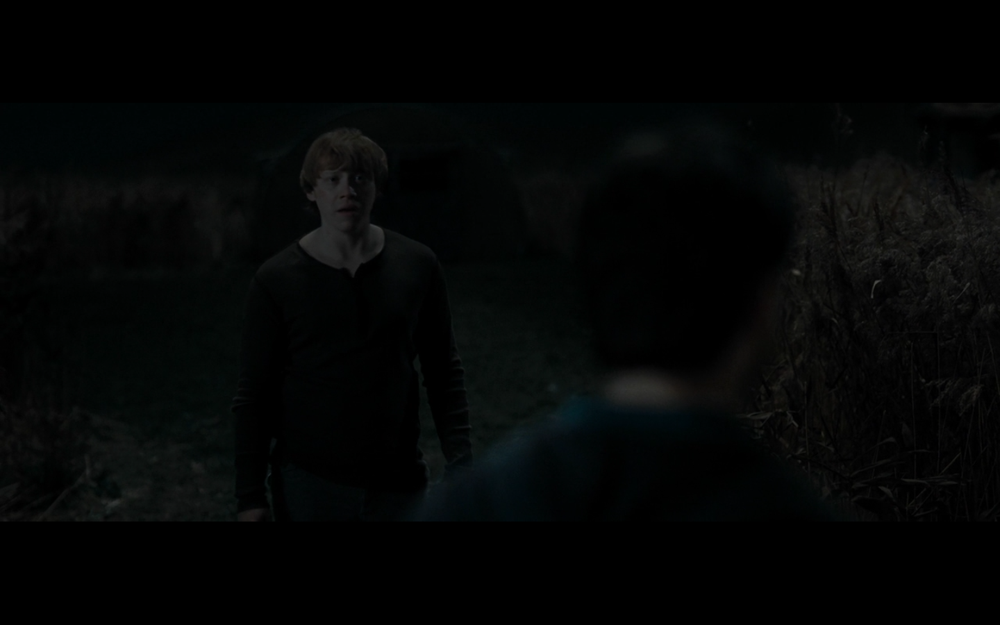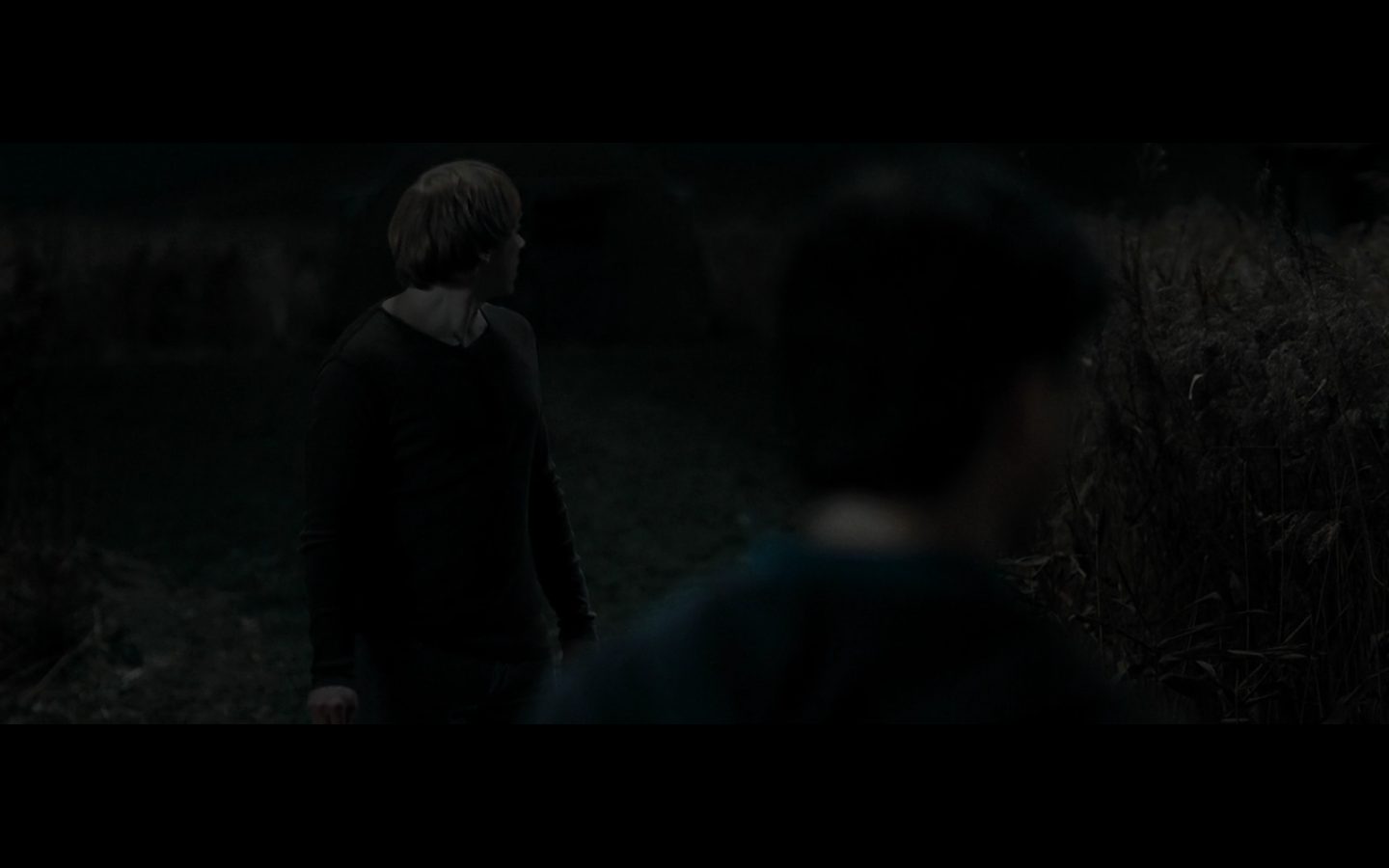 This shot is a perfect summary of their relationship. Hermione runs up to hug [what appears to be] Harry, and when she pulls back, she finds herself holding Ron fucking Weasley. Oh well.