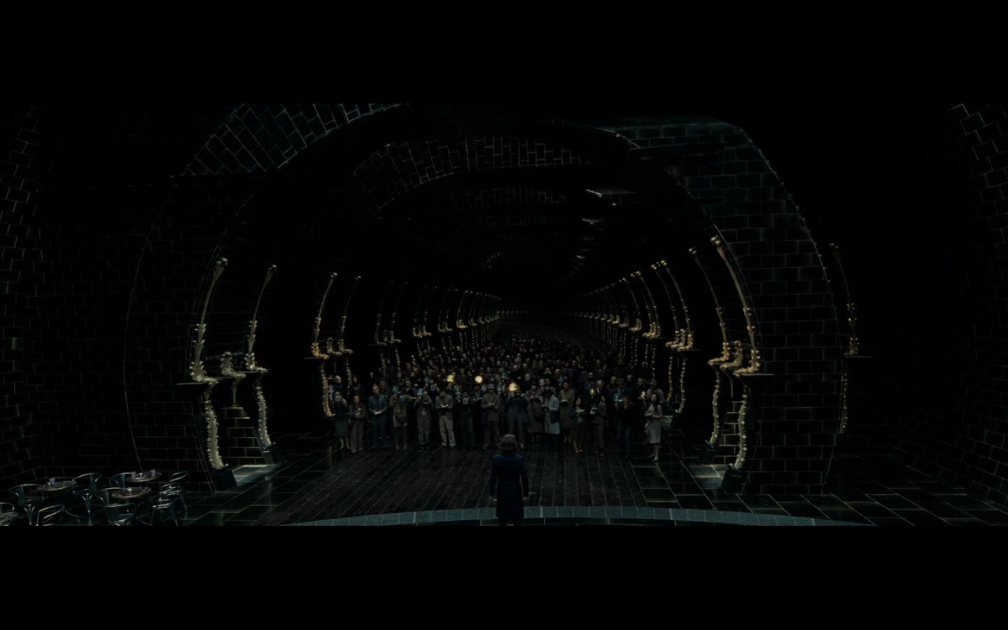 Why did we not immediately open with this? Fuck Scrimgeour and the newspaper. You could show that after this scene. This scene is how you open a fucking movie with some power.