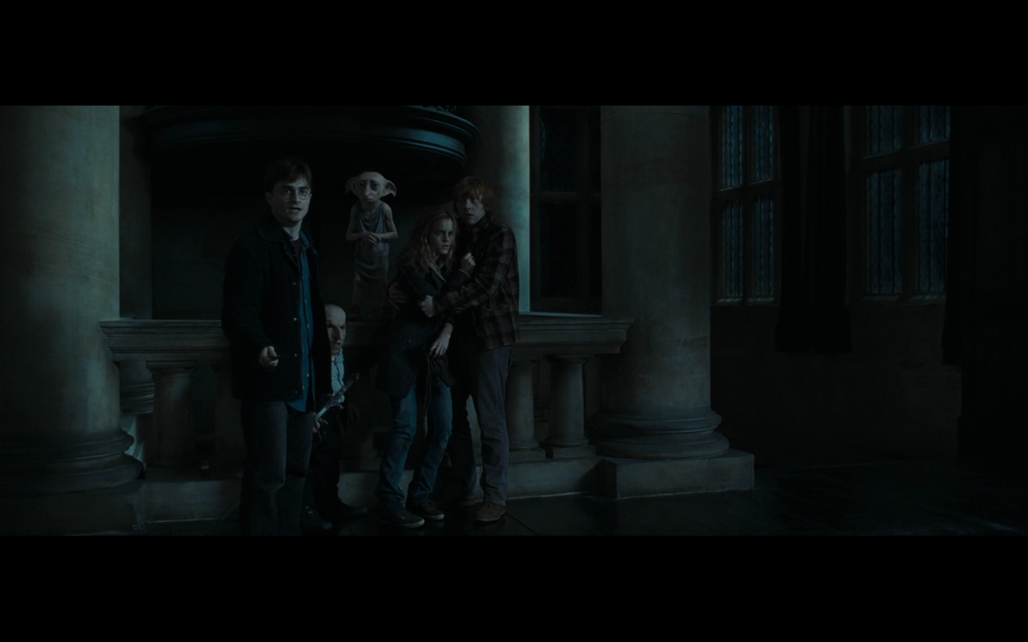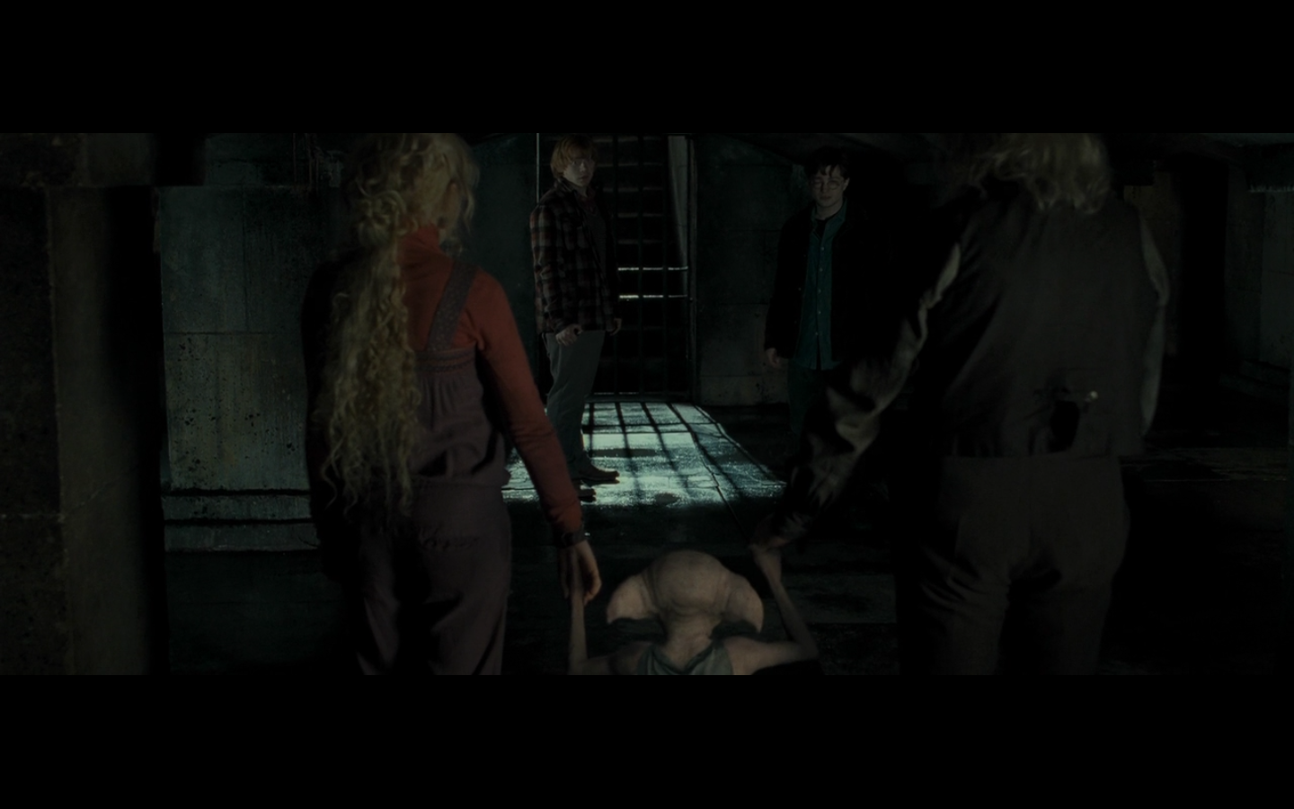 So, can house elves just travel anywhere? This is sort of a two-part question, having to do with what happened earlier and what’s about to happen now. The first part of the question is – can they go anywhere? Since I think the rule is you can only apparate somewhere you’ve been before. I presume because how else would you fucking know where you were going? Every time they apparate, it’s somewhere they’ve been or somewhere Hermione remembers from her childhood and can picture very clearly in her mind. Or, like, in the forest later, she puts her scarf around the tree as a point of reference so they can apparate back later on. And here, Ron tells Dobby to take Ollivander and Luna to Shell Cottage, a place that Dobby has never been before. And yet – they all end up there when Dobby apparates them out of there. So do house elves not have to follow the rules? Are they just wizard Mapquest? Can they just go anywhere without issue? How does that work?