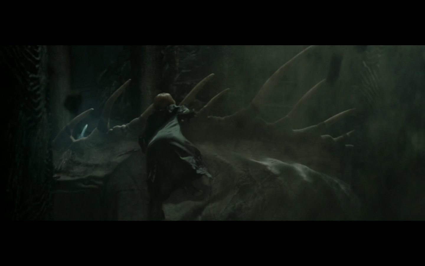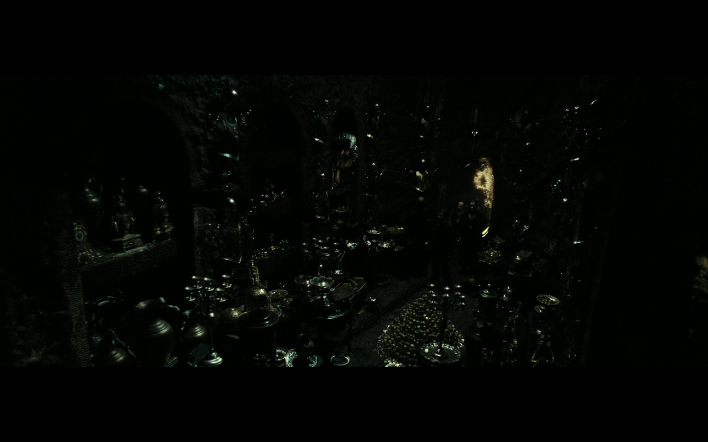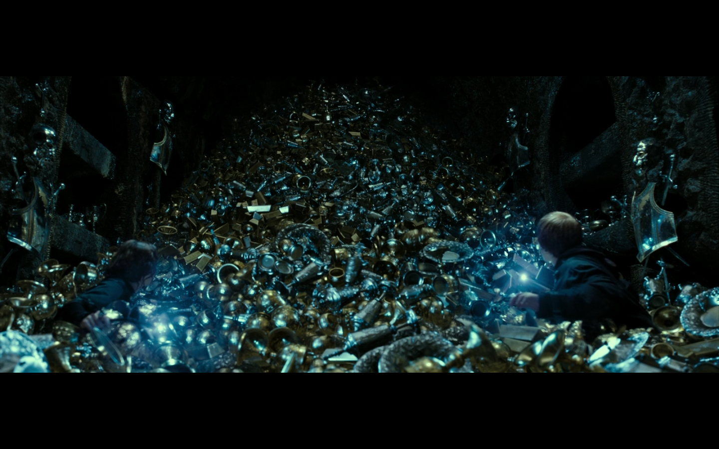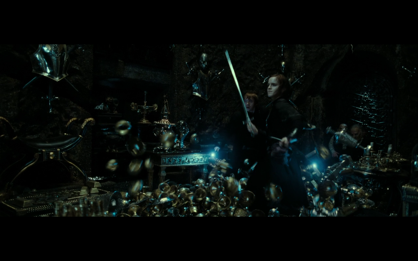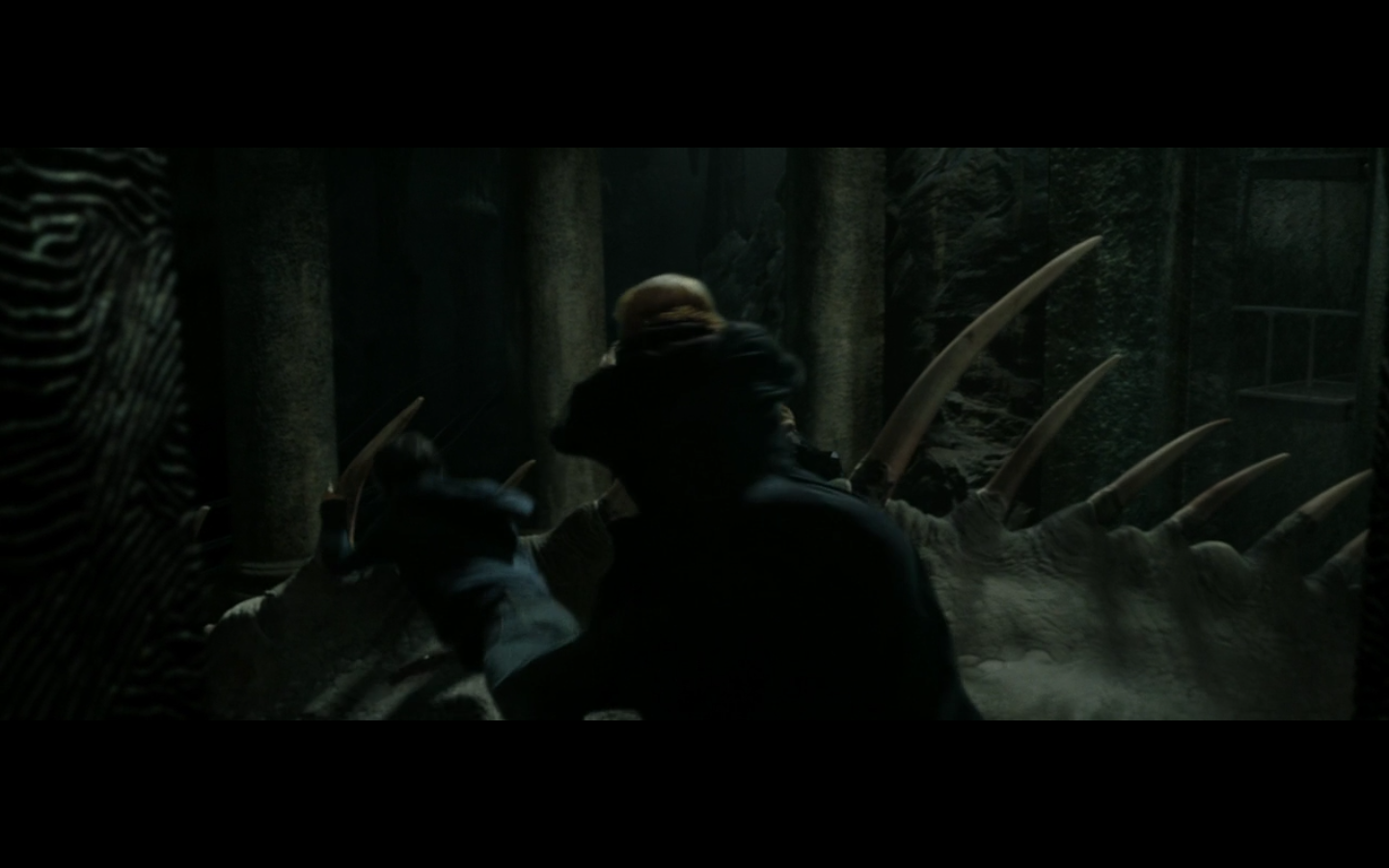 One thing that pisses me off about this scene is how they throw in a half a line of exposition just for the idiots who don’t know. He’s like, “I’ll bet you anything there’s another horcrux in there, another piece of his soul.” That’s the kind of shit that infuriates me, since you should, if you’re watching this movie, know what the fuck a horcrux is. And if you’re gonna feel the need to explain to the idiots who don’t – find a better way to do it. Not only do I write dialogue, I watch hundreds of movies per year. Do you know how bad and out of place a line like that sounds? That’s just amateur hour laziness, right there. At least be a little more delicate about it.
