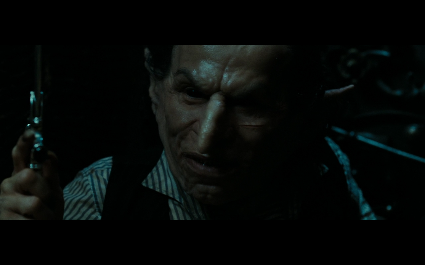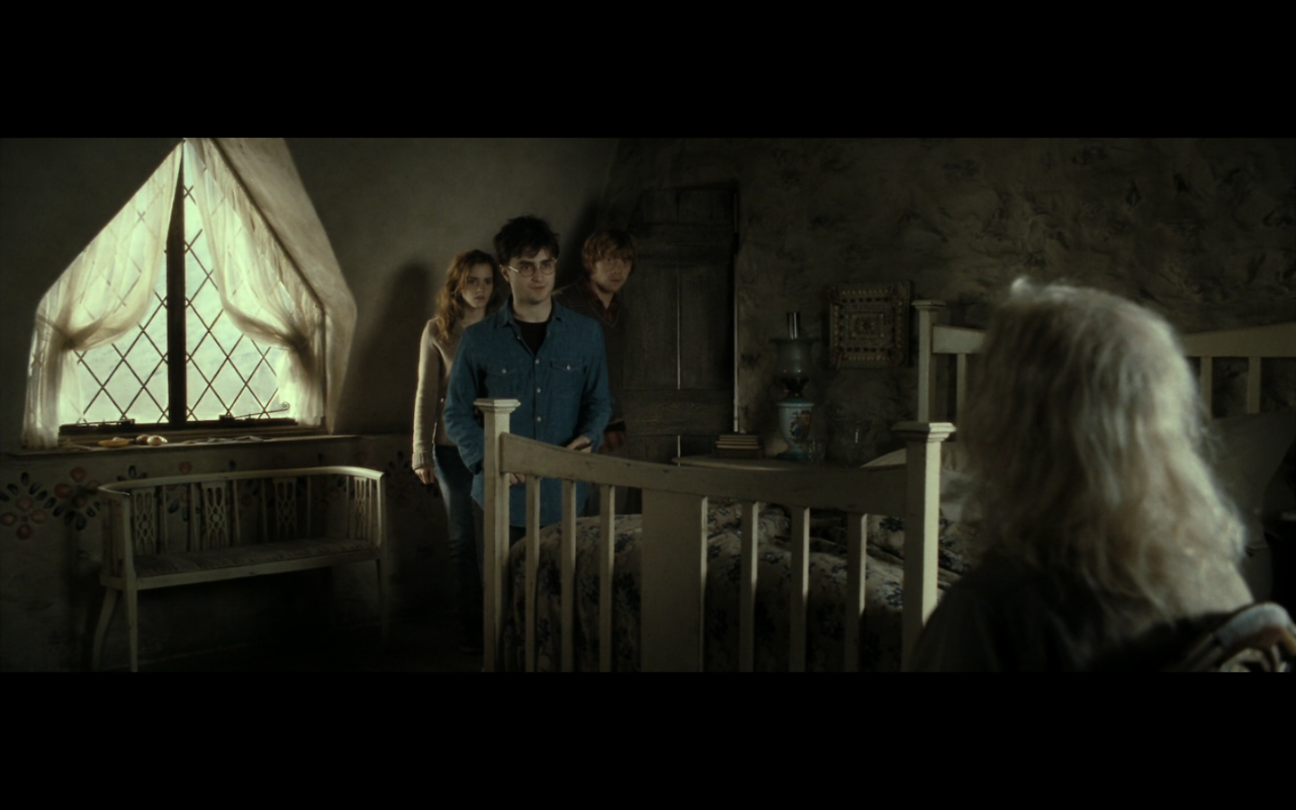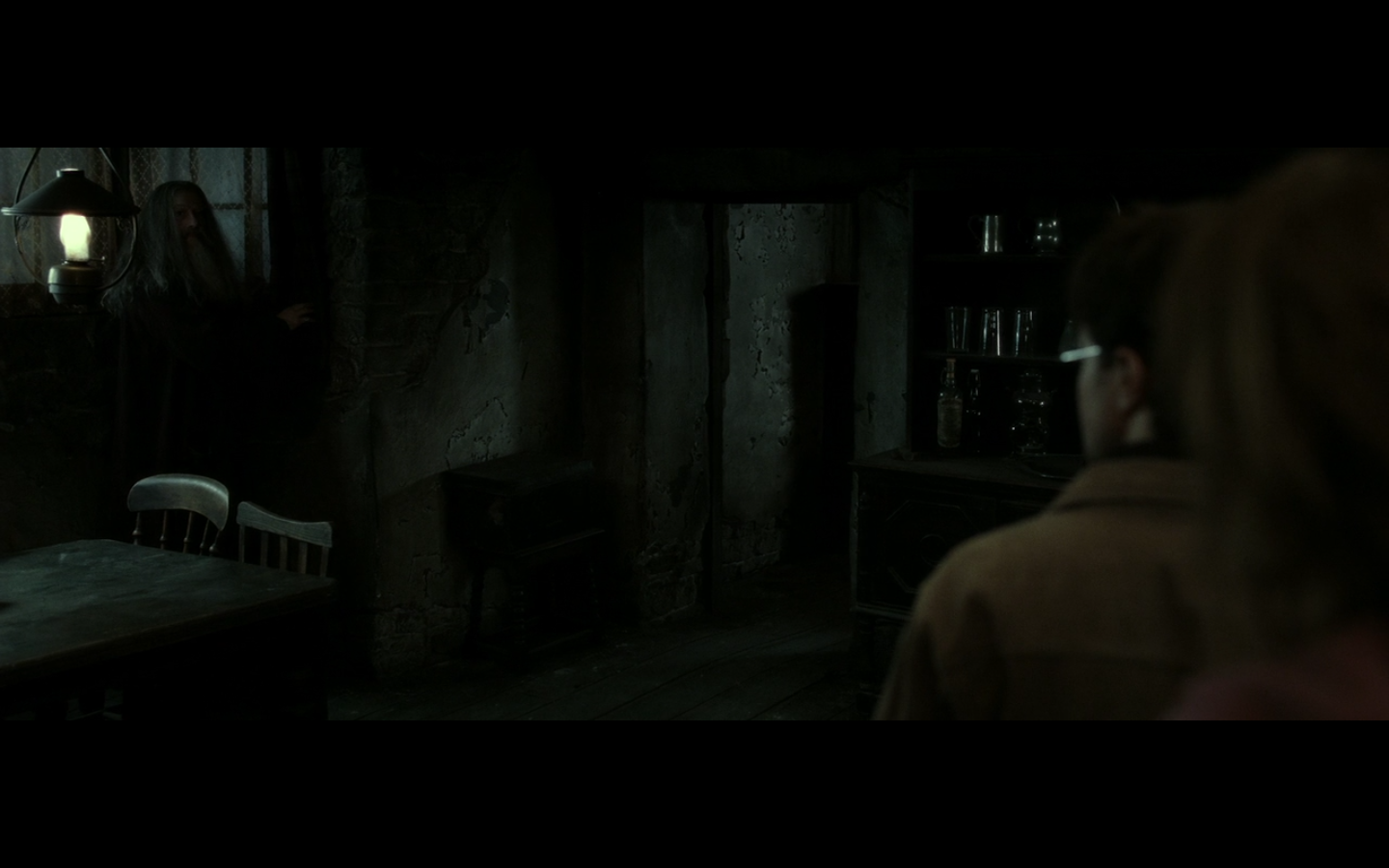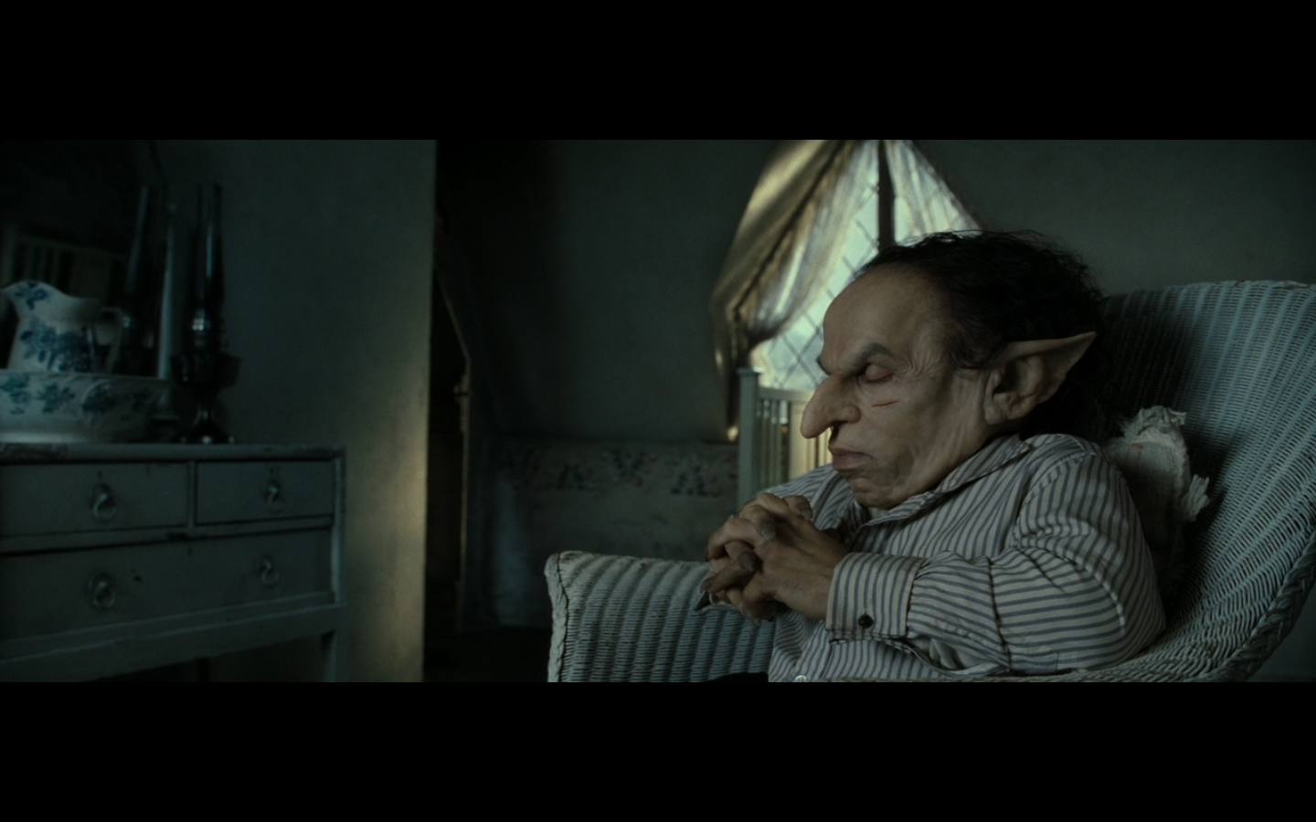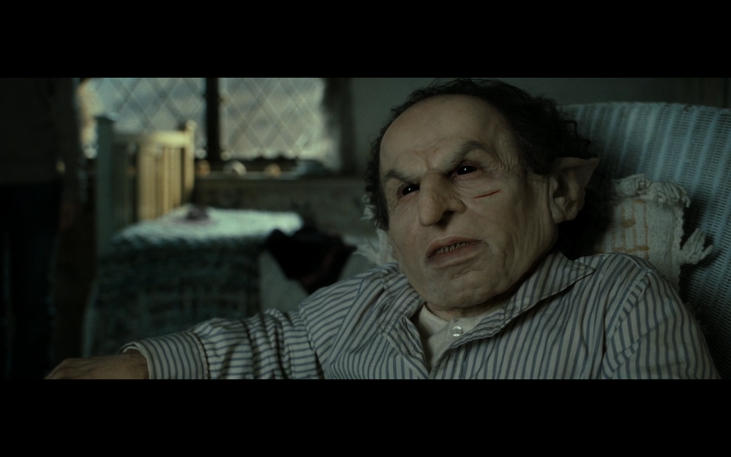 These shots are always my favorite – what exactly is Bill’s purpose in this? Harry’s like, “I need to talk to the goblin,” so Bill escorts him upstairs and shows him into the room and then leaves? Why wouldn’t he just be like, “All right. First door on the left, you know where it is”? No, he had to bring him to the goblin’s room and then awkwardly leave. What the fuck is that? Why couldn’t he stay? Why does he need to be bringing them? And they do it in EVERY movie! No one ever calls them out on it.