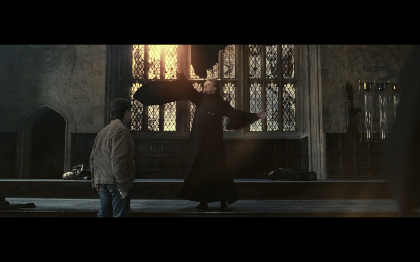 Yeah, but it wasn’t Snape’s curses that they were hit with. Whatever Maggie was throwing, that shit had the power to kill. Molly Weasley doesn’t use a killing curse on Bellatrix, she just gets hit directly with it. These two get hit the same way — no time to block. I’m sure Rowling did have them stunned, but it would be so much better for all involved if they ended up dead from this.