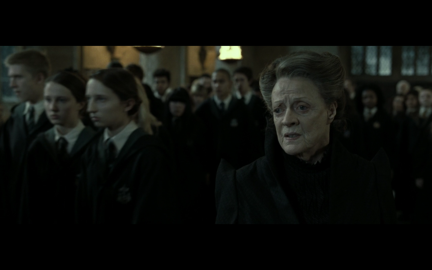 Not gonna lie, I actually had no idea who Pansy Parkinson was until a couple moments from now. I didn’t know who she was when she showed up in Half-Blood Prince, and I didn’t know who she was here until Maggie said her name out loud. And since we saw Katie Bell in the last movie, and she looks a little bit like that (white women all look the same to me), I just assumed it was her.