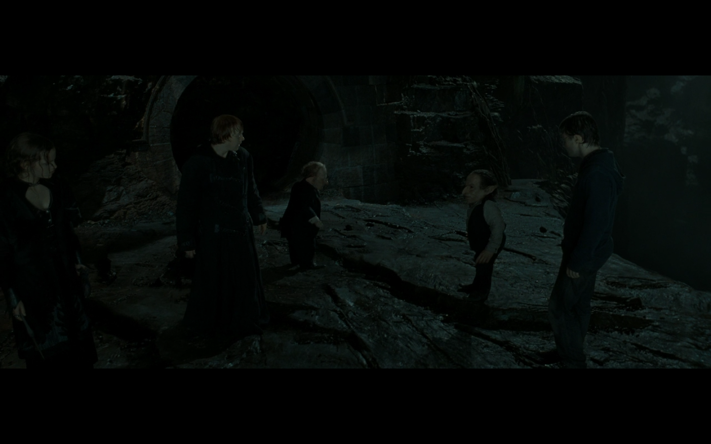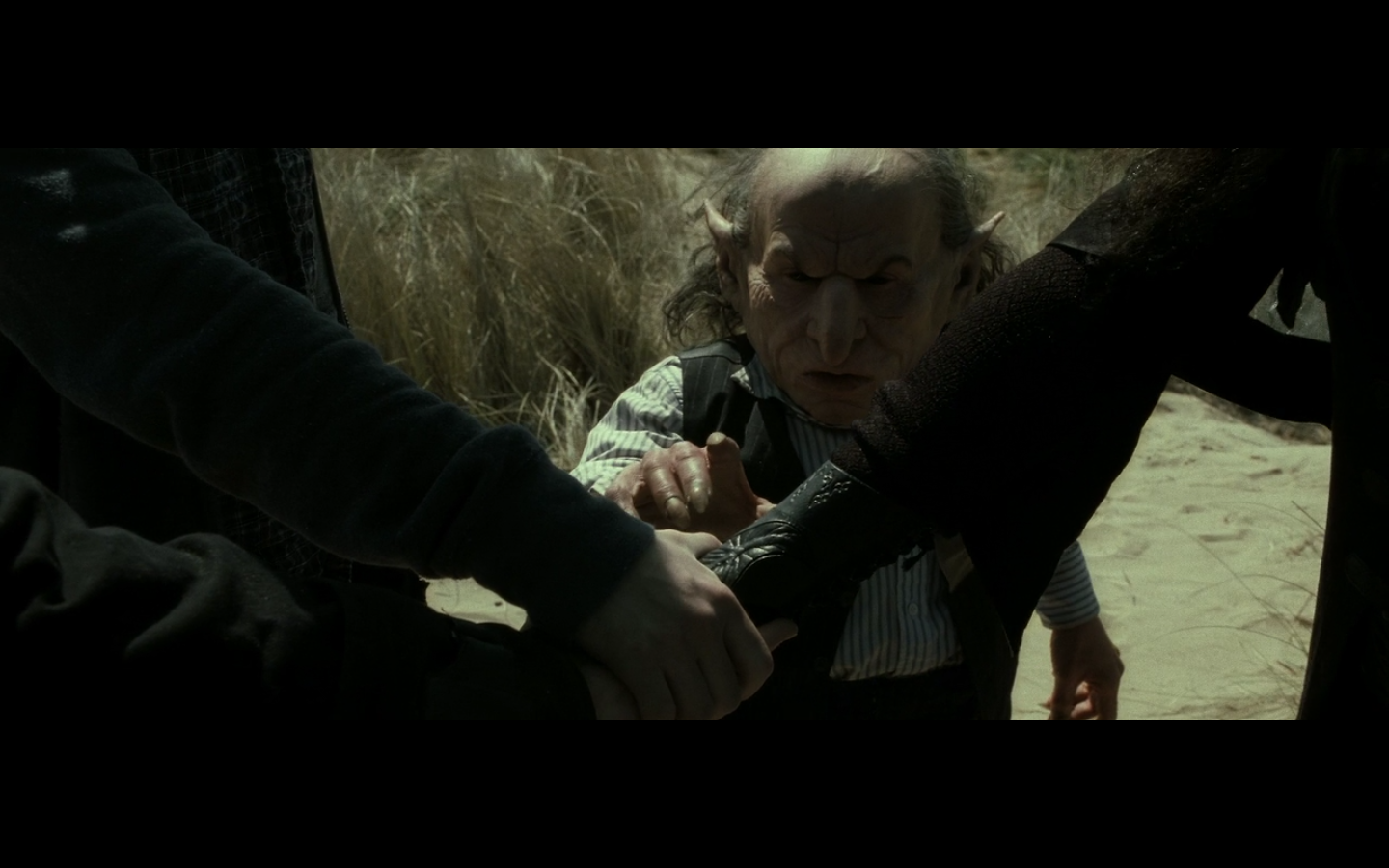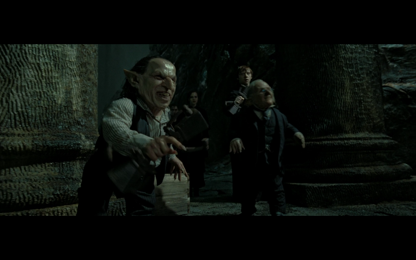 There’s also a nice exchange here, where Griphook asks how he got the sword, and Harry goes, “It’s complicated,” and then Harry asks why Bellatrix thought it should be in her vault at Gringotts, and Griphook goes, “It’s complicated.”