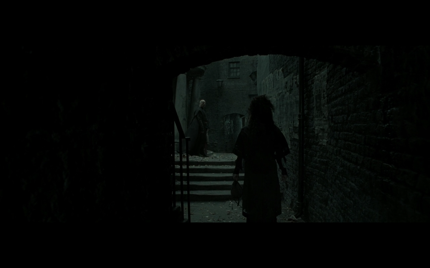 So already we know that Snape is messing with Bellatrix. She’s pretty much the most evil member of Voldemort’s jolly band, so it can be assumed that Snape’s up to no good (or I guess he’s up to good?). How amazing would it have been if SHE’D been one of the ones to be good all along? I would have never seen that shit coming.