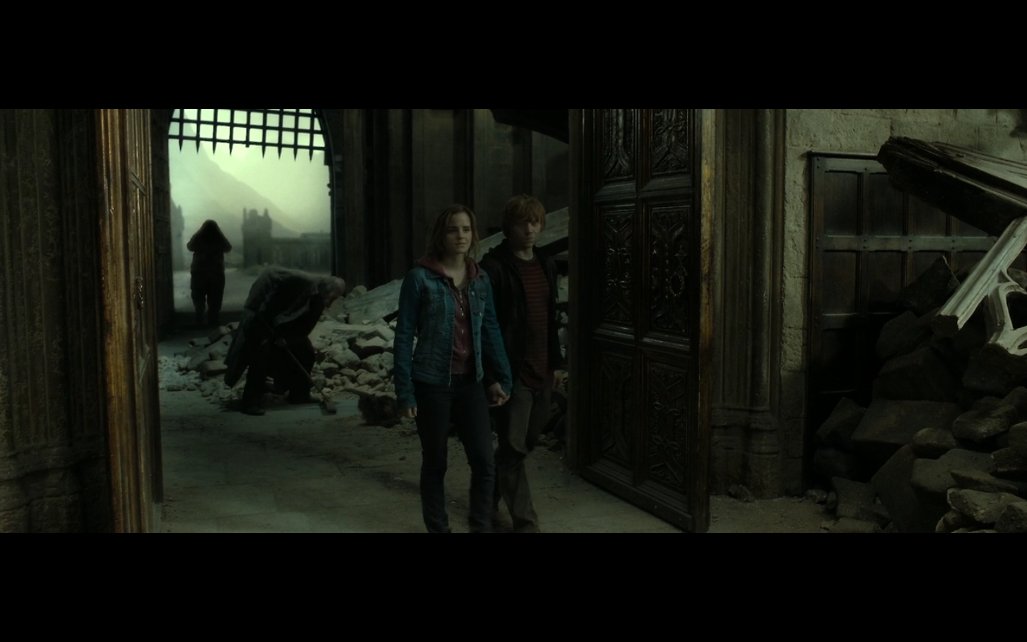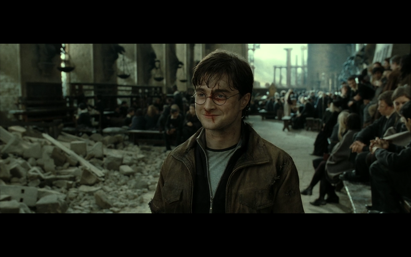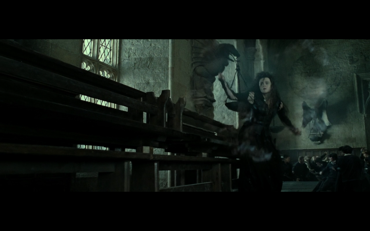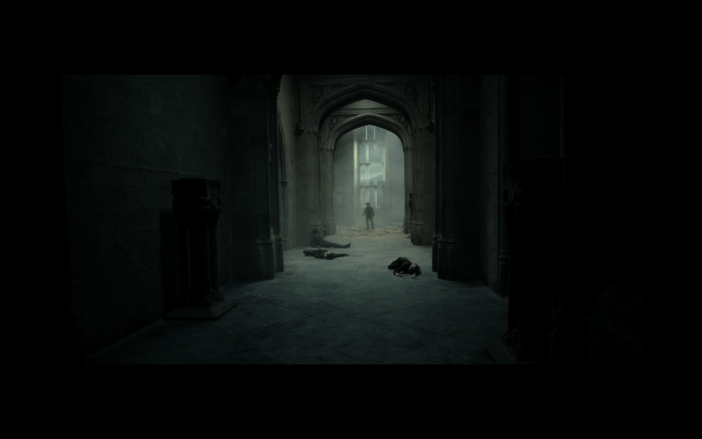 Do spells have a base level of damage that they do to anything they hit that’s completely separate from any other effect the spell has? Cause unless one of those spells is pure physical damage or something like it, I don’t see why the roof crumbles. This is just one of those things that you see and accept cause you’re in the middle of a heated battle, but then at normal times, there’s no way it would go down. Could I break through a wall using Expelliarmus? I think not. It’s for battle effect only — think about the exploding toilets in the bathroom duel with Draco during Half-Blood Prince.