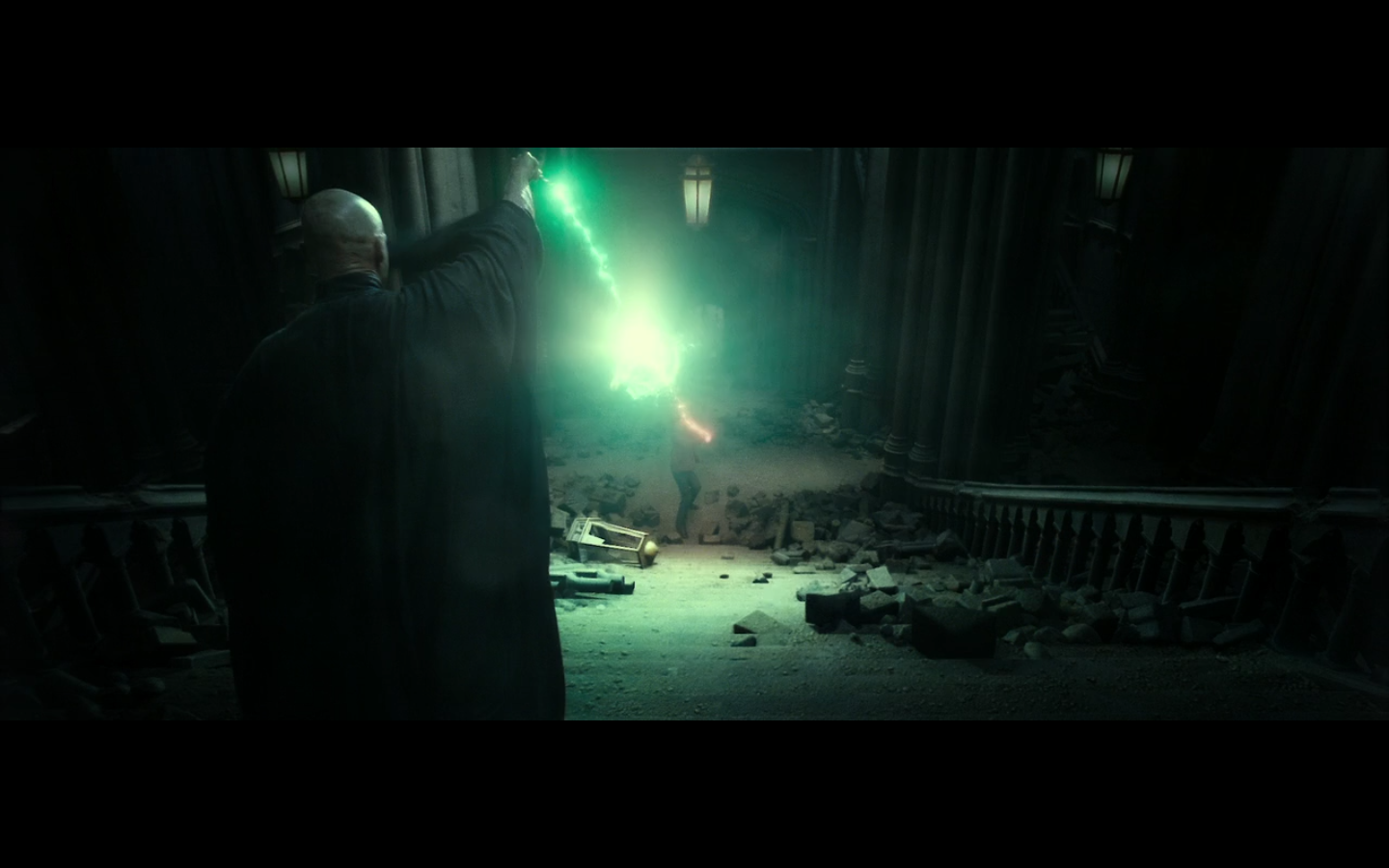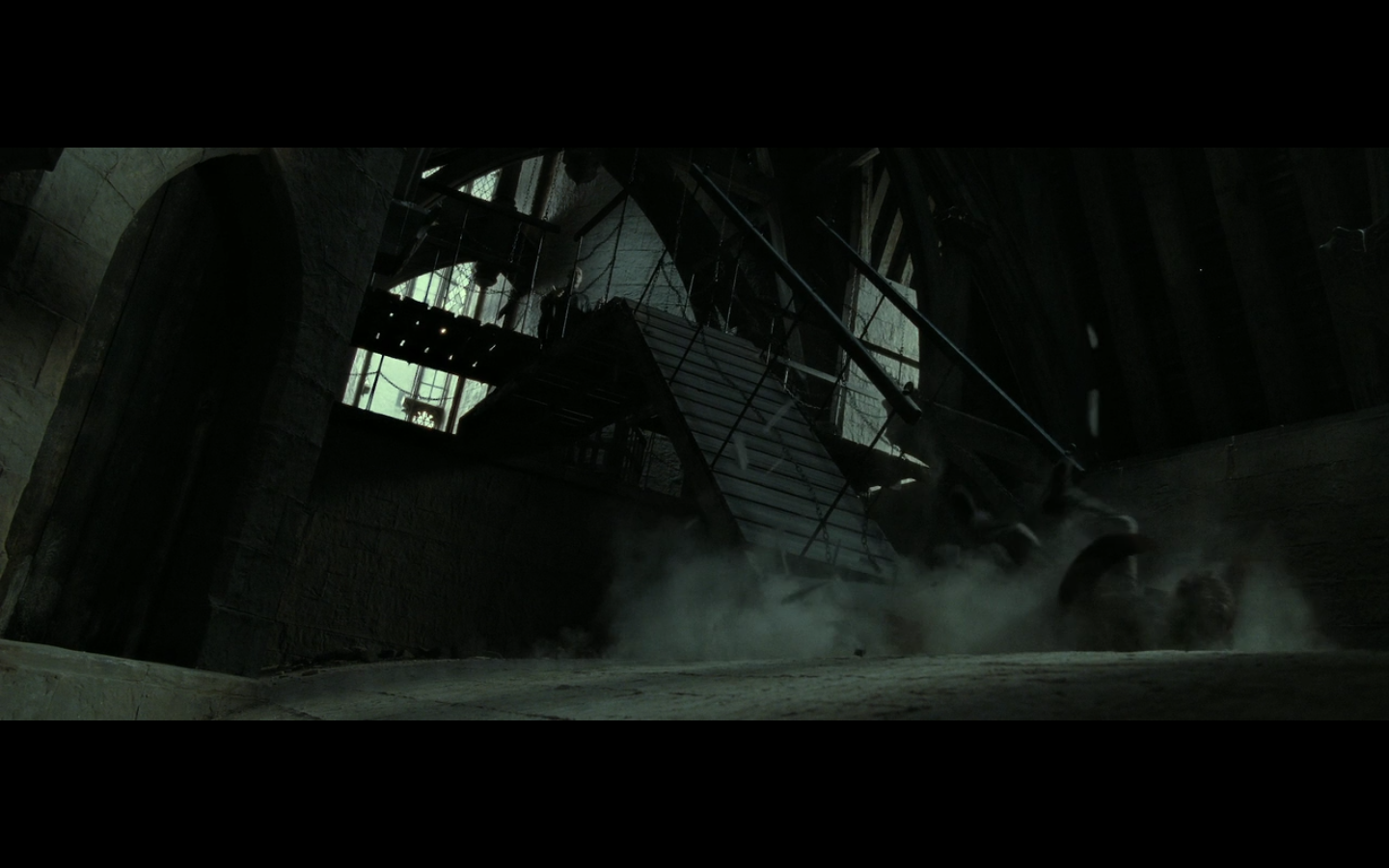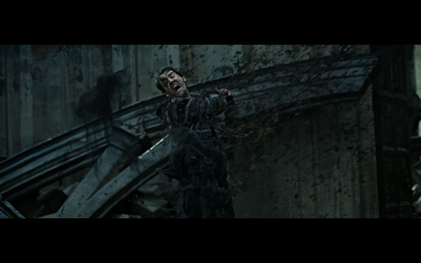 Spells seem to have an explosive effect on objects when they aren’t doing whatever they’re supposed to. Whatever spells they’re shooting here (one of which is a regular killing curse), they have the force to bring the roof down. What if I shoot a spell to turn a mosquito into a baseball, but I miss the mosquito and hit the wall? Will there be damage on the wall, even though my spell is completely unrelated to doing physical damage to an inanimate object?
