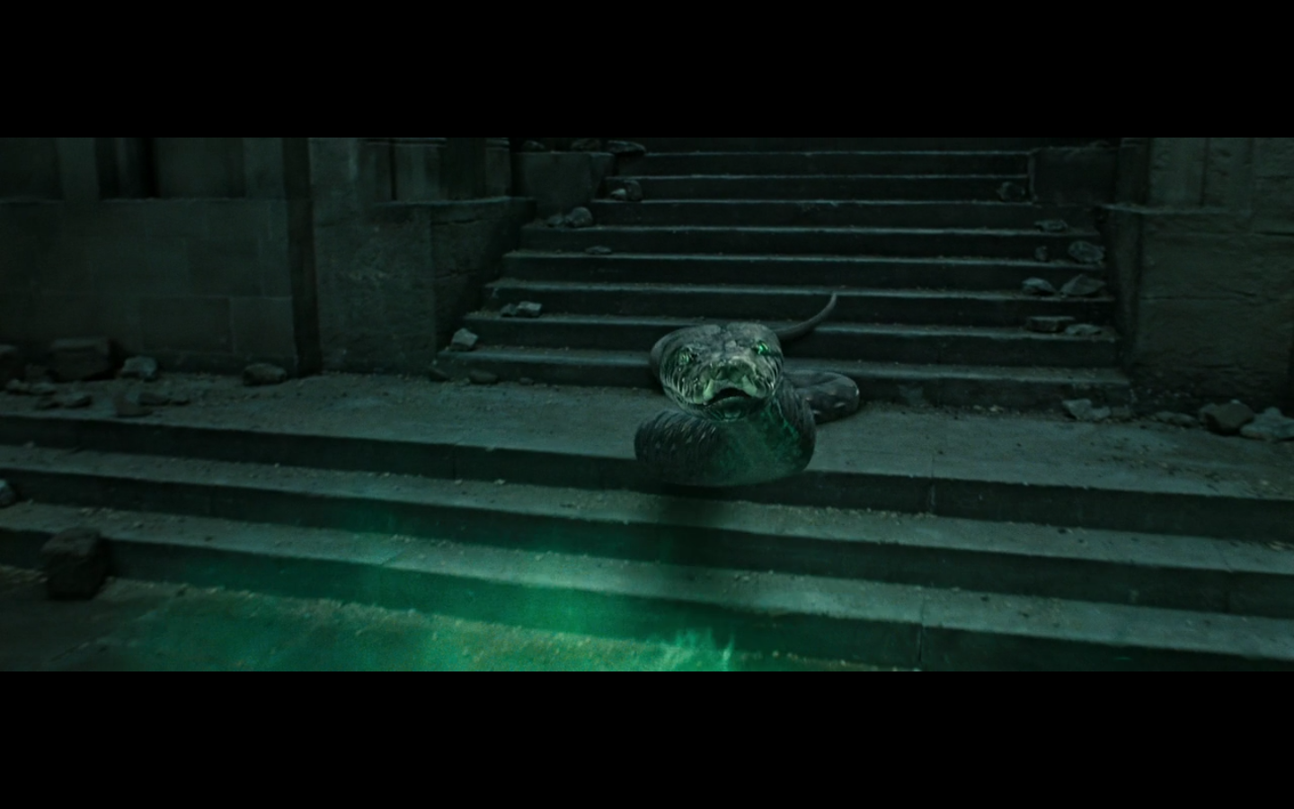 Where did he get the idea to just jump off this precipice? Is that what seemed like the right thing to do at the time? Let’s recap – Voldemort is still cool because the snake is alive; you can very easily die from a fall that has nothing to do with magic around these grounds that aren’t all protected by the anti-gravity charm, as we see with Neville in the first book/film.