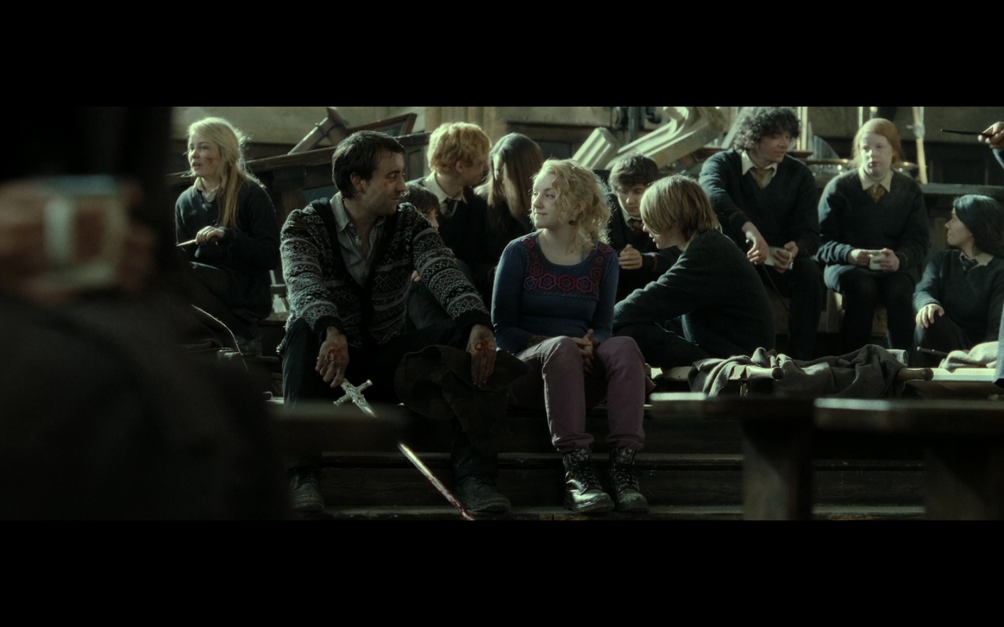 Yeah, notice how I didn’t comment on this ON PURPOSE? Not only is she not supposed to be here, but she’s getting unnecessary looks of understanding with Harry at a time when he should be finding his wife-to-be! Seriously guys, I’ve pretty much accepted that Cho isn’t happening and that it has to be Ginny, but you’re reopening old wounds. This is like ripping the band-aid off, picking at the scab, ripping the wound open wider, pouring salt in there and then cauterizing it so you can DO IT ALL OVER AGAIN. You bastards.