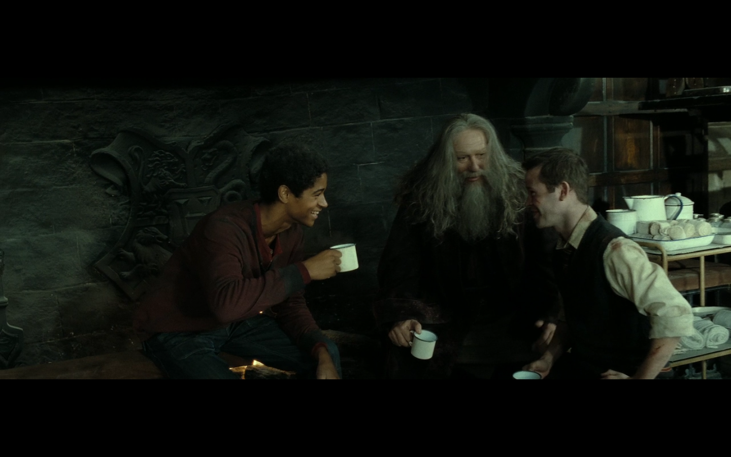 I love that the other Gryffindor guys get to chill with Aberforth. Like they have their own Bizarro World Harry Potter crew.