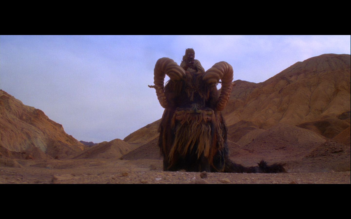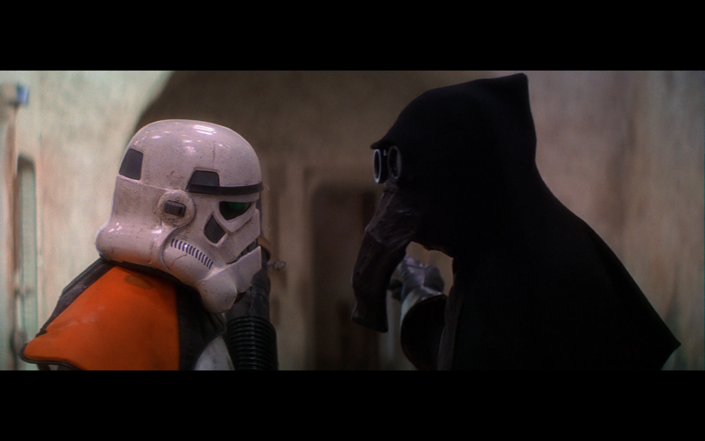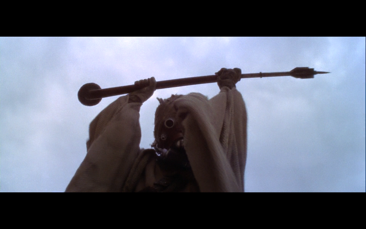 In retrospect, Sand People look a lot like those guys that save Clooney, Jonze and Ice Cube from the gas attack in Three Kings. But it’s comical how fast they run to the bantha and then how slow the bantha turns around.