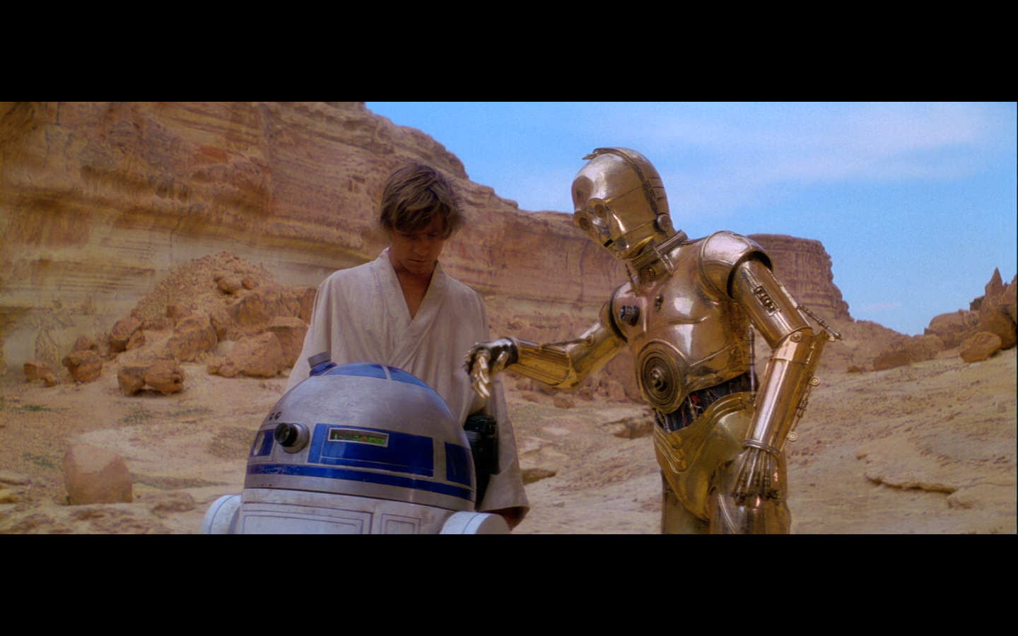 This is also great – R2’s like, “There are people following us,” and Luke’s like, “Sand people… the worst.”