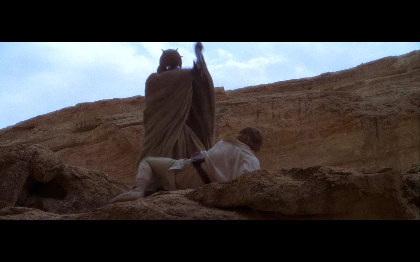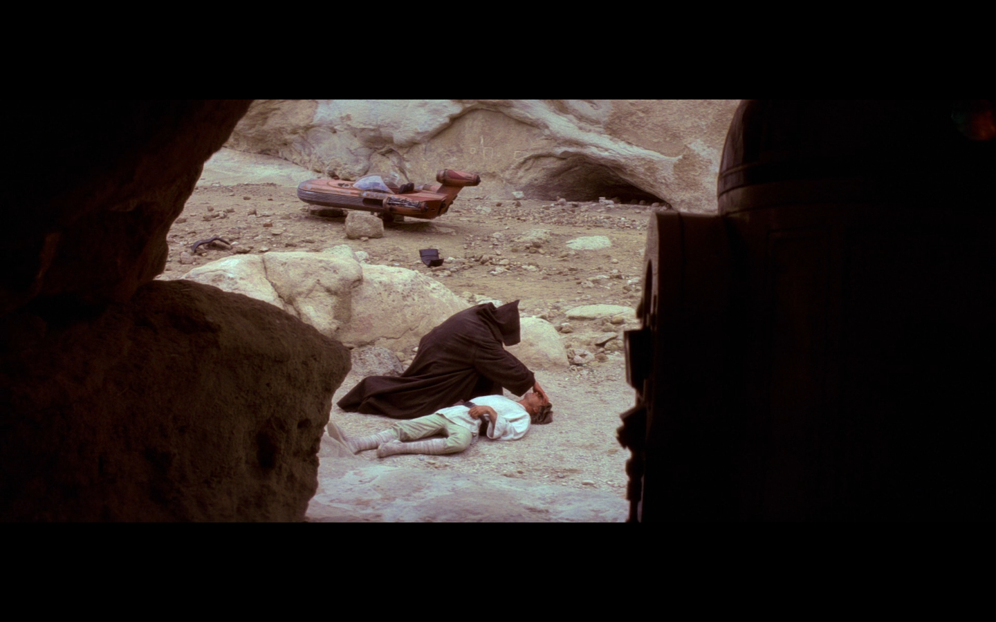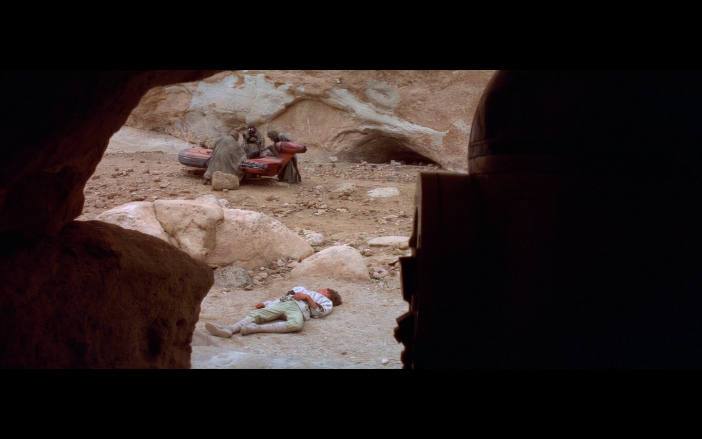 No, keep this shot going so we can hear how high Uncle Owen’s voice gets with each successive time he calls Luke’s name.