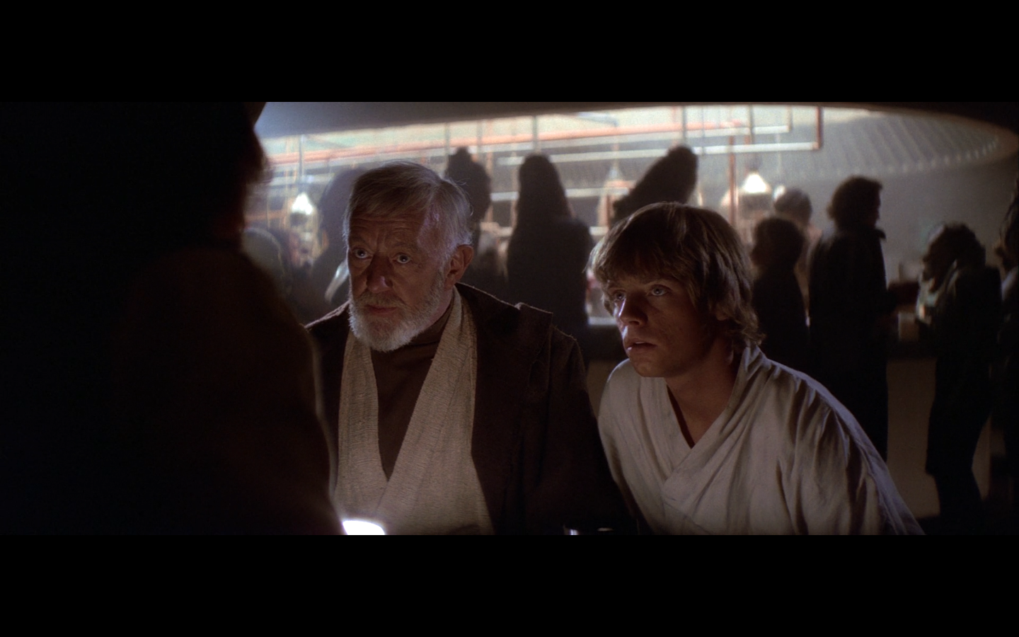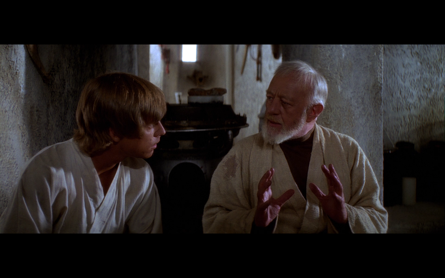 62 at the time of filming this movie, which makes Luke… almost 30? Something like that? But I’m sure the actual timeline has Obi-Wan at like, 50-something and Luke at a crisp 19, right? I’m totally guessing, but I already know that’s what it is. Cut 5-10 years off an actor’s age and that’s what they play, and Luke is the main character, and has to be between 18 and 21. And since all his friends are at the academy and he’s not, I’m gonna guess 19.