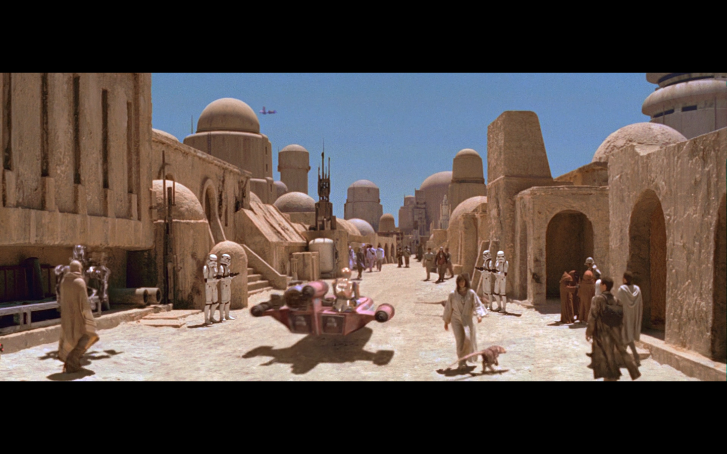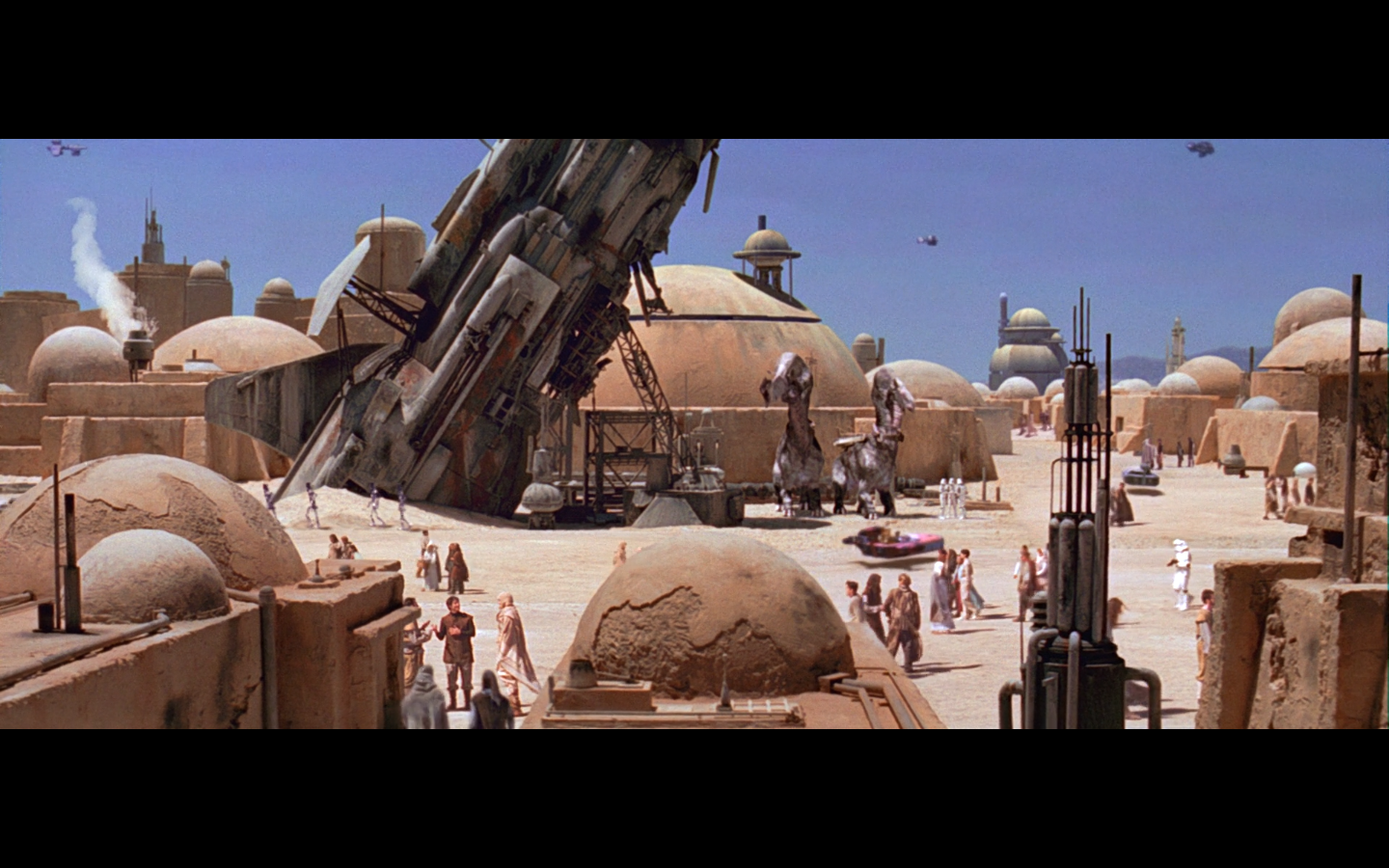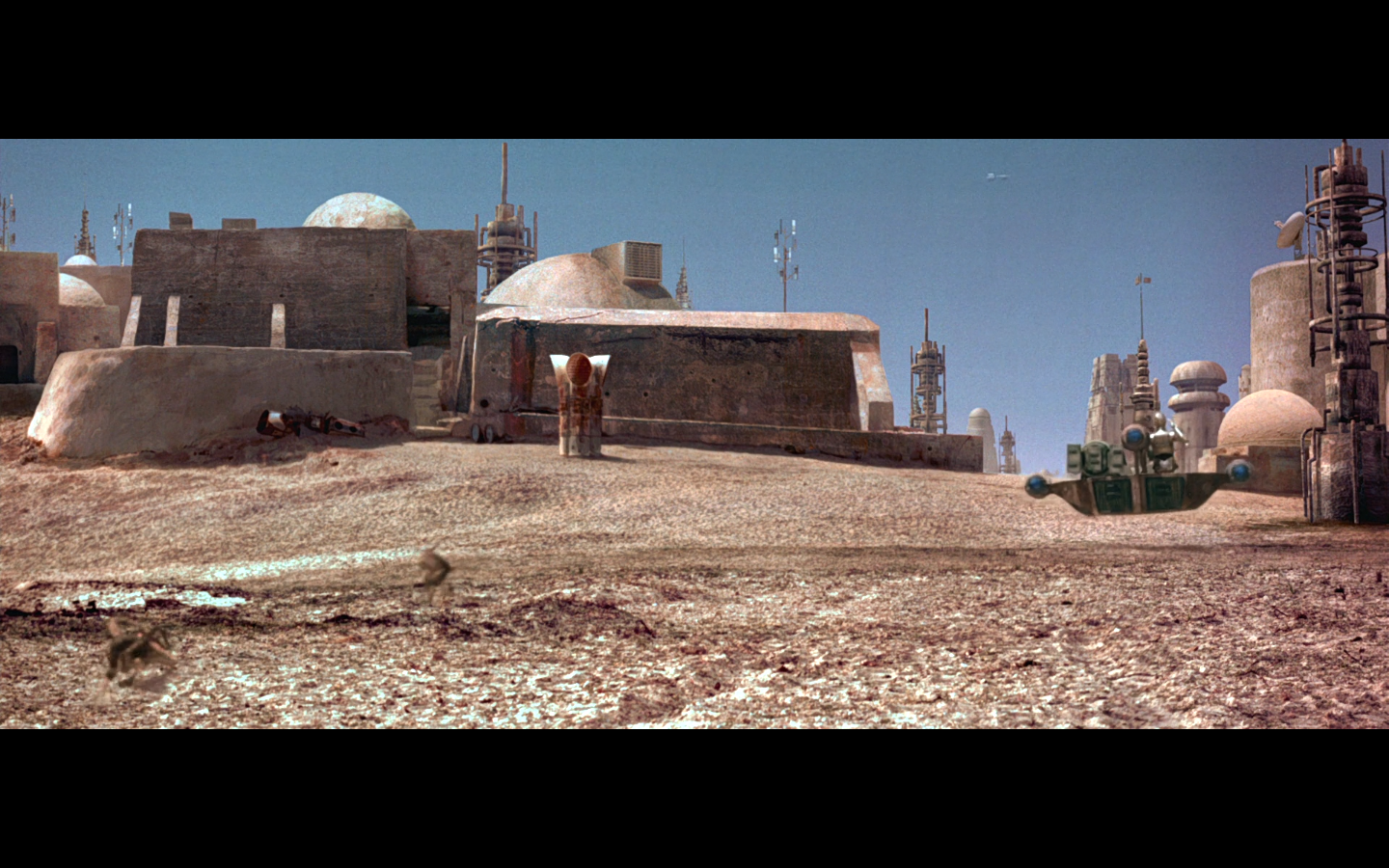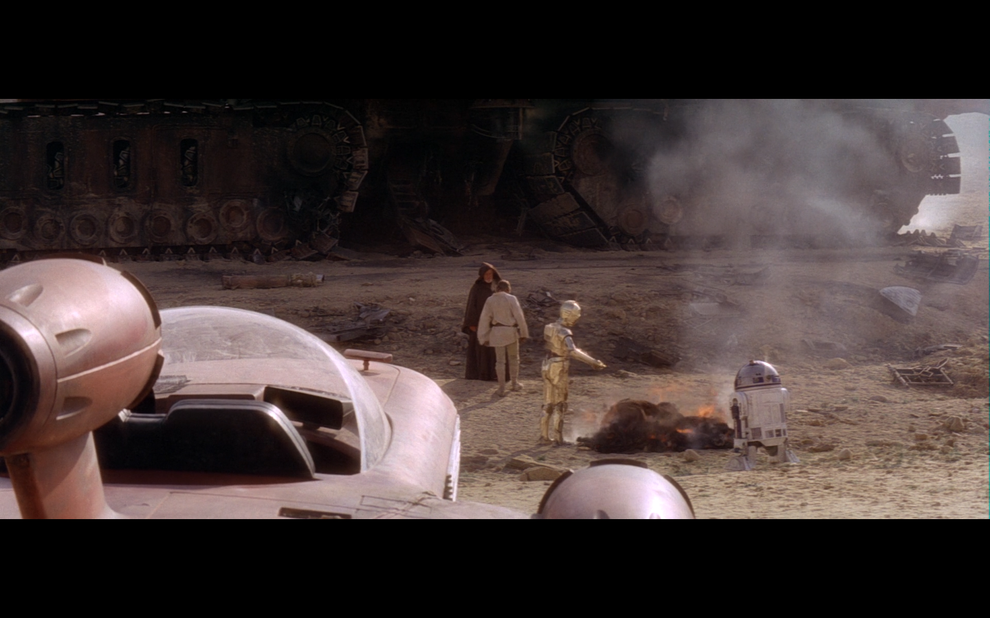 Obi-Wan says they gotta get indoors. “The sand people are easily startled.”