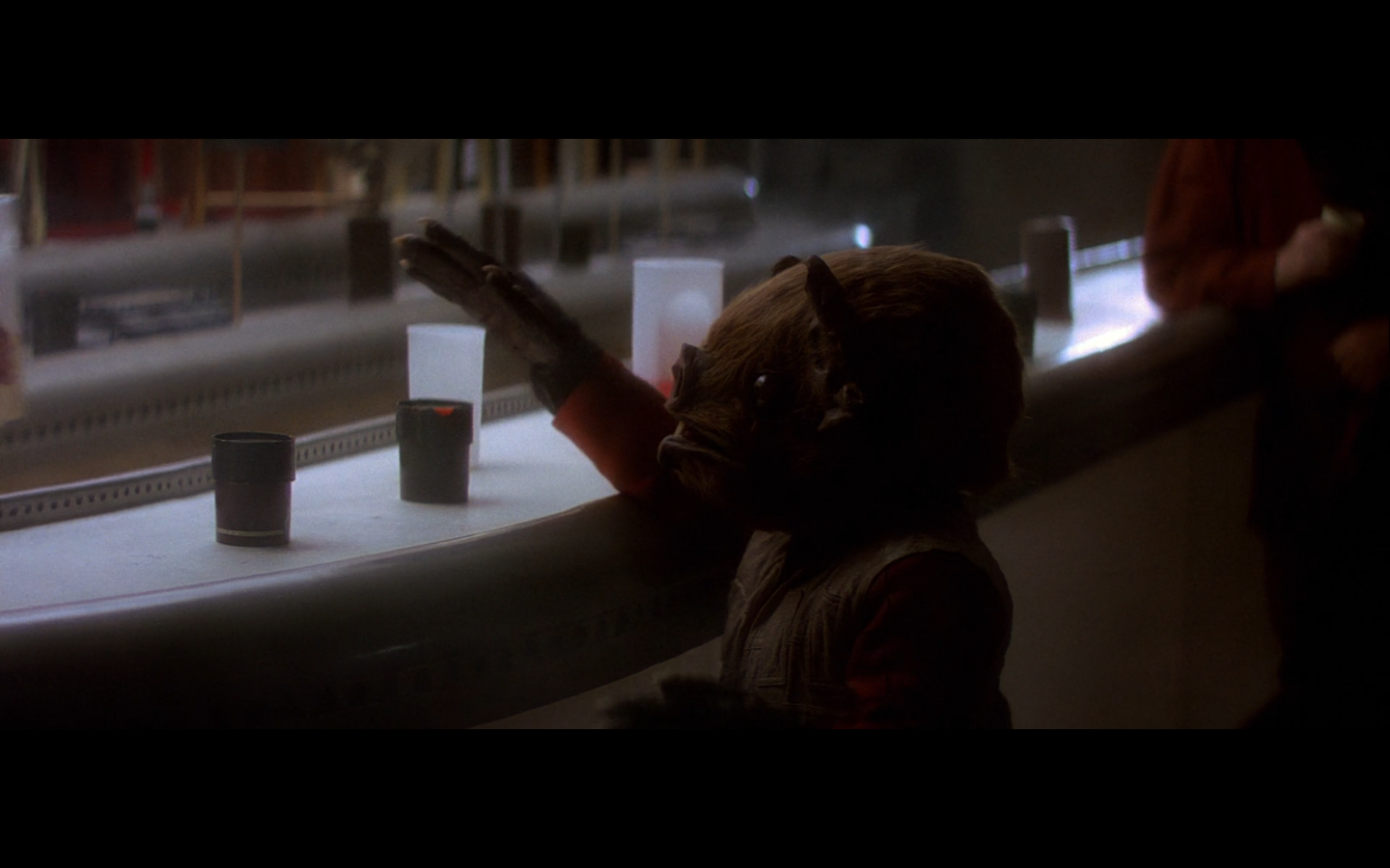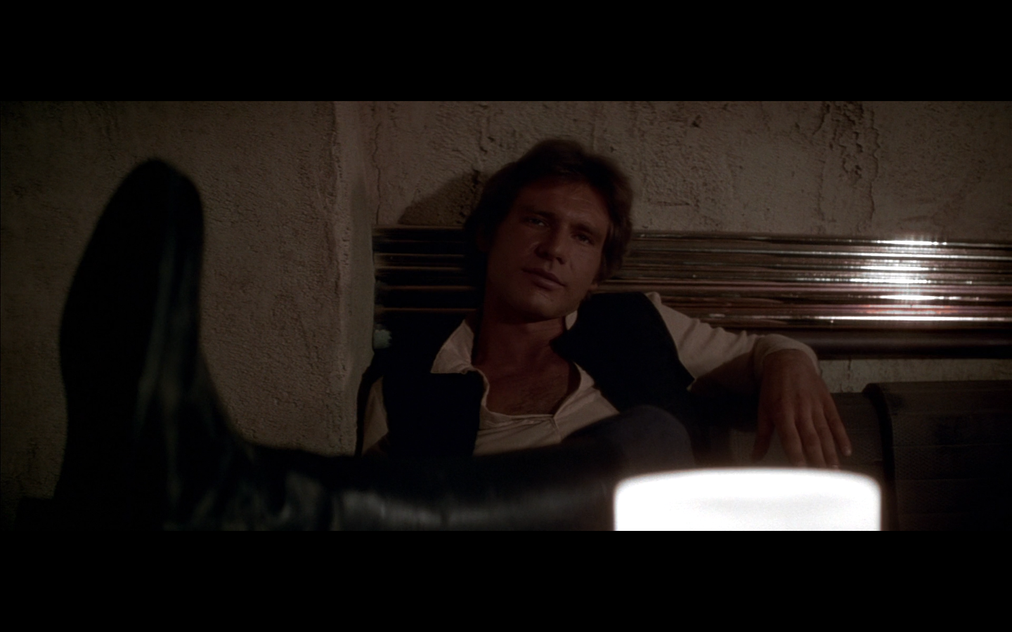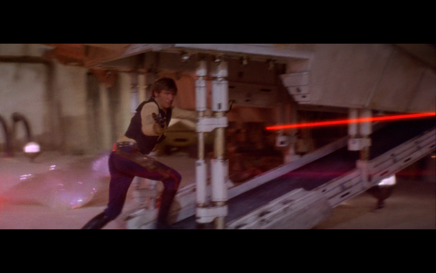 Okay, so I do need to address the Greedo shooting first thing. First, does it matter? In short, yeah. Cause Lucas’ explanation is that Han only shoots after Greedo has, because he “had to.” It makes Han Solo less of a bad guy and puts his morals on much firmer footing. Which…no. We want the arc of him going from scumbag-out-for-himself to the hero willing to risk himself for others. Don’t try to sugarcoat him at the beginning, because that makes his “transformation” less interesting.