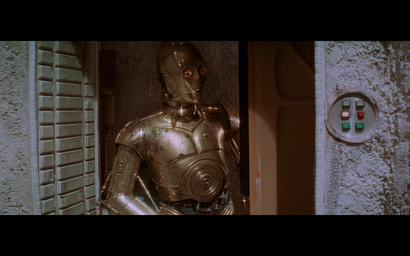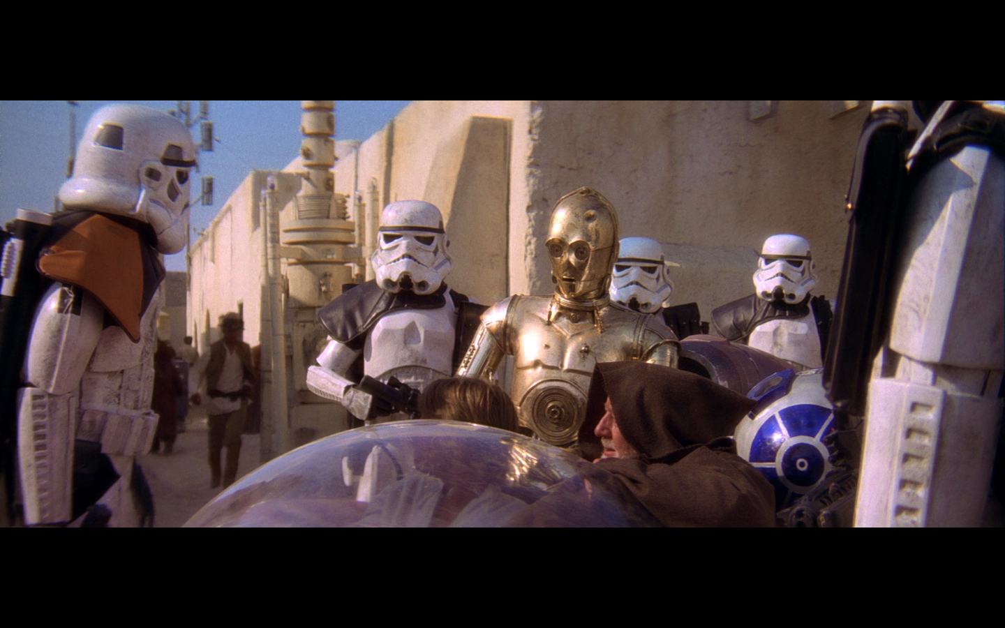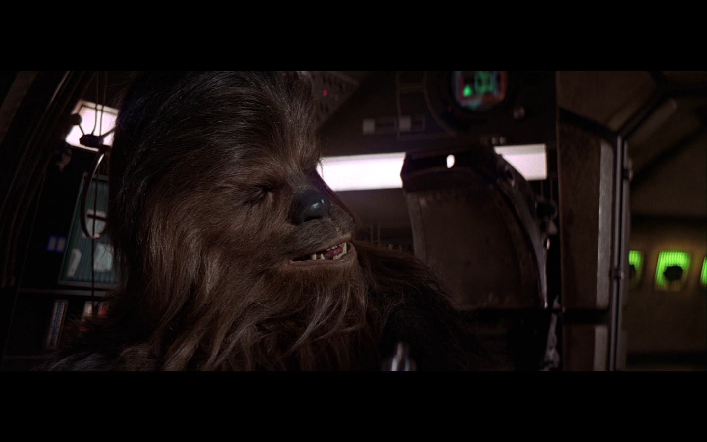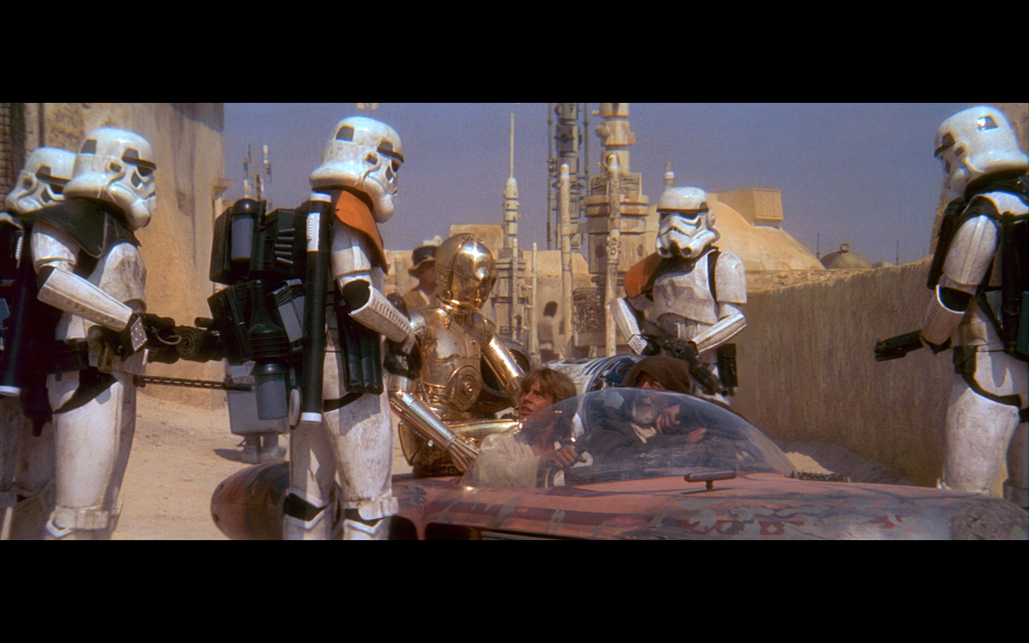 Okay, so I do need to address the Greedo shooting first thing. First, does it matter? In short, yeah. Cause Lucas’ explanation is that Han only shoots after Greedo has, because he “had to.” It makes Han Solo less of a bad guy and puts his morals on much firmer footing. Which…no. We want the arc of him going from scumbag-out-for-himself to the hero willing to risk himself for others. Don’t try to sugarcoat him at the beginning, because that makes his “transformation” less interesting.