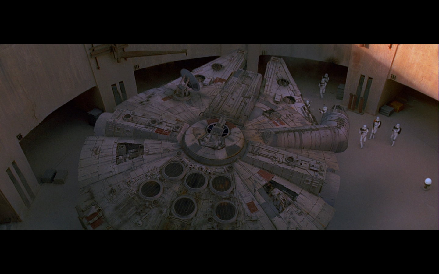 The Millennium Falcon is one of the coolest ships ever. Is there a cooler spaceship in film? I don’t give a shit about the Enterprise…and what honestly comes even CLOSE? The big ship from Close Encounters of the Third Kind? Discovery One from 2001: A Space Odyssey? No. I’ve always been partial to the Swordfish from Cowboy Bebop, but that’s an anime show that’s WAY less iconic. The Millennium Falcon is the coolest, most iconic movie spaceship ever. Luke calls it a piece of junk, but it’s a sleeper. For those of you unfamiliar with the term, a sleeper is a car that looks like junk or at least completely average, but then blows the doors off a really nice car. This thing is so tricked out it’s insane.