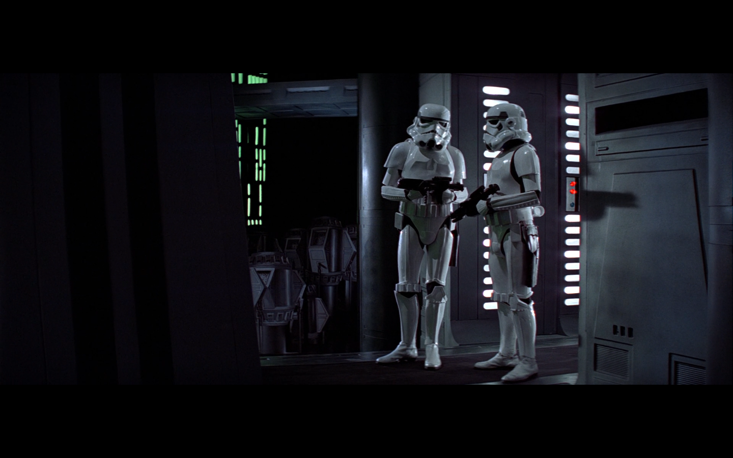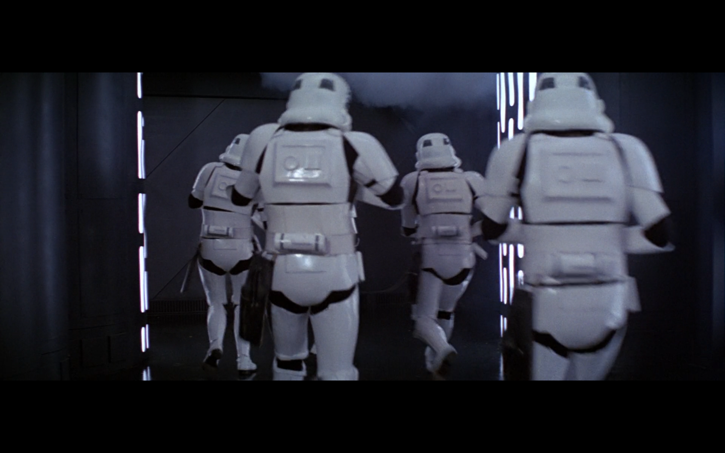 Ah yes. The oft-lampooned “Maybe it’s another drill” line. These are regular guys. They don’t know what’s up, they probably don’t care. They’re ordinary GIs who are just doing their time in the service so they can go back to whatever life they had before. They’re probably down with the Empire, because it probably doesn’t affect their lives all that much. Other than the conscription bit. But I guess what I’m saying is, I like these guys way more than the clone troopers that precede them. The clone army has no individuality; it’s every bit as machinated as the droid army it fought. This is an army of real guys.