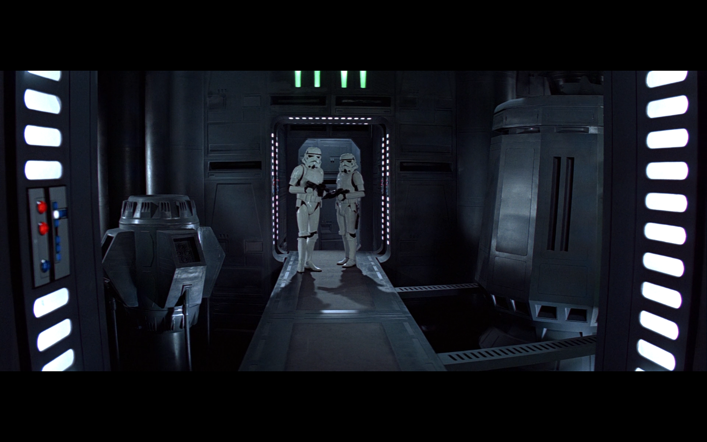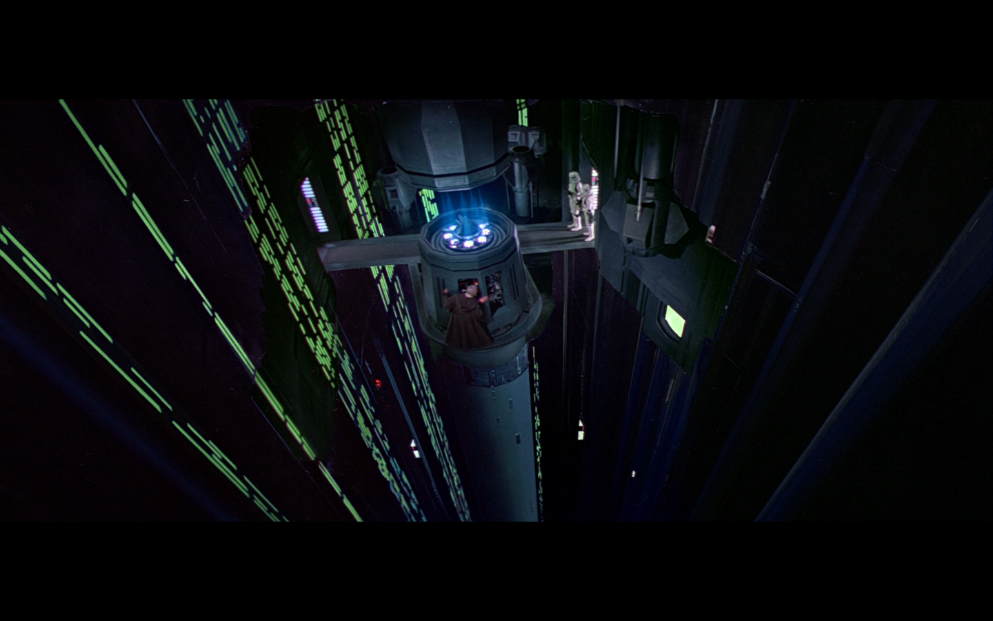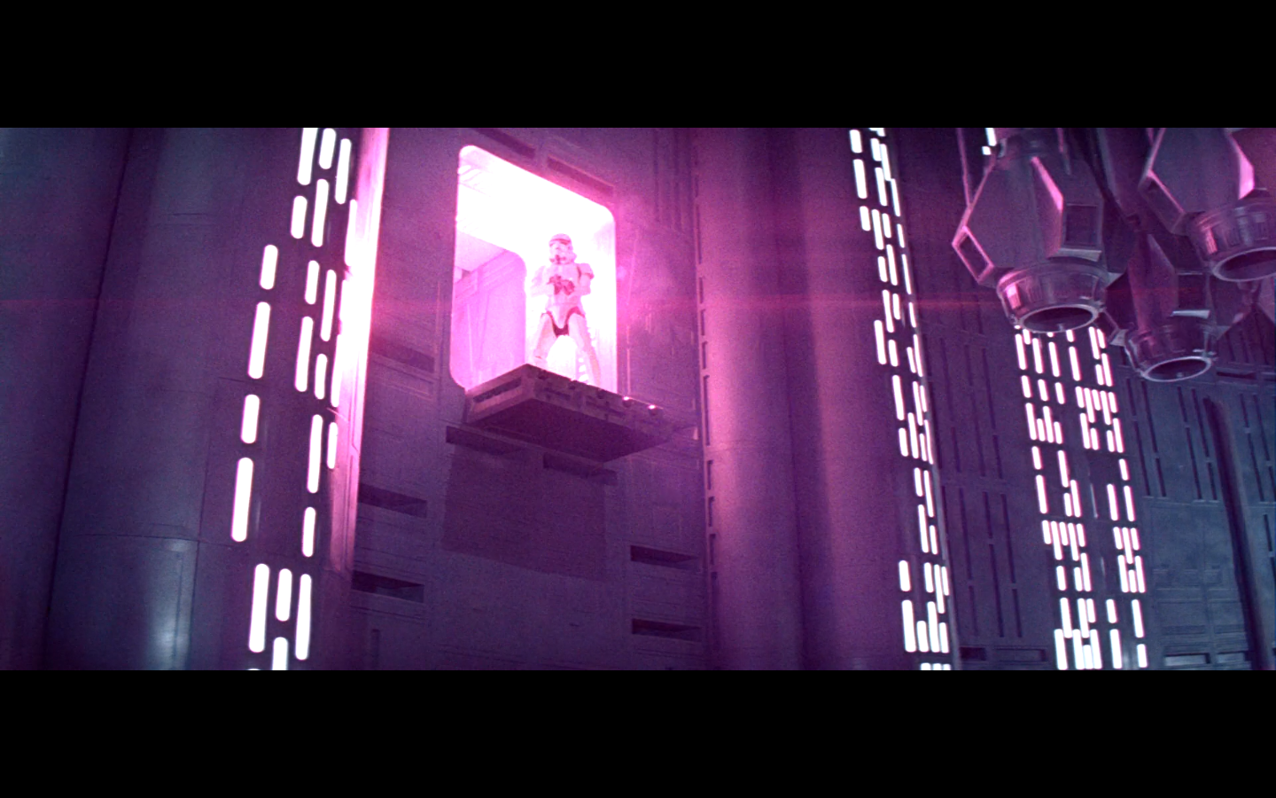 I’m not really sure what’s up with the Death Star being so inconvenient like this. What would be the purpose of having a bridge that needs extending? Why would you need blast doors? It seems like this place is heavily outfitted to be the setting for a battle, which doesn’t make much sense, cause who the fuck would ever be able to get an army inside?