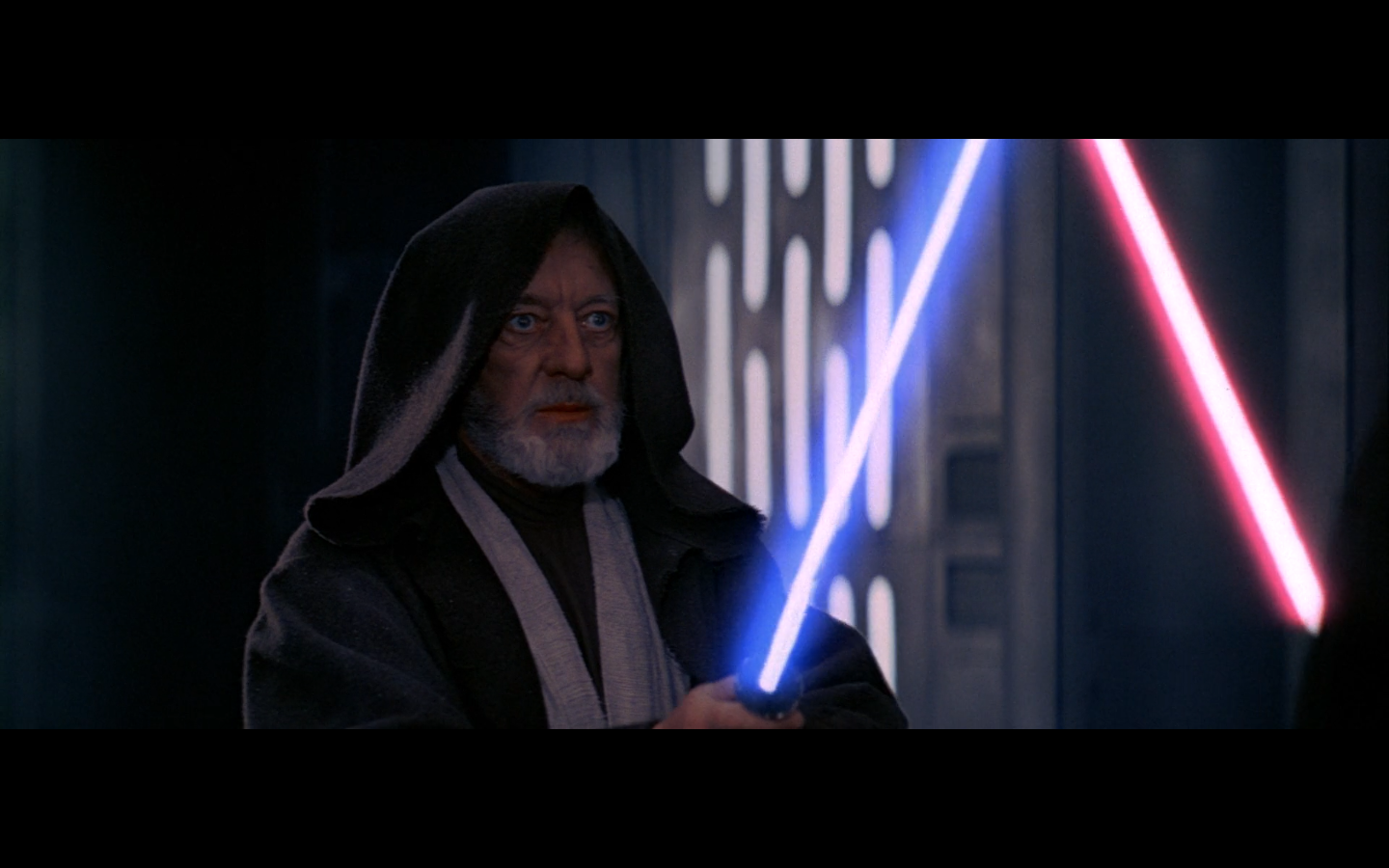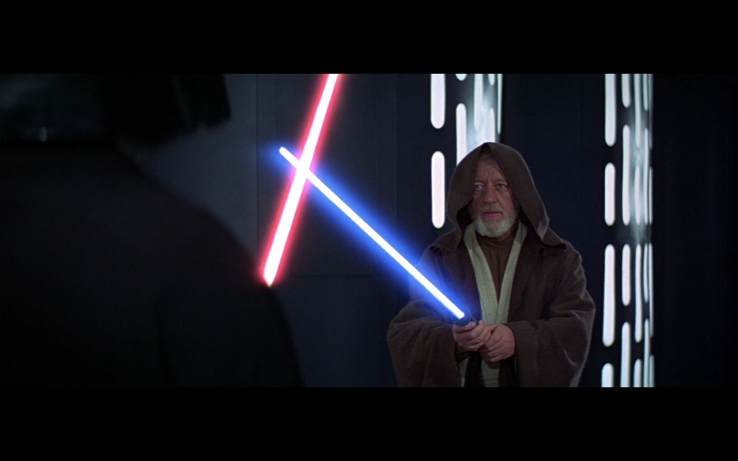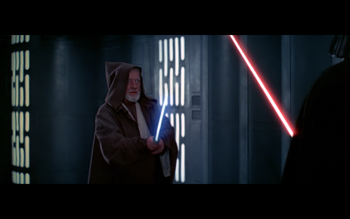 So, explain to me how that works. On the simpler level – how does the light saber go out on its own? Obi-Wan doesn’t shut it off before he dies. Second – why does he disappear? Did he mutter a spell or something? Did he actively create a Forcecrux? What’s the deal?