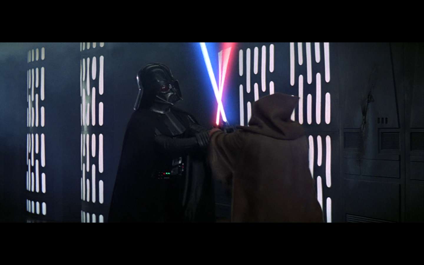 You have to love this moment. Obi knows what he has to do when he sees Luke and lets Vader kill him. The body disappears immediately, and he becomes one with the Force. Good business. All it needed was a, “Fly, you fools!” Instead, we get, “Run, Forrest Luke, run!”