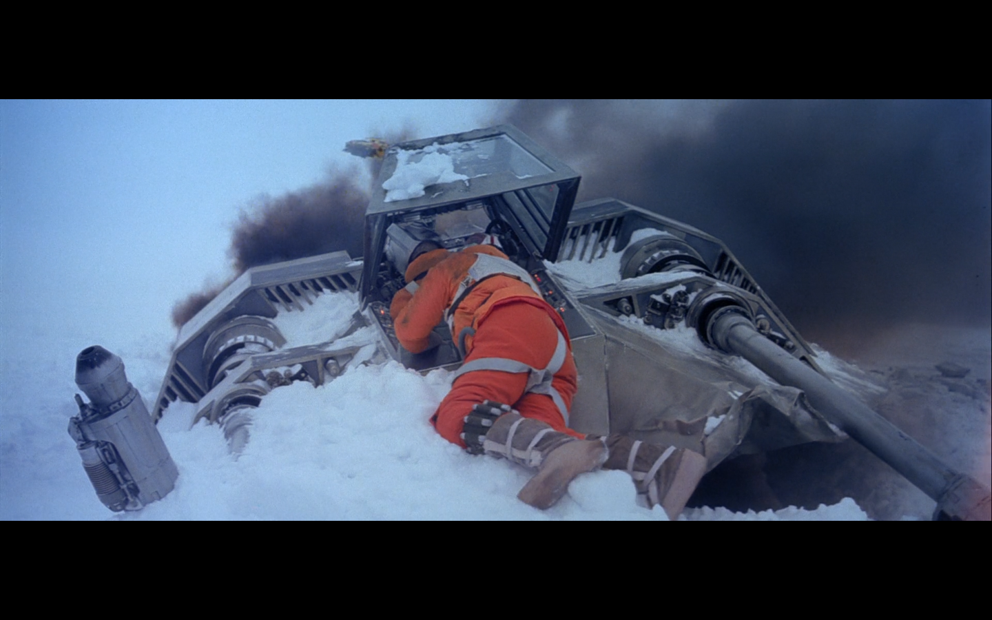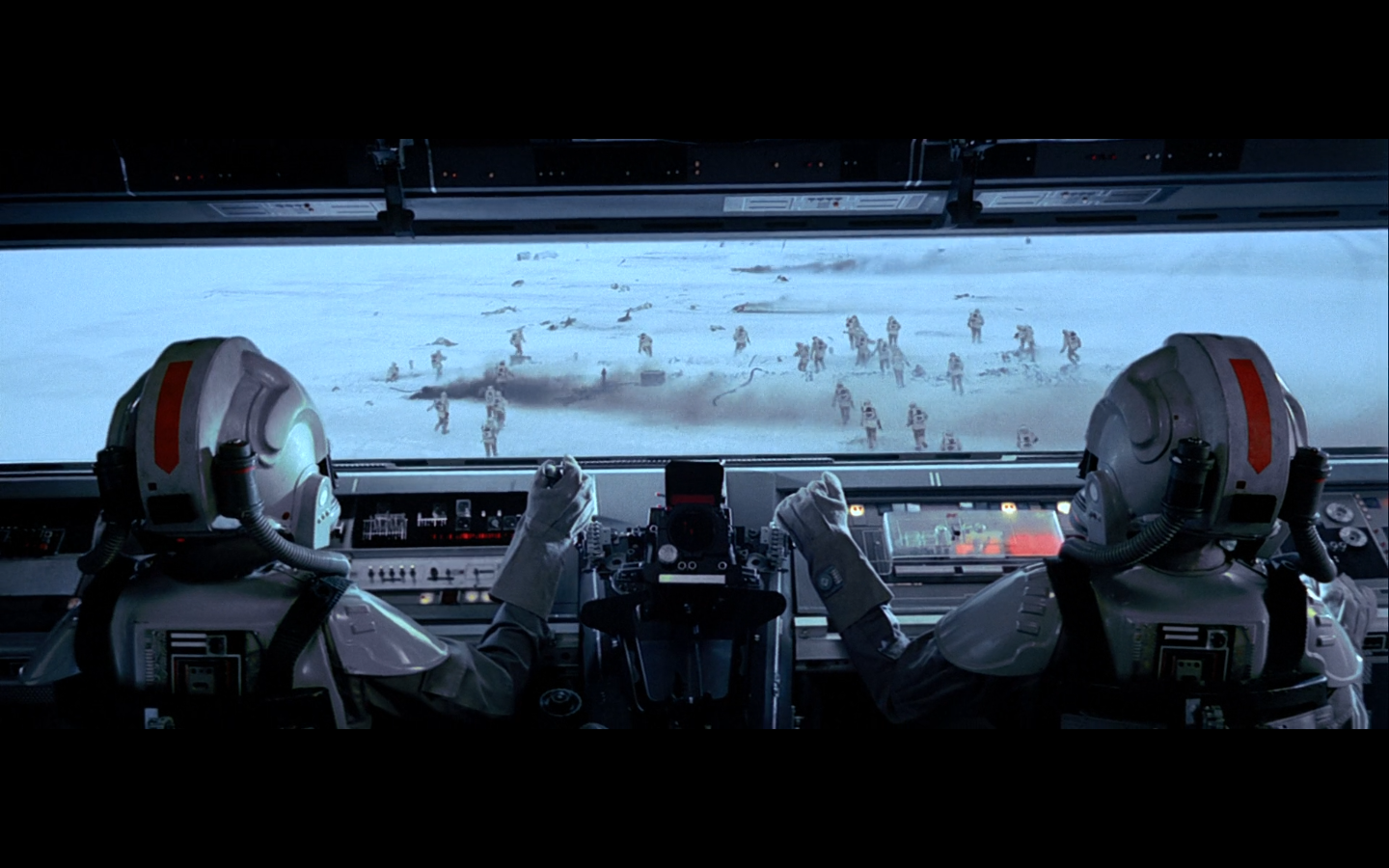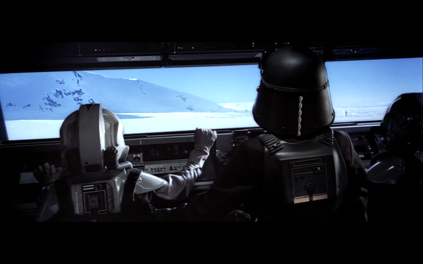 Whoever this guy is who seems to be commanding the walkers, I like how sinister he looks without having any introduction or real dialogue. You can tell he’s enjoying this. Also how he tells Vader that he, “may” start his landing. This feels so British – like regardless of who outranks whom, there are still things one may or may not do. Try telling your American superior in that tone that they “may” do something now, and the answer will be, “Of course I MAY, asshole. I MAY do whatever I fucking want, cause I’m running this shit.”