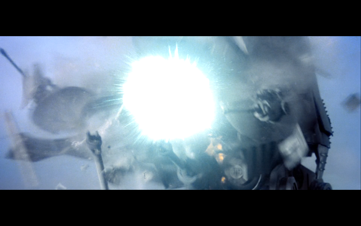 What’s that about? “Come on!” Like, “They showed us it’s okay, now we can go charge confidently!” What the fuck are you charging at? The AT-ATs? Motherfucker, they’re gigantic! I can see if you took out a row of soldiers or took down their shields (like…. ugh, I can’t believe I’m about to say this… Phantom Menace), but you’re literally about to go charge something that’s at least a thousand times bigger than you are.