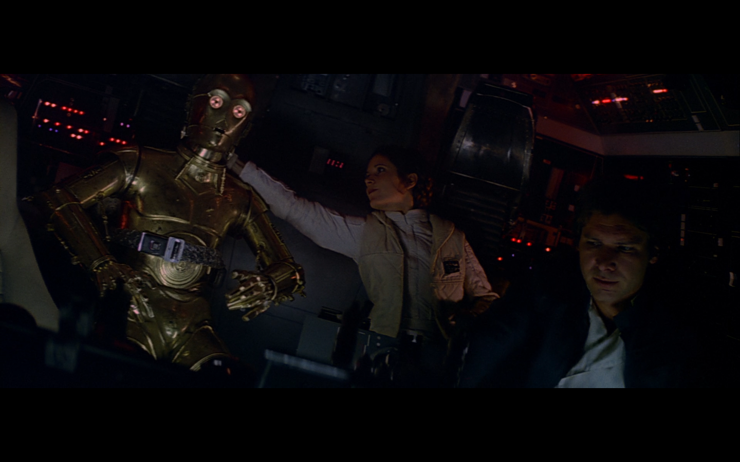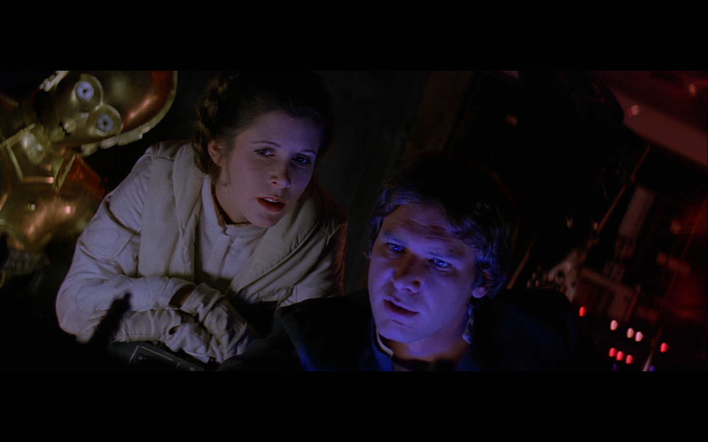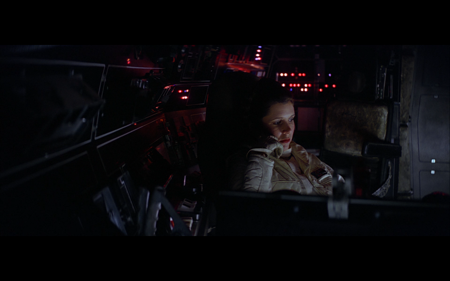 I like blue light on someone’s face. Maybe everything reminds me of The Hunt For Red October, but this is a lot like Stellan Skarsgård’s character Tupolev, when we see him receiving orders to find and sink the Red October. His whole face is bathed in blue light, which…yeah, awesome. But this is the Millennium Falcon, not the Konovalov.