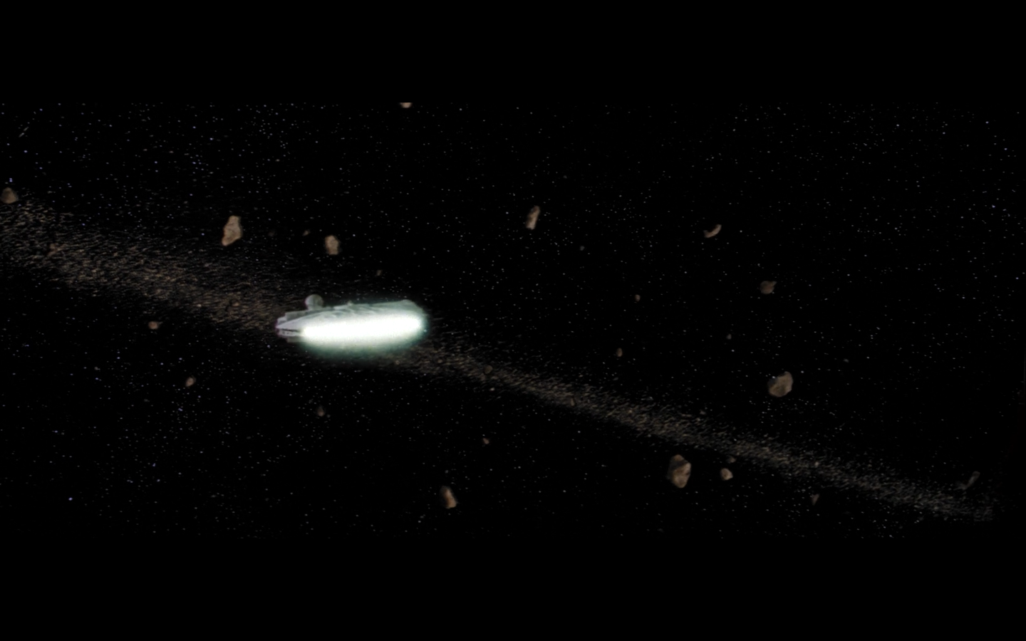 Why? Is the Empire still hanging around this asteroid field, looking for them? Also, where exactly are they going, at this point? Nowhere yet, right? Just… away.