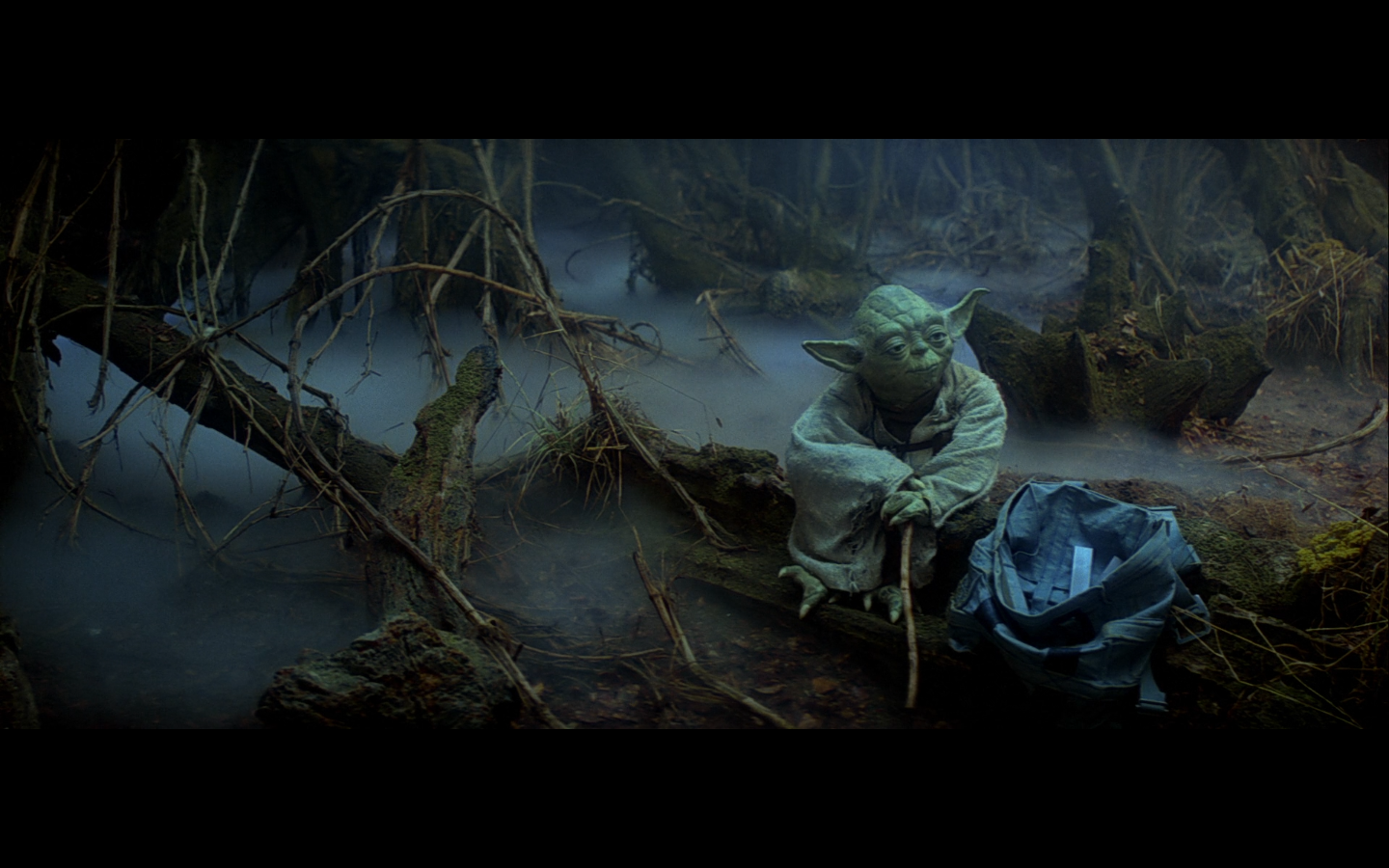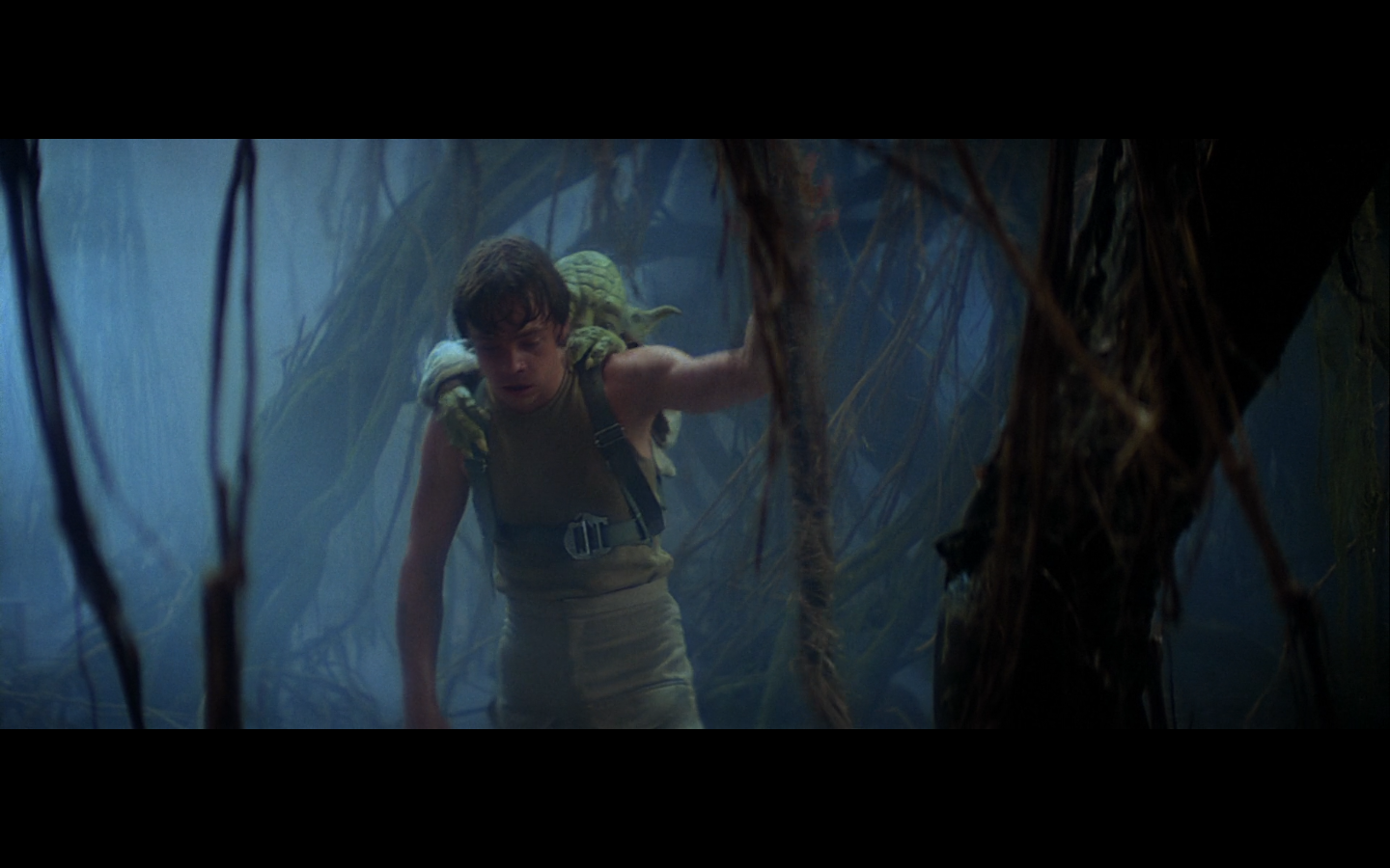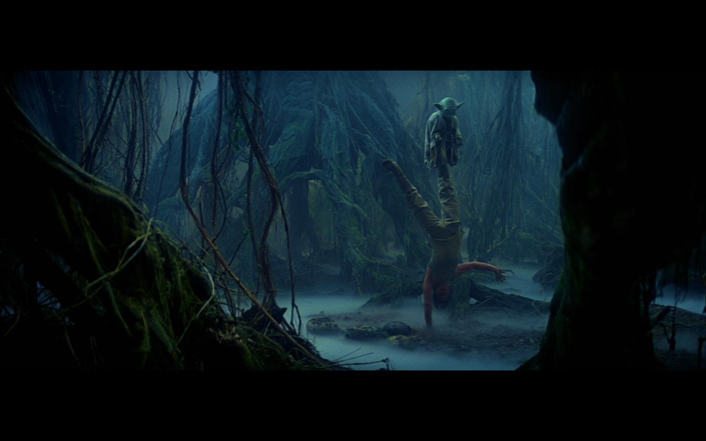 This is the best training moment. This is when we’re really learning about the Force, what it can do and how it works. It also pits Luke’s dumbass character against what he should be, which is confident, competent and open-minded. Yoda’s so clearly frustrated with him, and Luke’s so defeatist that you can’t help but hate him for more than just bad acting. This is, however, a CHARACTER MOMENT! They’re rare, like white elk, so enjoy this.