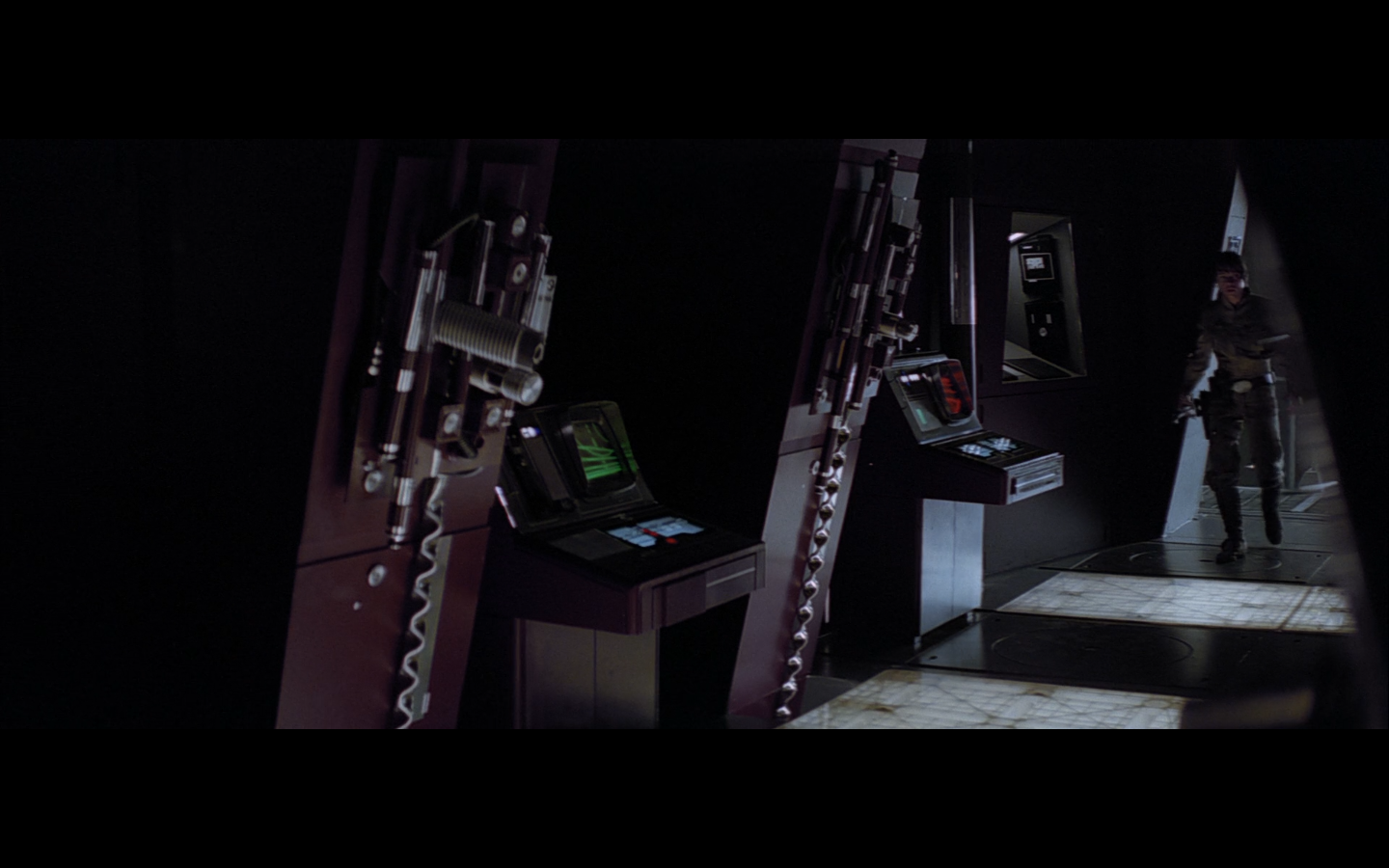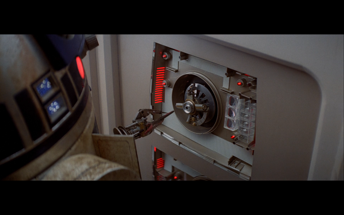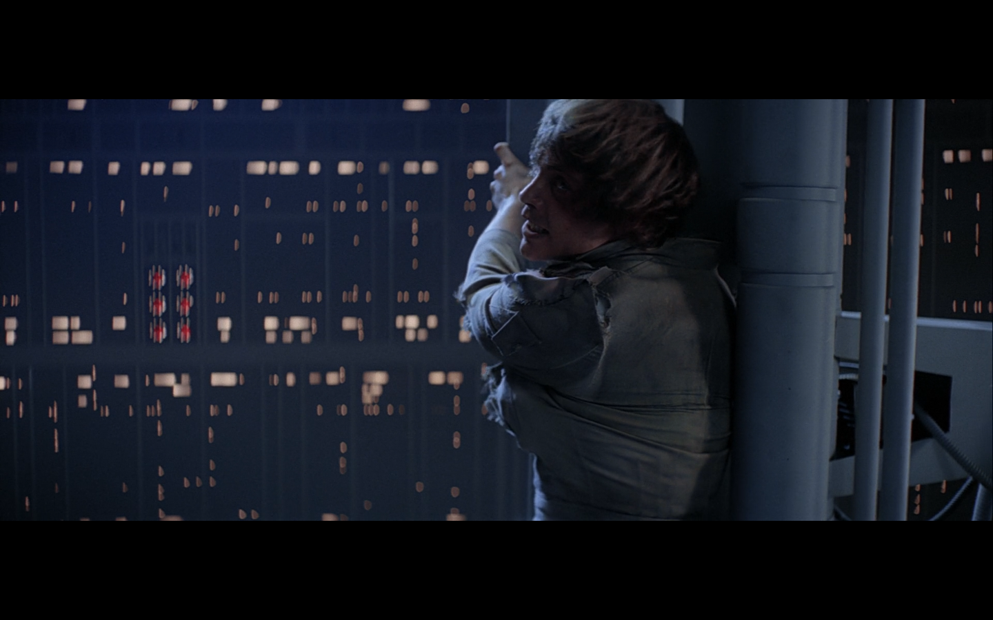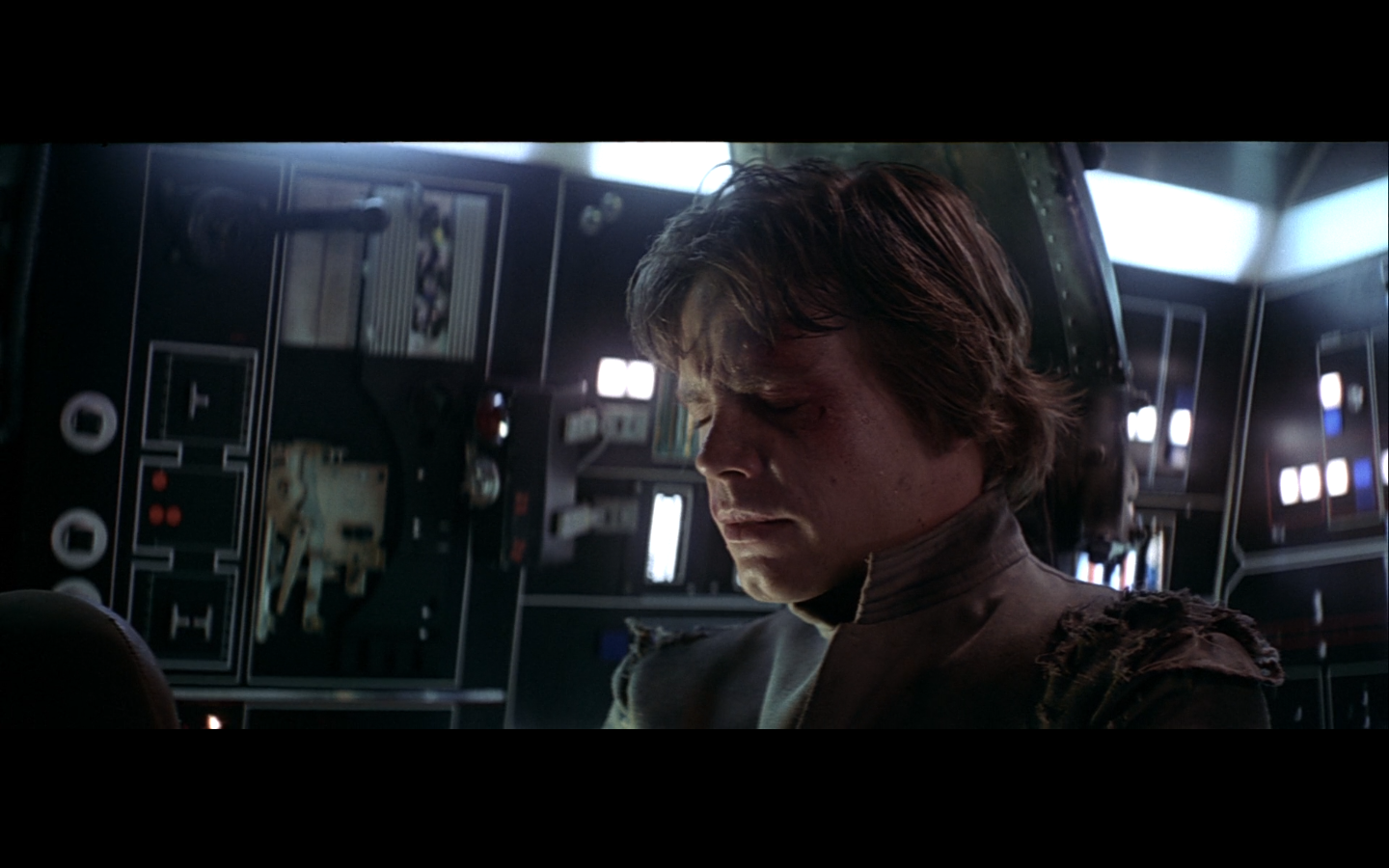 This is what I was talking about in the first article of the franchise, when Leia’s programming R2 which what appears to be a floppy disk. Some of it is surely that they don’t have the time or the technology to adequately make what they could imagine. But a big part of it is that in imagining the future, we simply take what we’ve got and imagine something a little better. Like early 20th-century portrayals of the distant future always have 747-sized biplanes and shit like that. It’s hard to say what the next step will be in any given development — think about Matrix Reloaded, when they’re coming into Zion, and they show the control room. It’s all white and there are huge holo-monitors and people are pressing buttons in midair and swishing them around and stuff. That looked futuristic then, but now they do that shit on CNN. You have to figure it’d be like…neural implants where you control the screen functions by blinking or looking in certain places. Although that’s now happening with the Google Glass, so…I guess the conclusion is that you can’t really predict a full paradigm shift in technology that far out, so it’s hardly worth trying. We’re left with buttons.