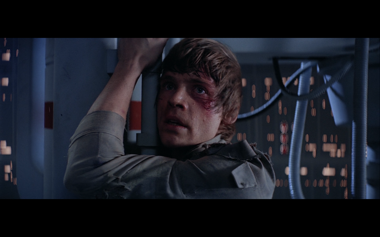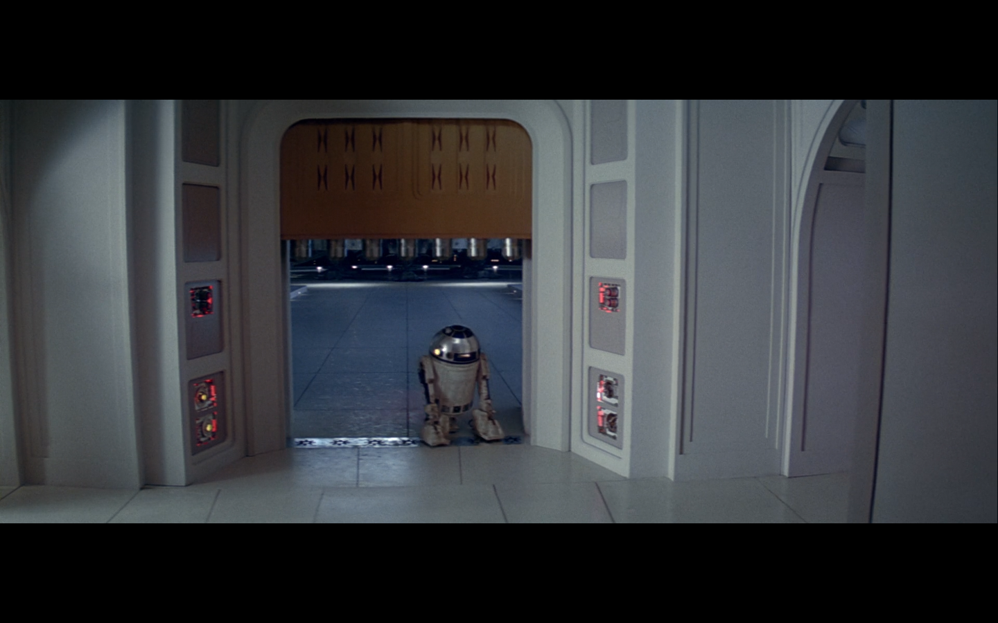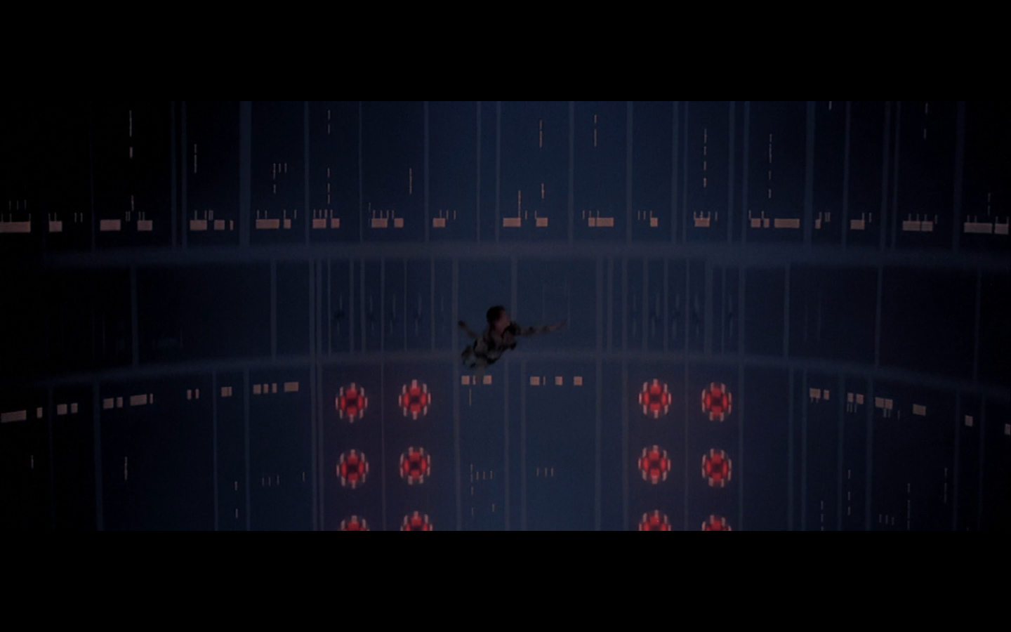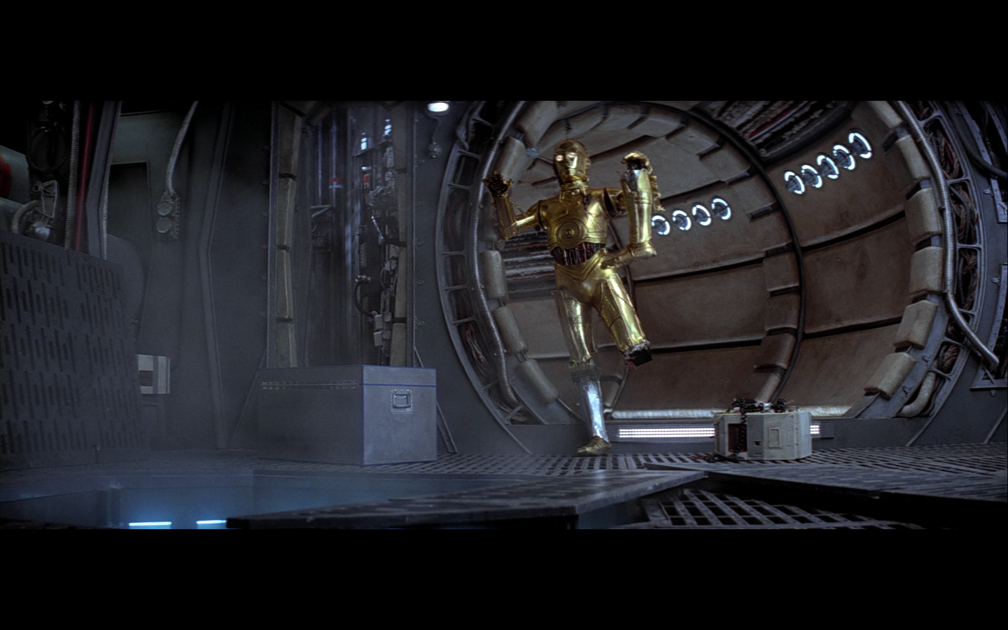 This is what I was talking about in the first article of the franchise, when Leia’s programming R2 which what appears to be a floppy disk. Some of it is surely that they don’t have the time or the technology to adequately make what they could imagine. But a big part of it is that in imagining the future, we simply take what we’ve got and imagine something a little better. Like early 20th-century portrayals of the distant future always have 747-sized biplanes and shit like that. It’s hard to say what the next step will be in any given development — think about Matrix Reloaded, when they’re coming into Zion, and they show the control room. It’s all white and there are huge holo-monitors and people are pressing buttons in midair and swishing them around and stuff. That looked futuristic then, but now they do that shit on CNN. You have to figure it’d be like…neural implants where you control the screen functions by blinking or looking in certain places. Although that’s now happening with the Google Glass, so…I guess the conclusion is that you can’t really predict a full paradigm shift in technology that far out, so it’s hardly worth trying. We’re left with buttons.