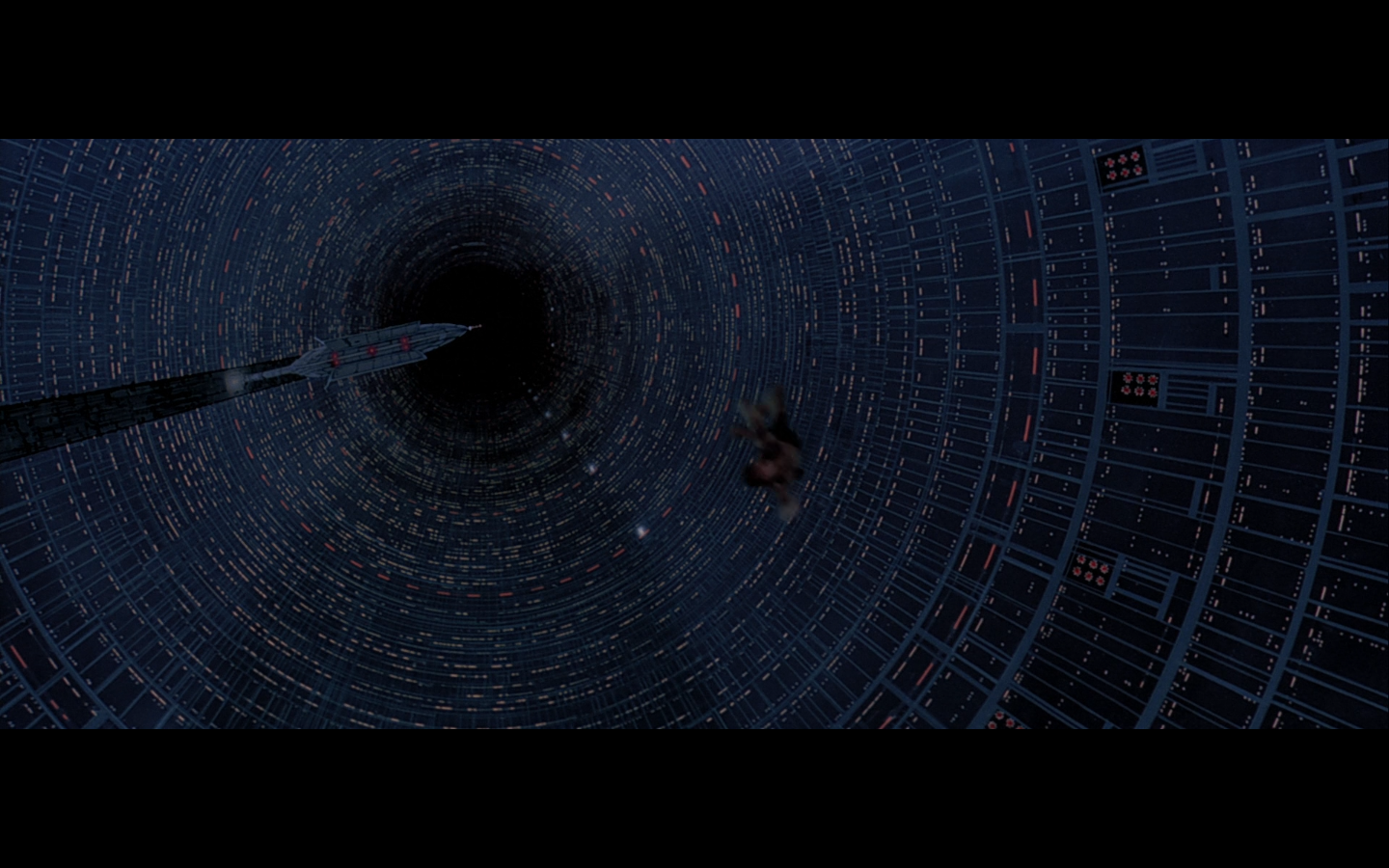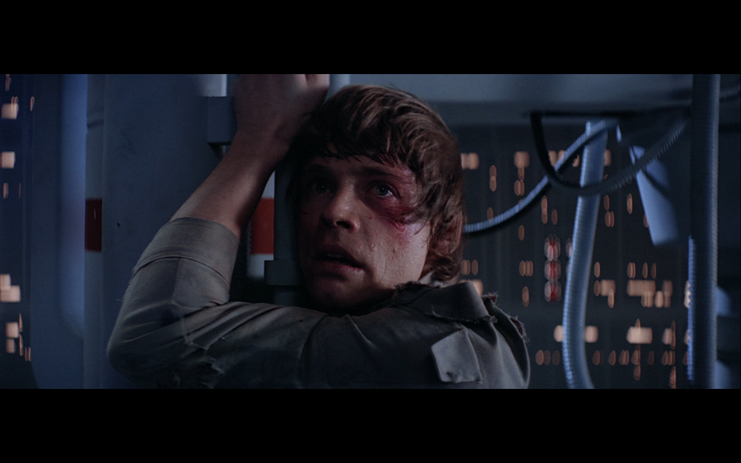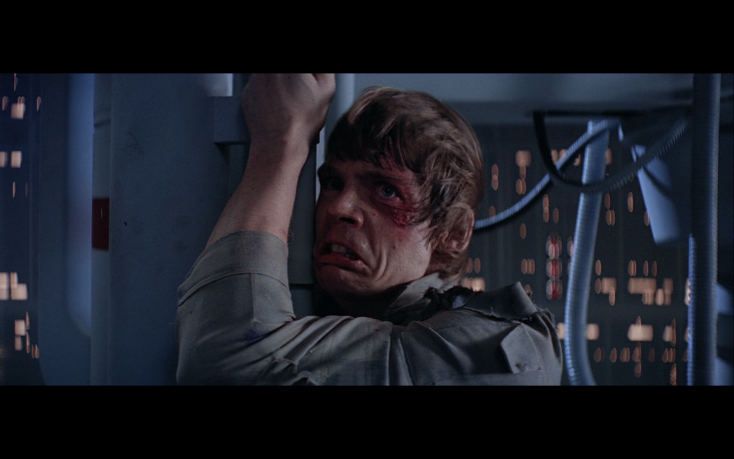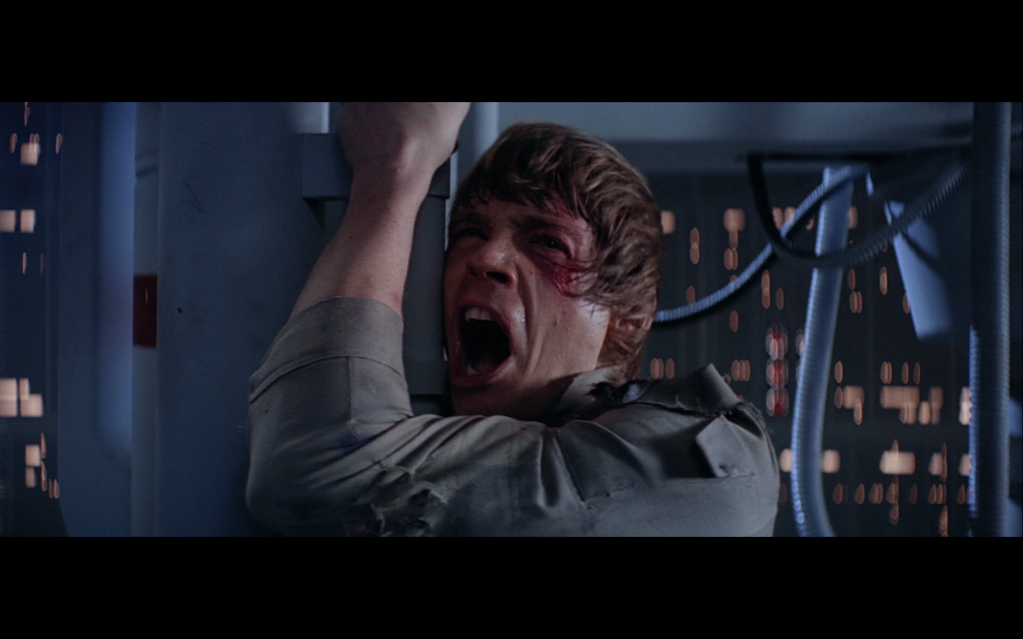 This is what I was talking about in the first article of the franchise, when Leia’s programming R2 which what appears to be a floppy disk. Some of it is surely that they don’t have the time or the technology to adequately make what they could imagine. But a big part of it is that in imagining the future, we simply take what we’ve got and imagine something a little better. Like early 20th-century portrayals of the distant future always have 747-sized biplanes and shit like that. It’s hard to say what the next step will be in any given development — think about Matrix Reloaded, when they’re coming into Zion, and they show the control room. It’s all white and there are huge holo-monitors and people are pressing buttons in midair and swishing them around and stuff. That looked futuristic then, but now they do that shit on CNN. You have to figure it’d be like…neural implants where you control the screen functions by blinking or looking in certain places. Although that’s now happening with the Google Glass, so…I guess the conclusion is that you can’t really predict a full paradigm shift in technology that far out, so it’s hardly worth trying. We’re left with buttons.