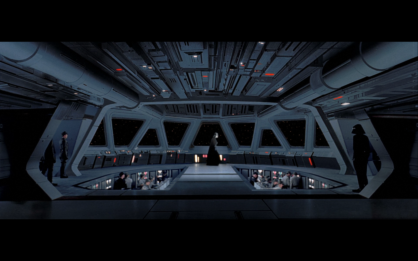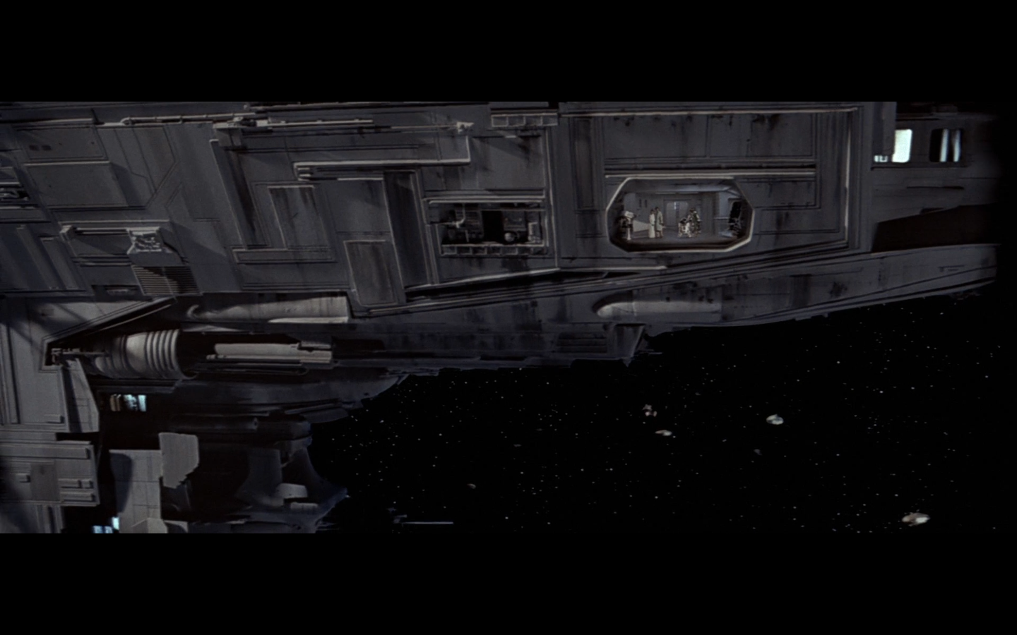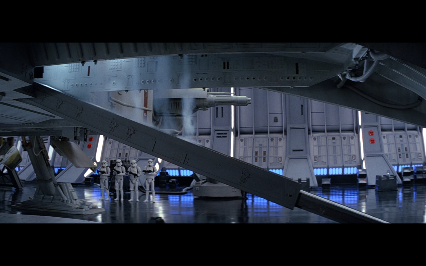 Also notice this set, if you haven’t already. It’s the bridge of the Super Star Destroyer. We see it again at the end of Revenge of the Sith, when Palpatine and Vader are looking on at the construction of the Death Star, but the Super Star Destroyer doesn’t get made until just before A New Hope. So unless their little epilogue moment is a fast-forward 18 years or something like that, it doesn’t make sense. Unless they have another ship with the exact same bridge, for some reason.
