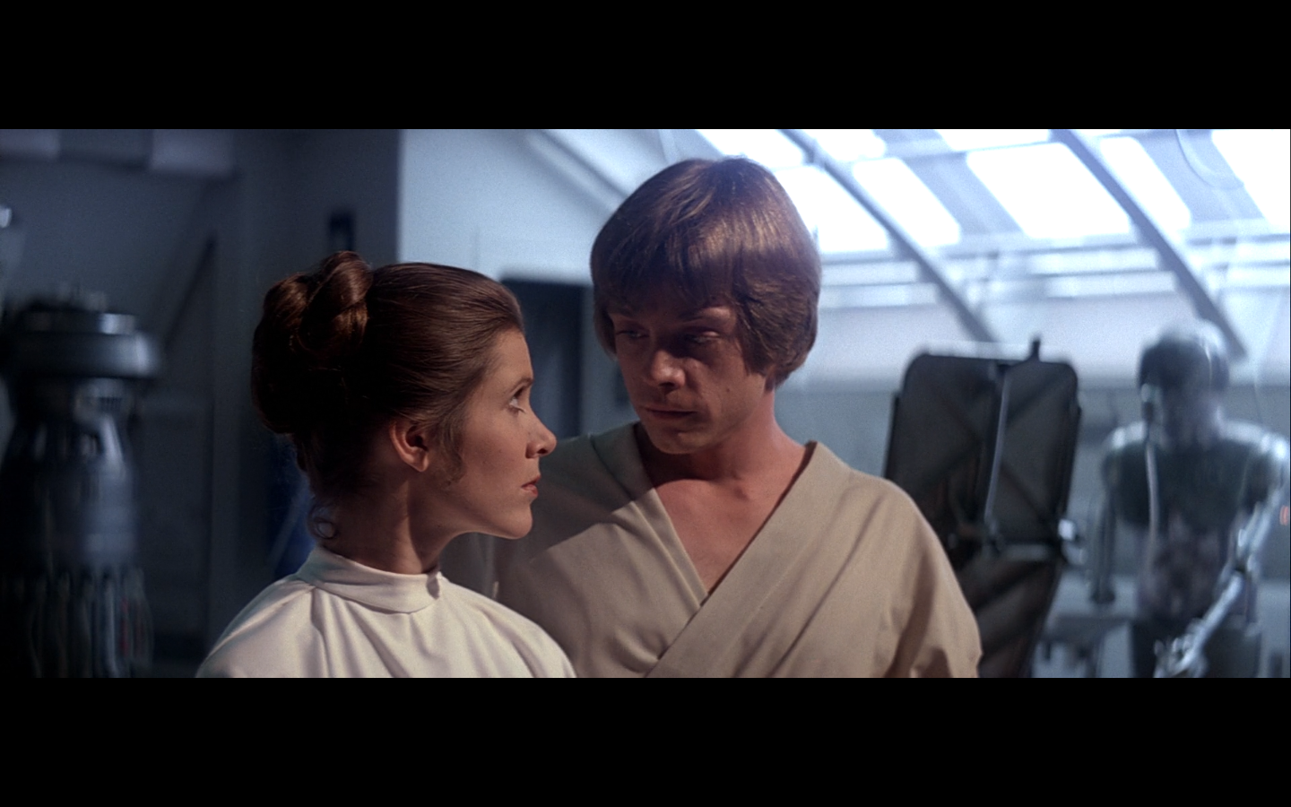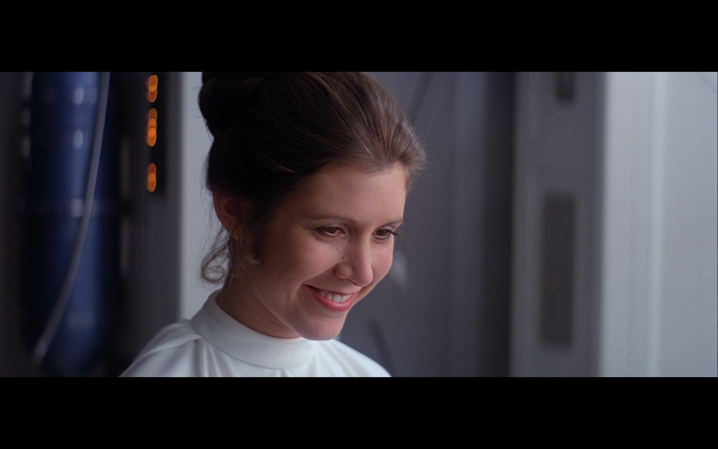 What a shot. We literally cut to Leia running around a corner and shooting a Stormtrooper in the face.