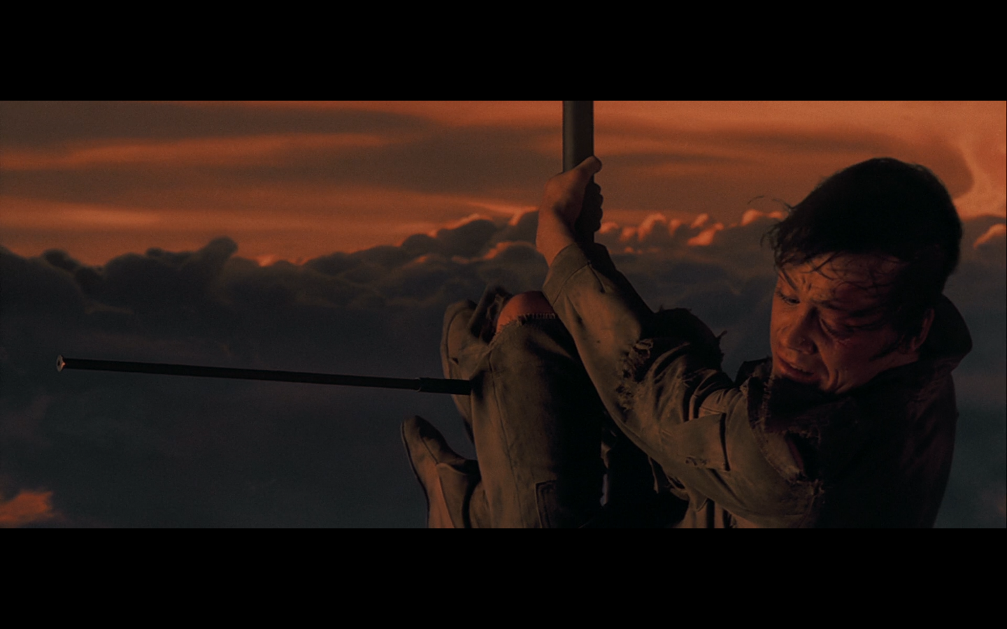 Now… I’m no physicist (overstatement of the century), but wouldn’t a ship coming in like that bring enough wind to knock him the fuck off there? Especially since he’s barely hanging on in the first place with one fucking hand?!
