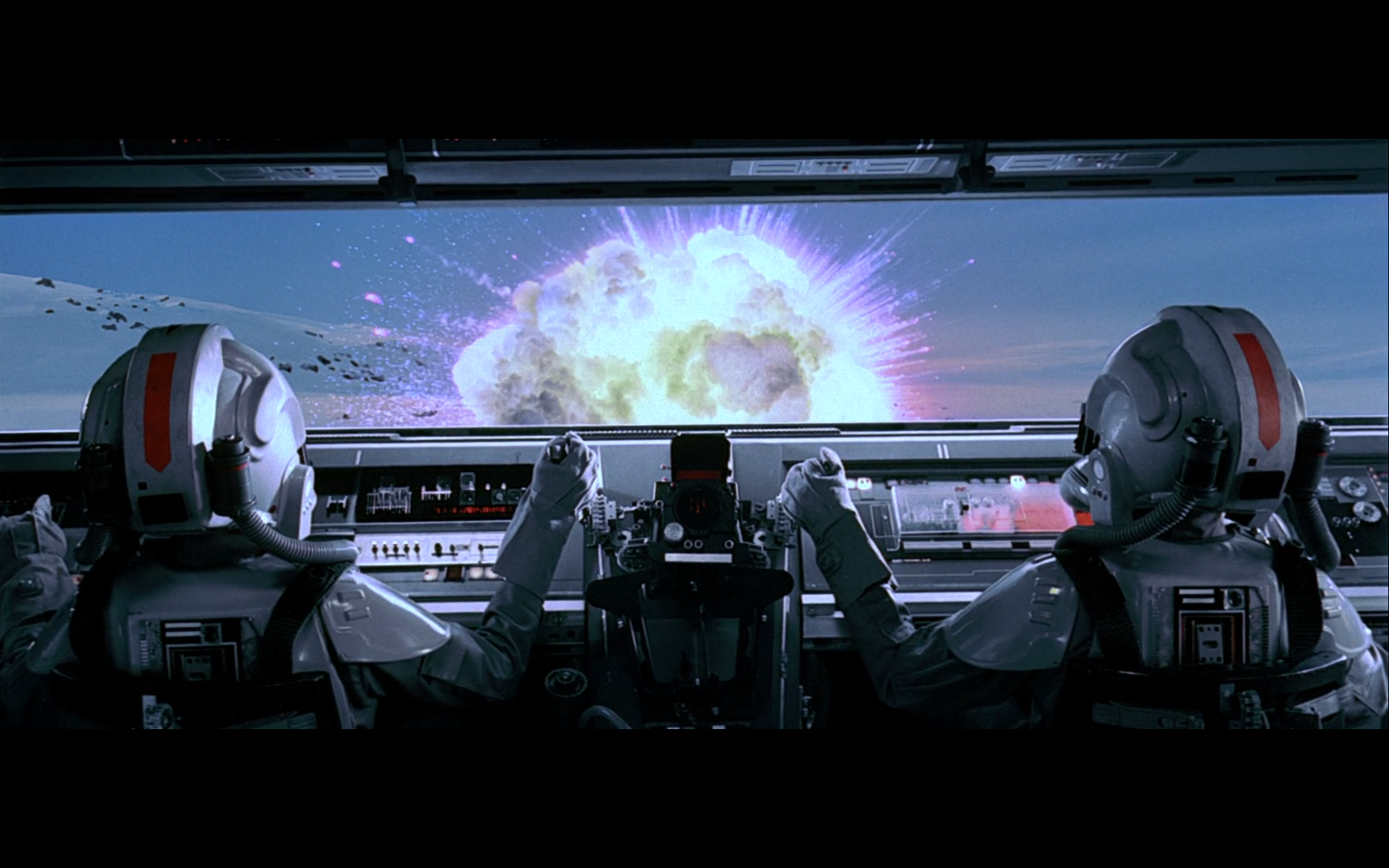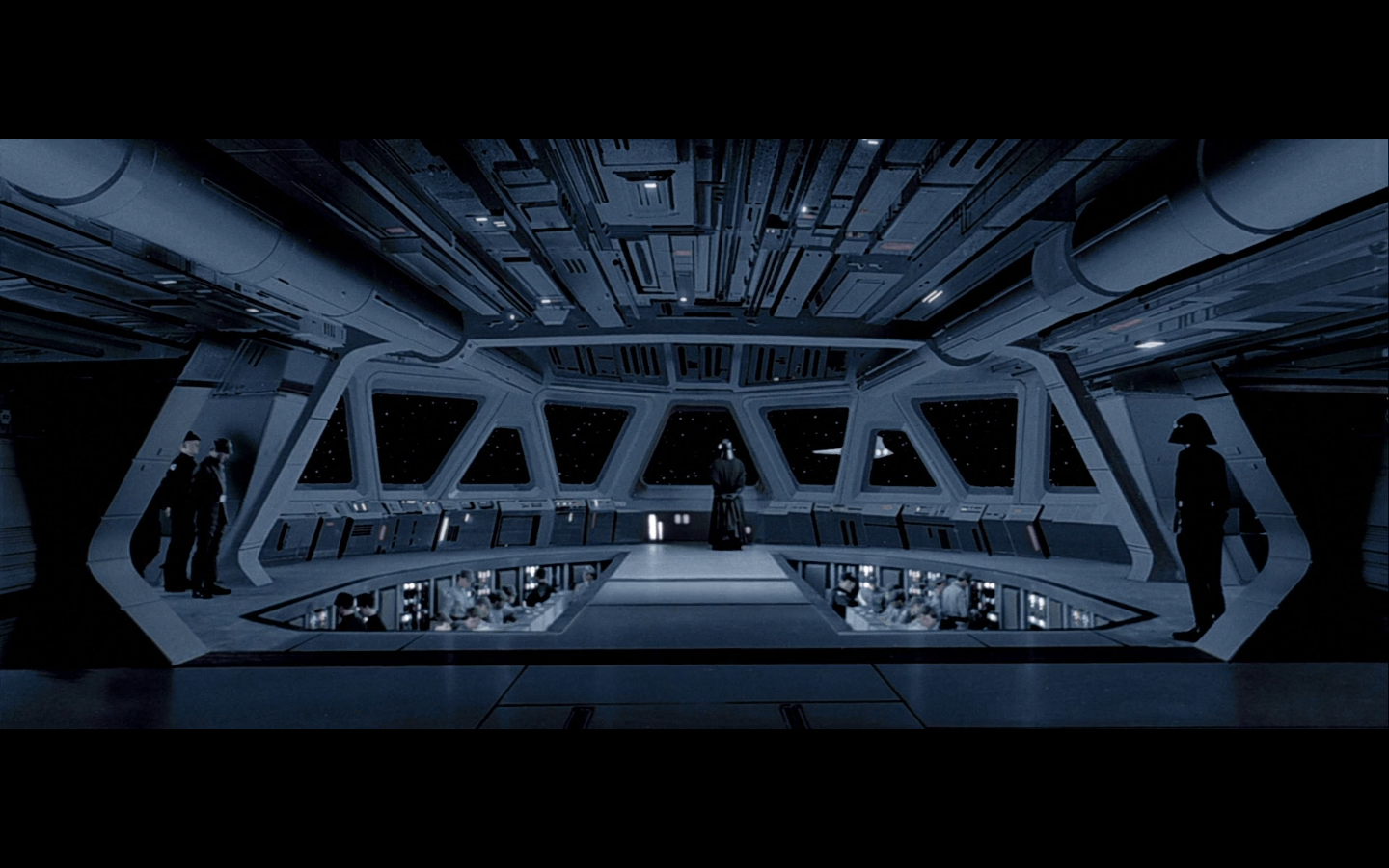 I’m also a fan of this moment, which directly led to this, where they fucked up in alerting the Rebels to their imminent attack, and Vader goes, “What the fuck, man?” and yells at the dude in charge, who then turns to the guy directly below him (the guy getting choked), who then turns to the guy directly below him (the guy with the look). It’s a great shot of showing how blame works in a military hierarchy.