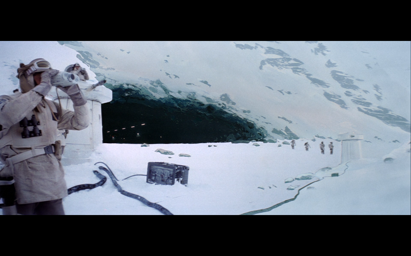 I love this shot. I love what Hoth looks like, and I love this image. This looks like a painting. You don’t get too much of that in the later movies, so I really like that aspect of it as well.