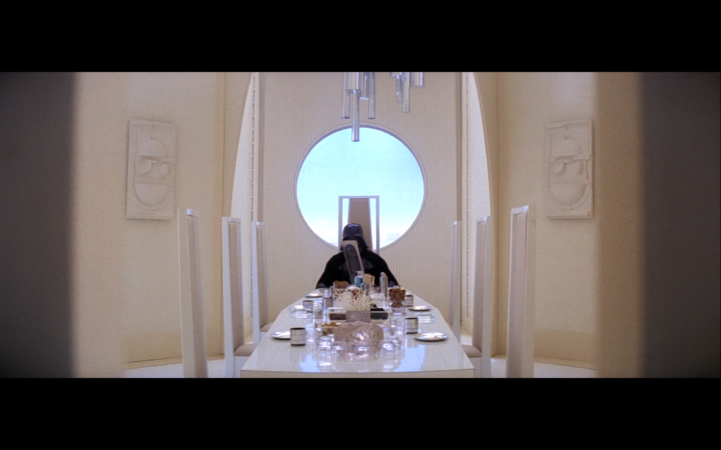 As I said with Voldemort, it’s hilarious to me when evil people are shown in a domestic setting. This is fucking hilarious. Vader’s having an elegant dinner party, and he’s bringing all the people he’s trying to kill to it. He brings them in, feeds them, then sends them off to be tortured. That’s amazing.