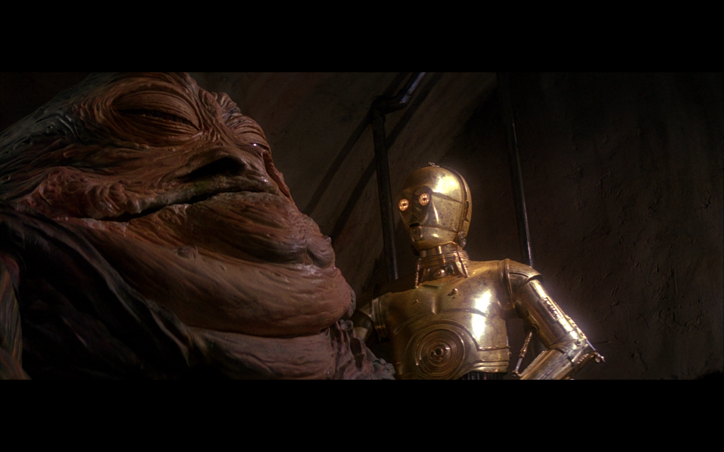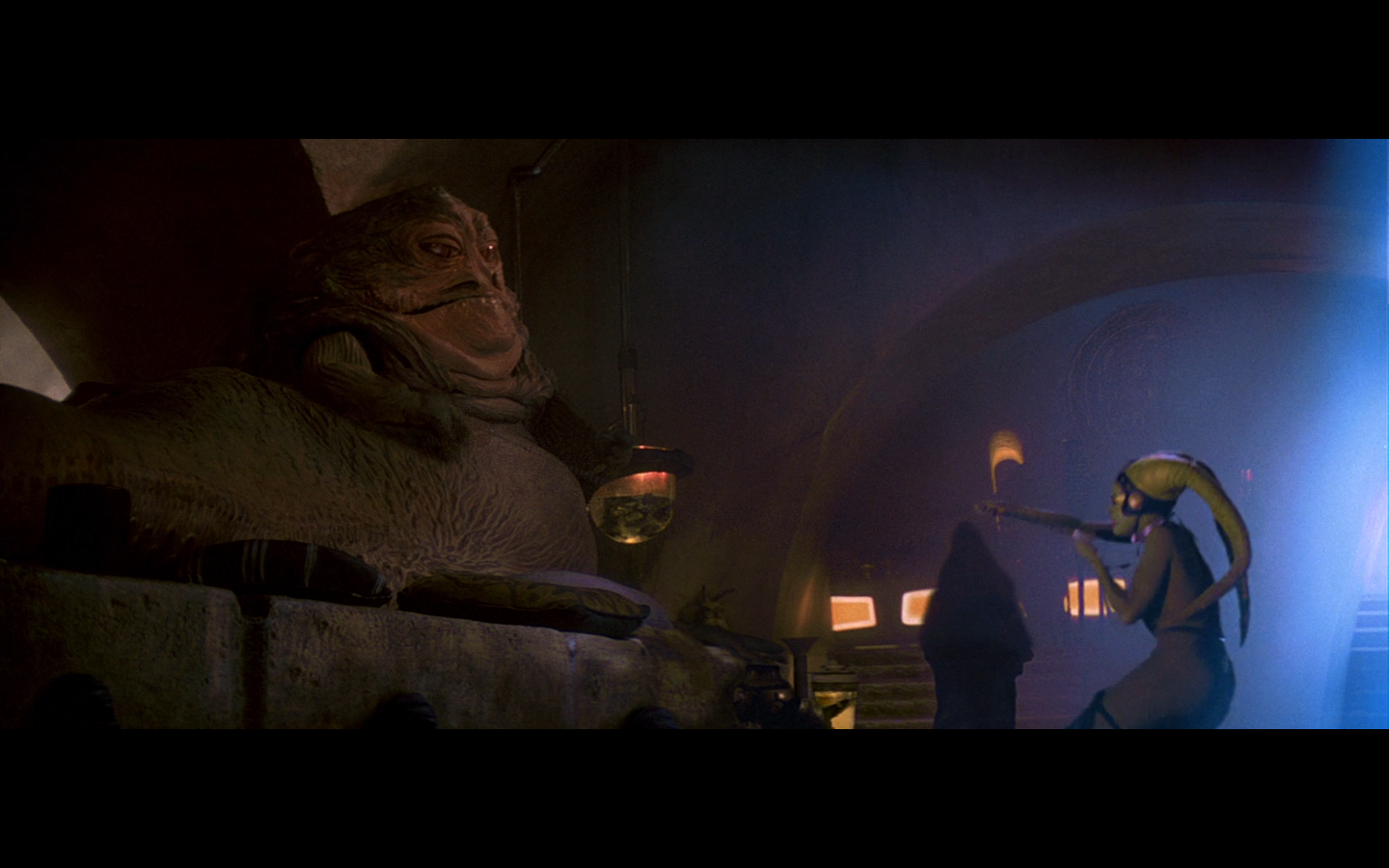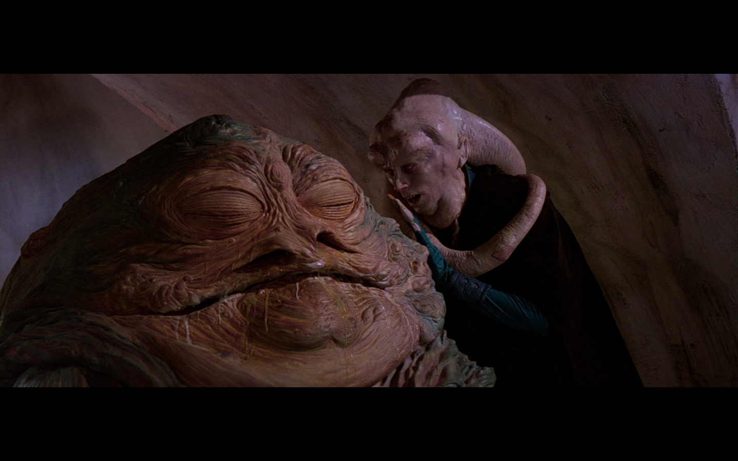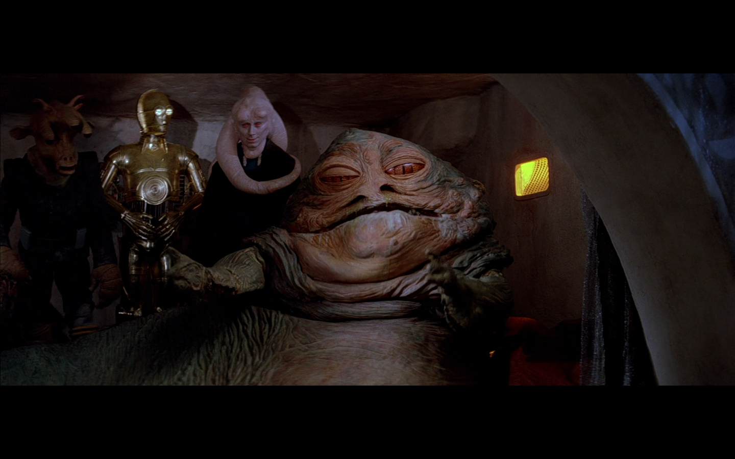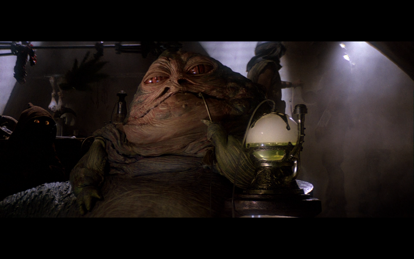 Except that Lucas showed us Jabba in New Hope. I’m talking after the fact. It works better if you don’t see Jabba until now.