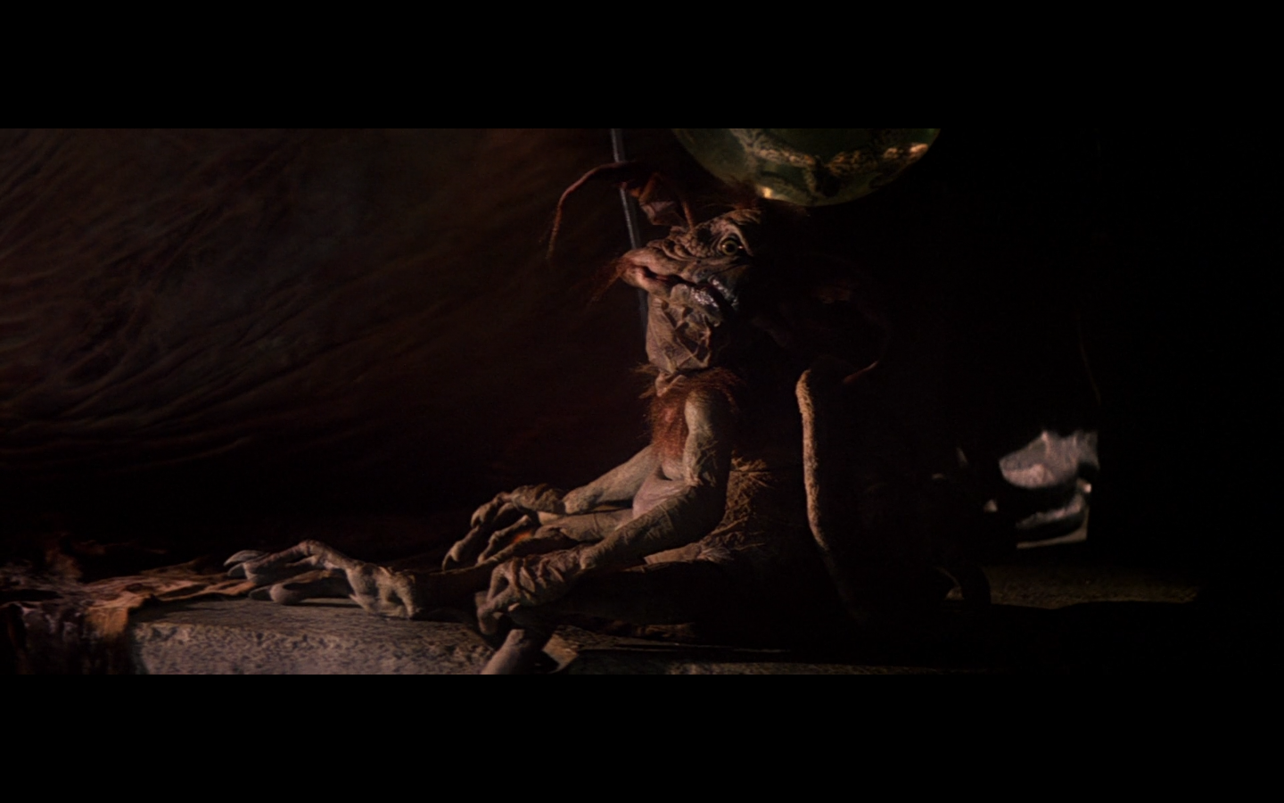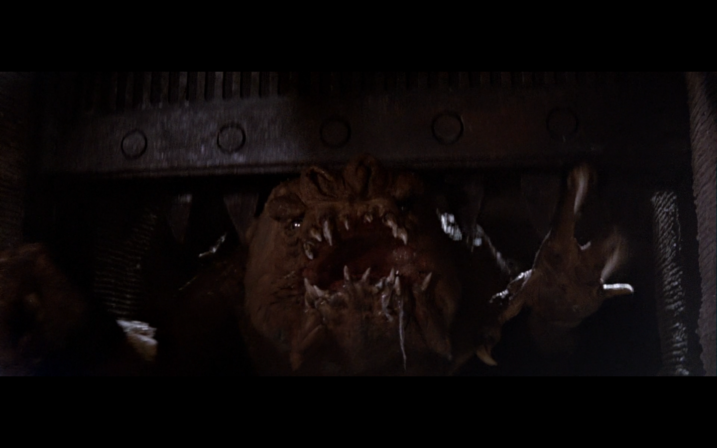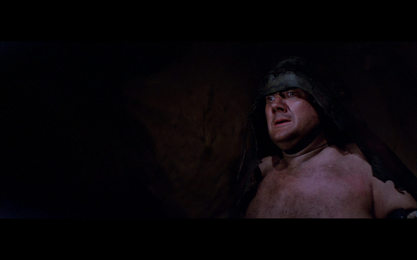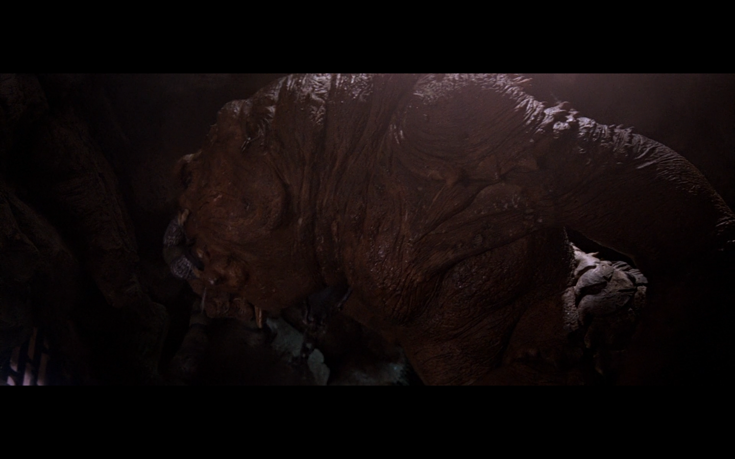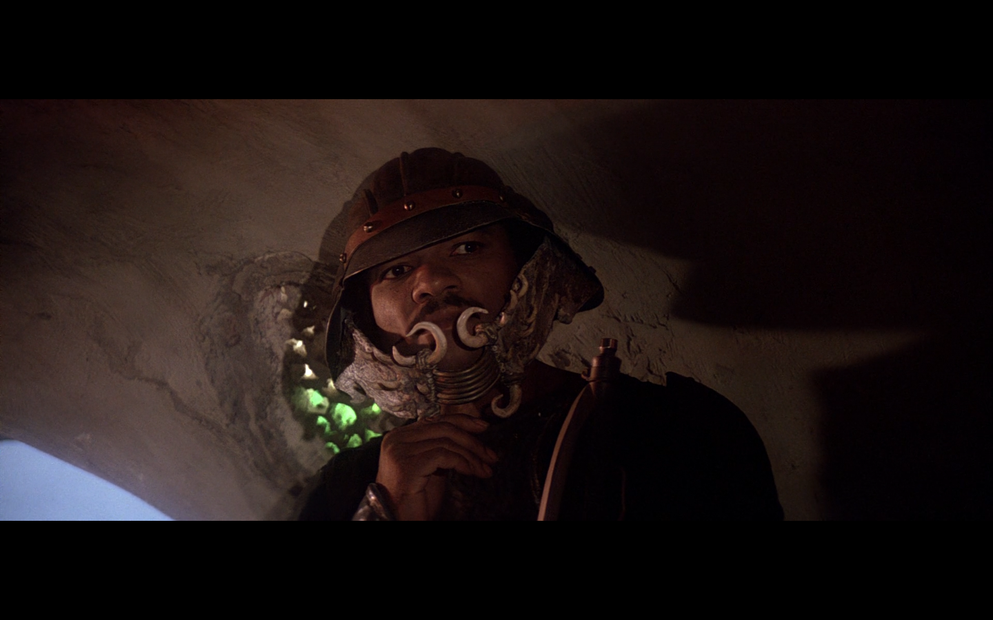 This weird, tribal man who runs in to see if the rancor is actually dead looks so sad. Like the rancor was the source of all their fun and how life will never be the same now that it’s gone. It’s sort of like Belushi in Animal House when they drop the bottles of booze.