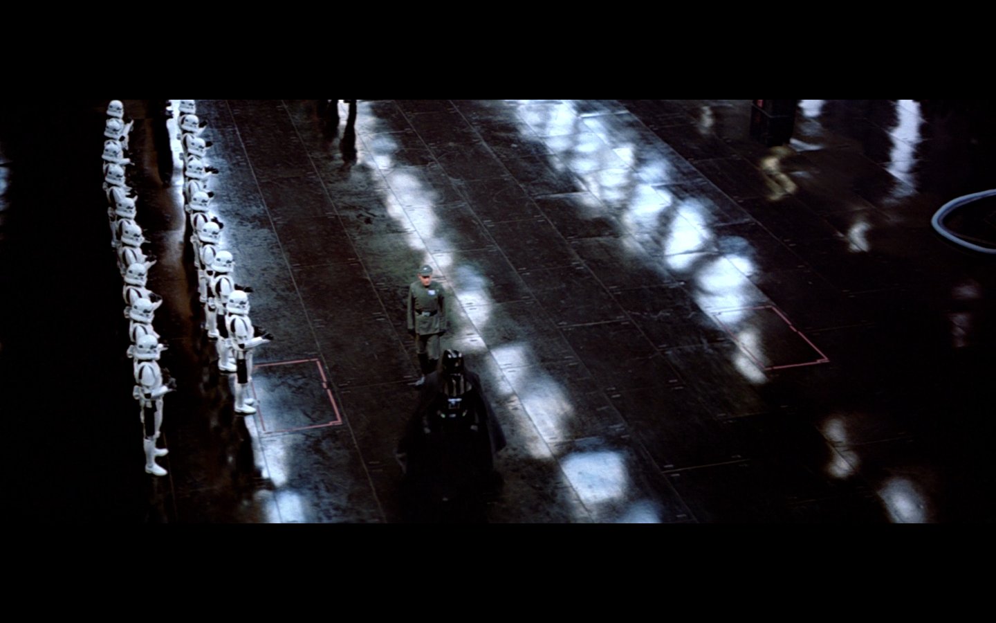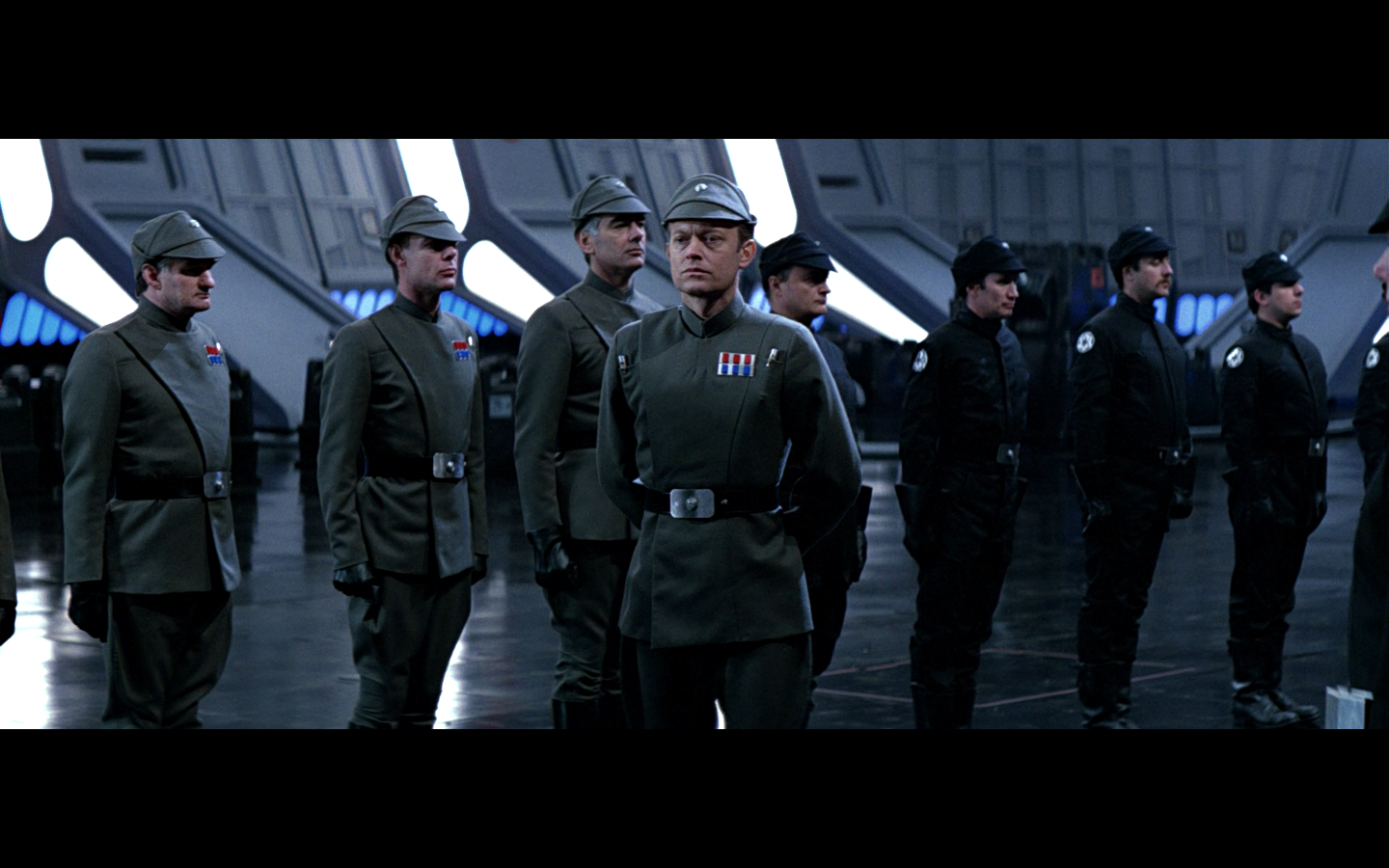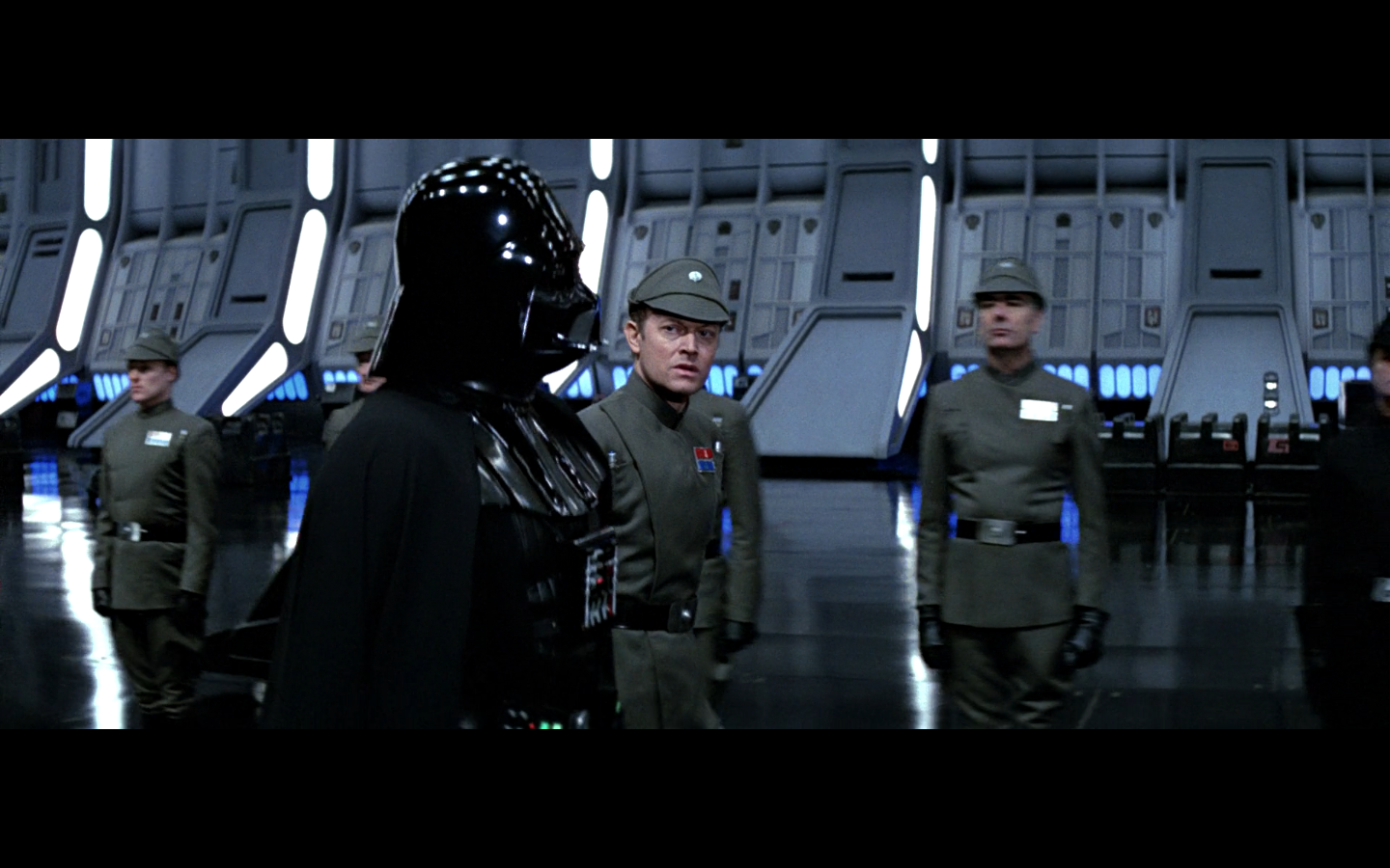 This whole scene is so awesome. It’s like the Soviet commanders catching hell from Bob Hoskins as Khrushchev in Enemy at the Gates. The Nazis are fucking them up and they have nothing to work with, but when Khrushchev shows up, their excuses ain’t worth shit. This is the guy who goes in the next room and blows his brains out. He thinks he’s doing his best, and Vader’s there to tell him about fucking prom queens and shit like that. I guess technically he fucked a real queen, which is better.