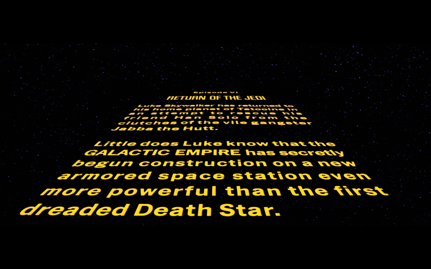 “Little does Luke know that the Galactic Empire has secretly begun construction on a new armored space station even more powerful than the first dreaded Death Star.”