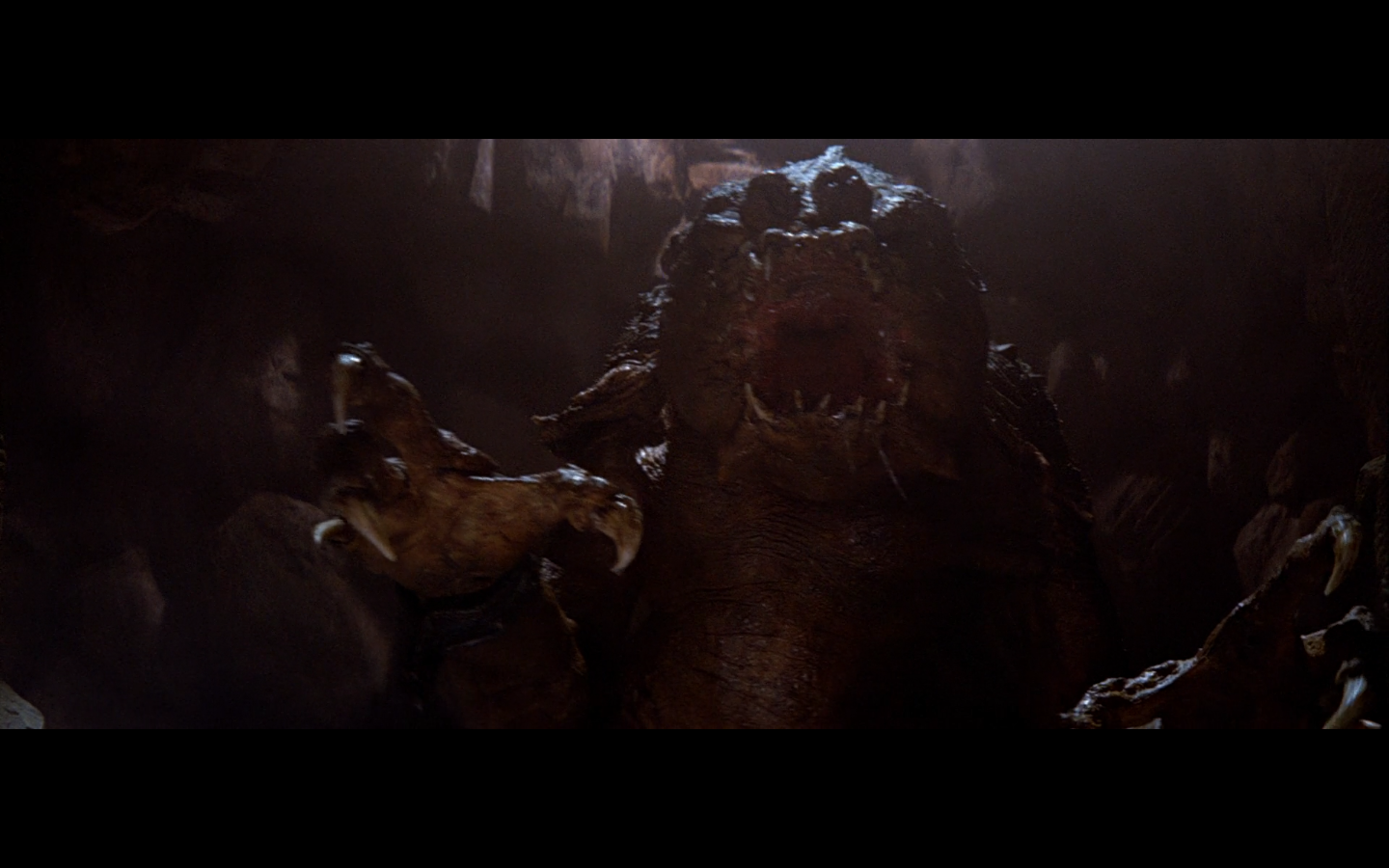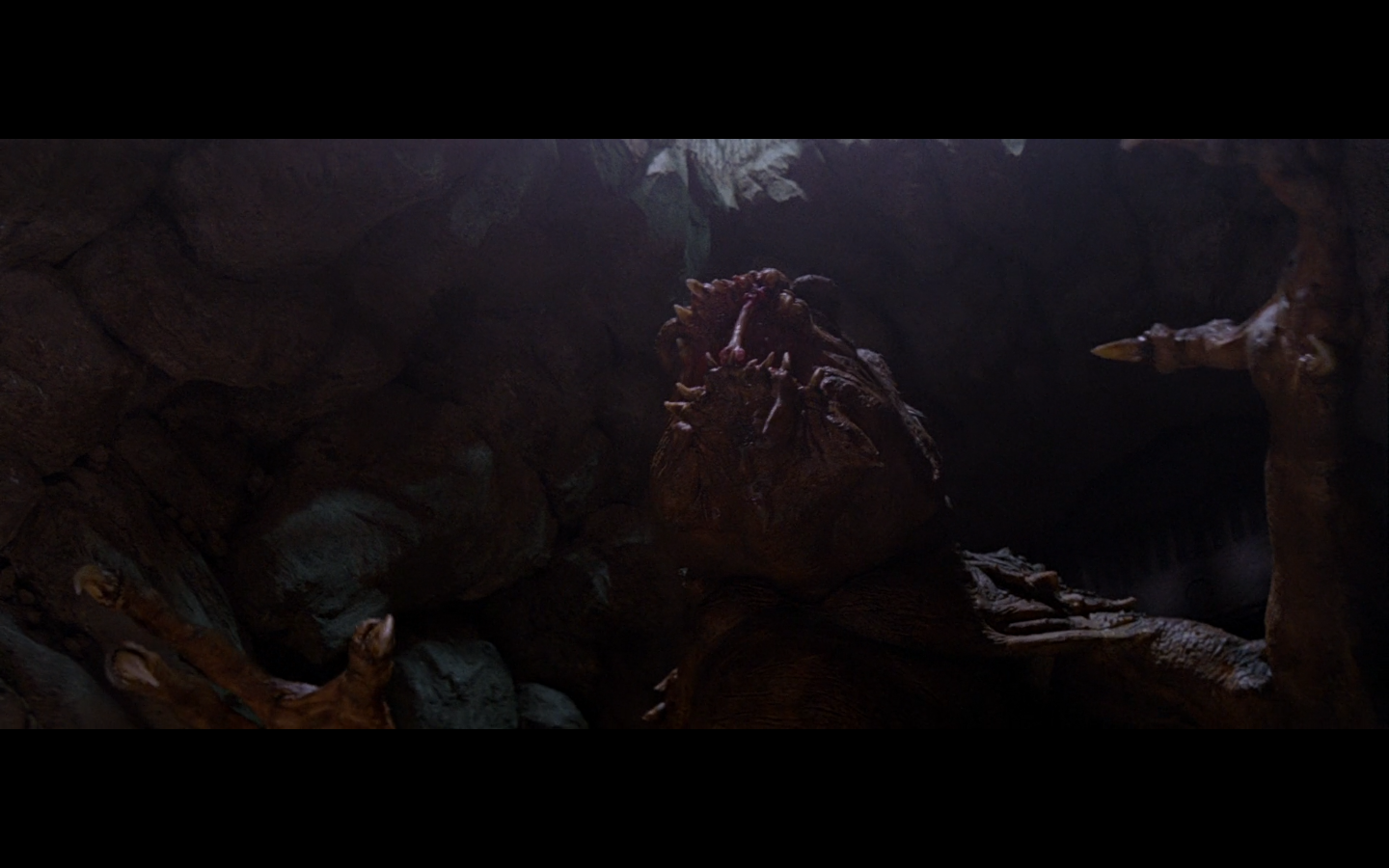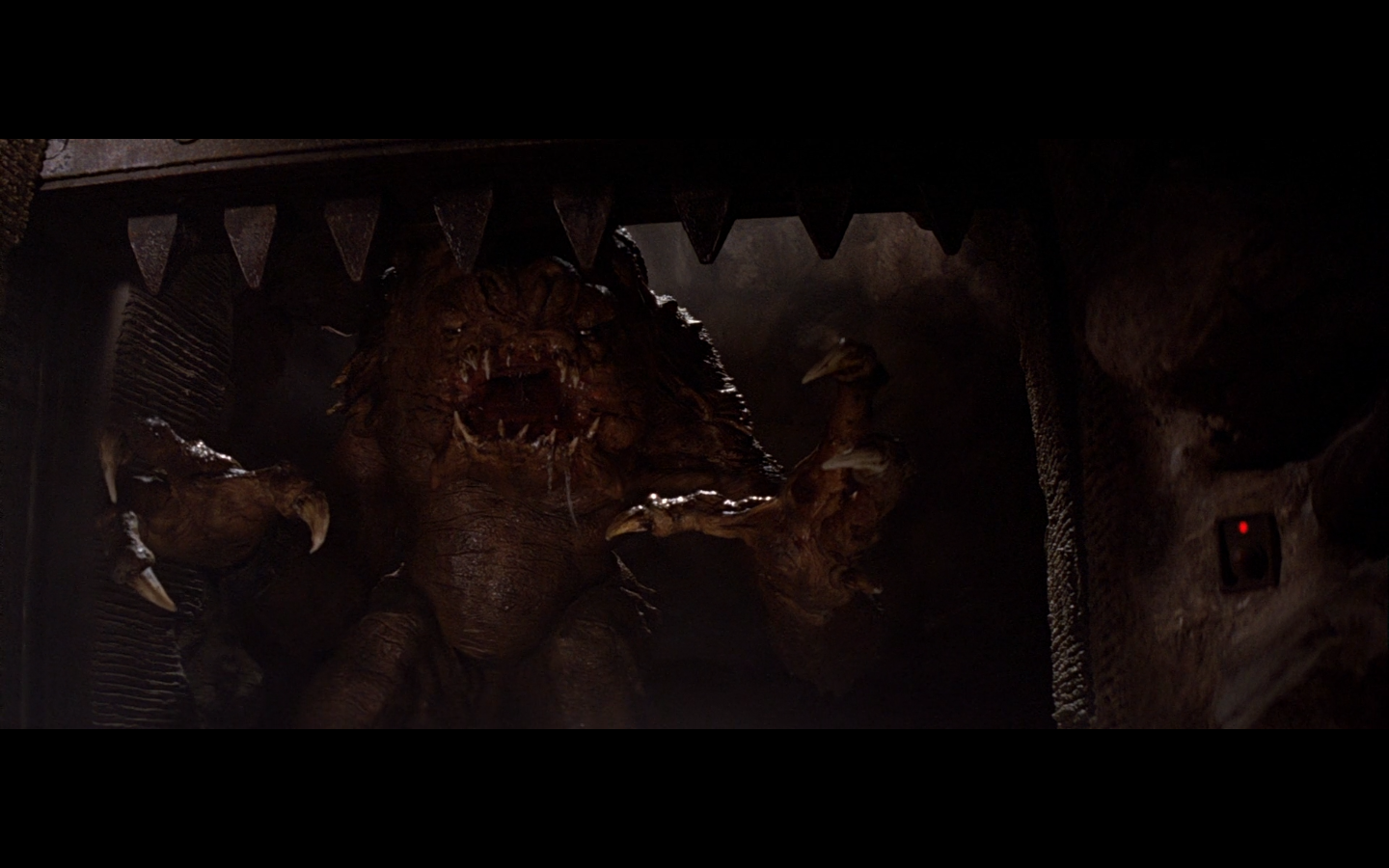 I like how he does this like the Rancor doesn’t have hands.Didn’t you JUST pick up a dude and rip him in half with your teeth? You can pull a fucking bone out of your mouth.