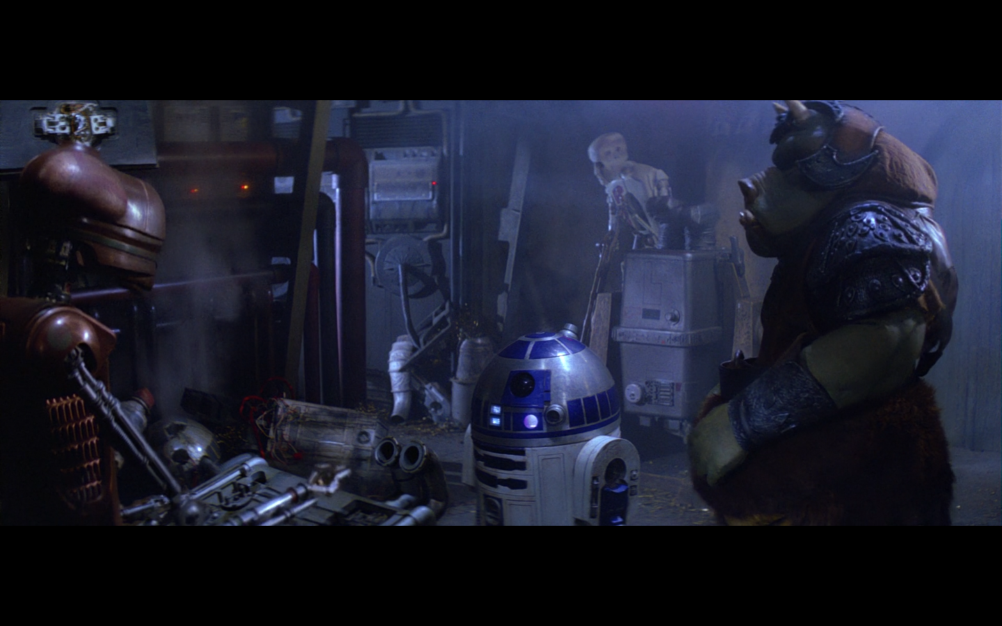 Empire was good, but the shots weren’t on the whole as beautiful as they were in New Hope, and here they’re just going through the motions. I’m curious how much of the blame is on Richard Marquand and how much is on George himself.