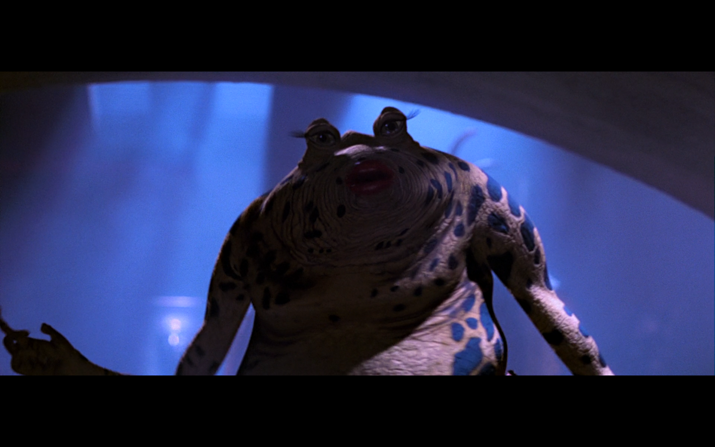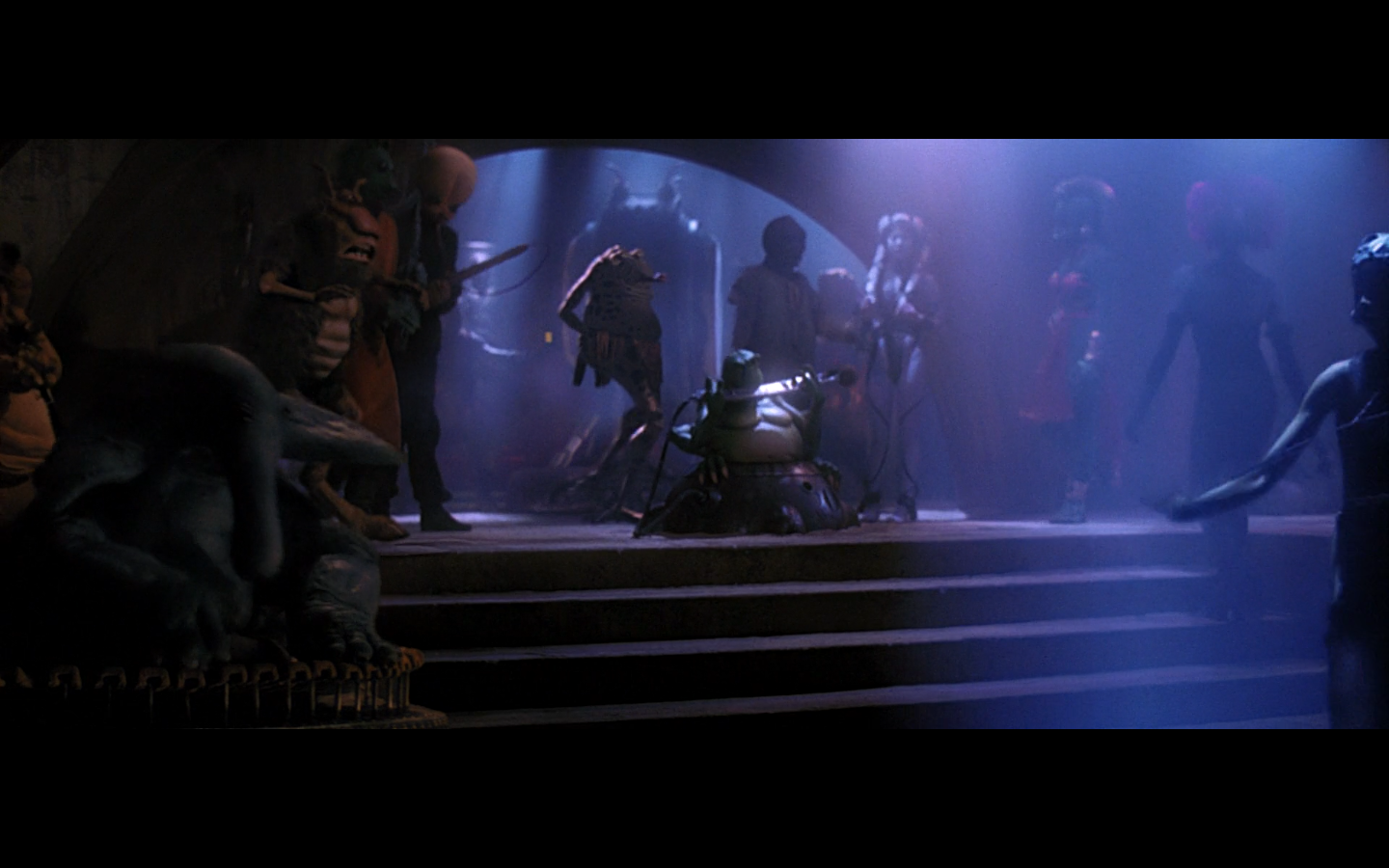 The FUCK is this creepy ass space frog outside the palace? Also, if Jabba’s such a badass crime lord (which he is), why is this palace off in the middle of nowhere, and why does he seem to be doing nothing but lounging around?