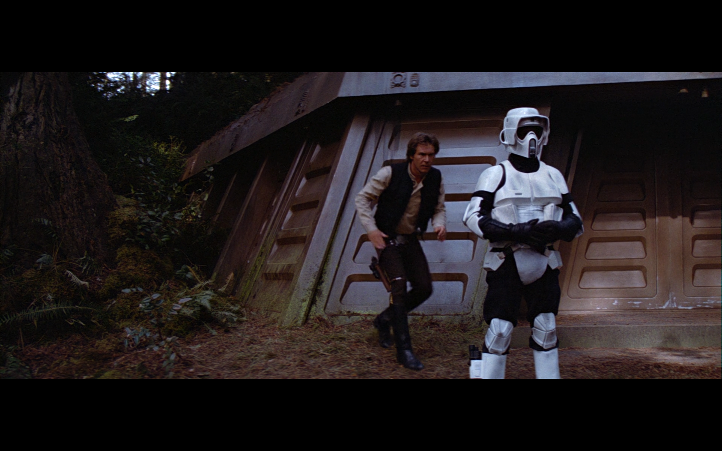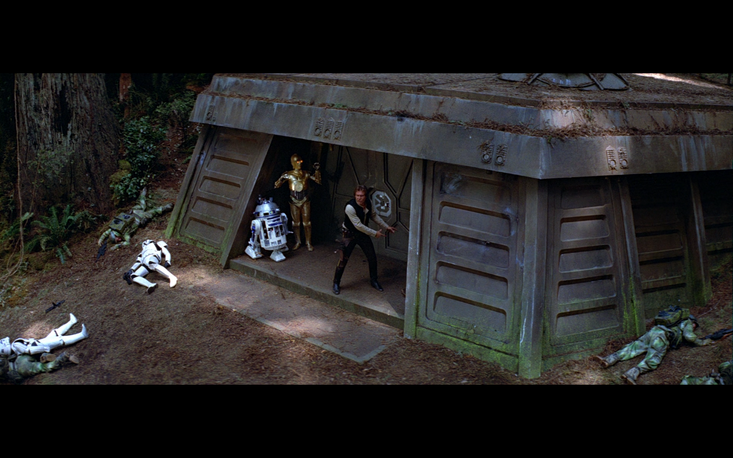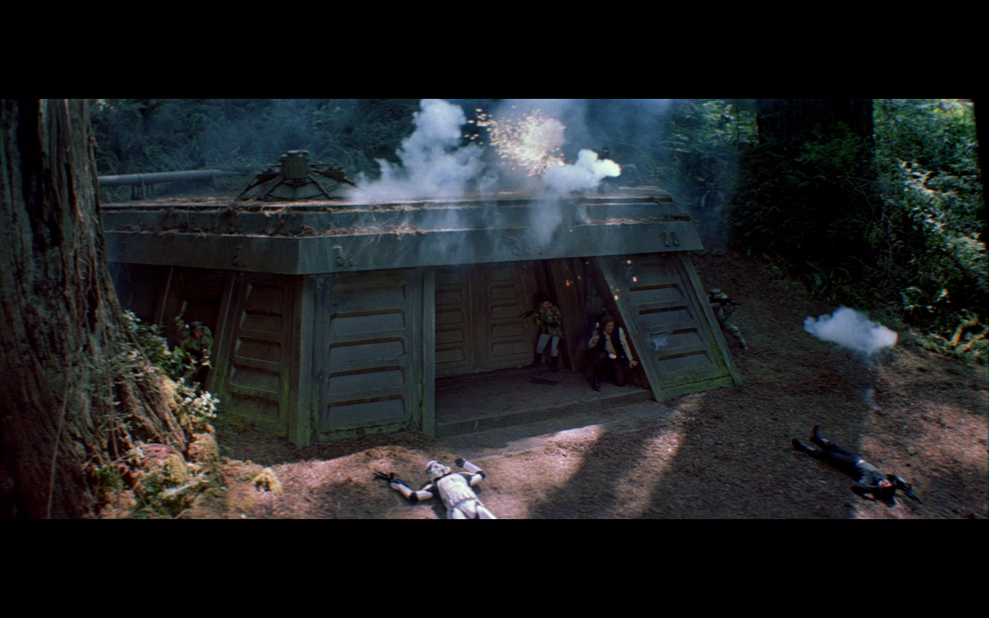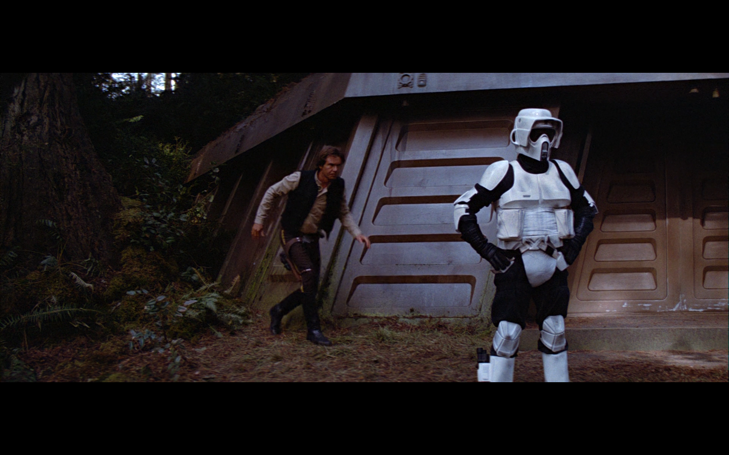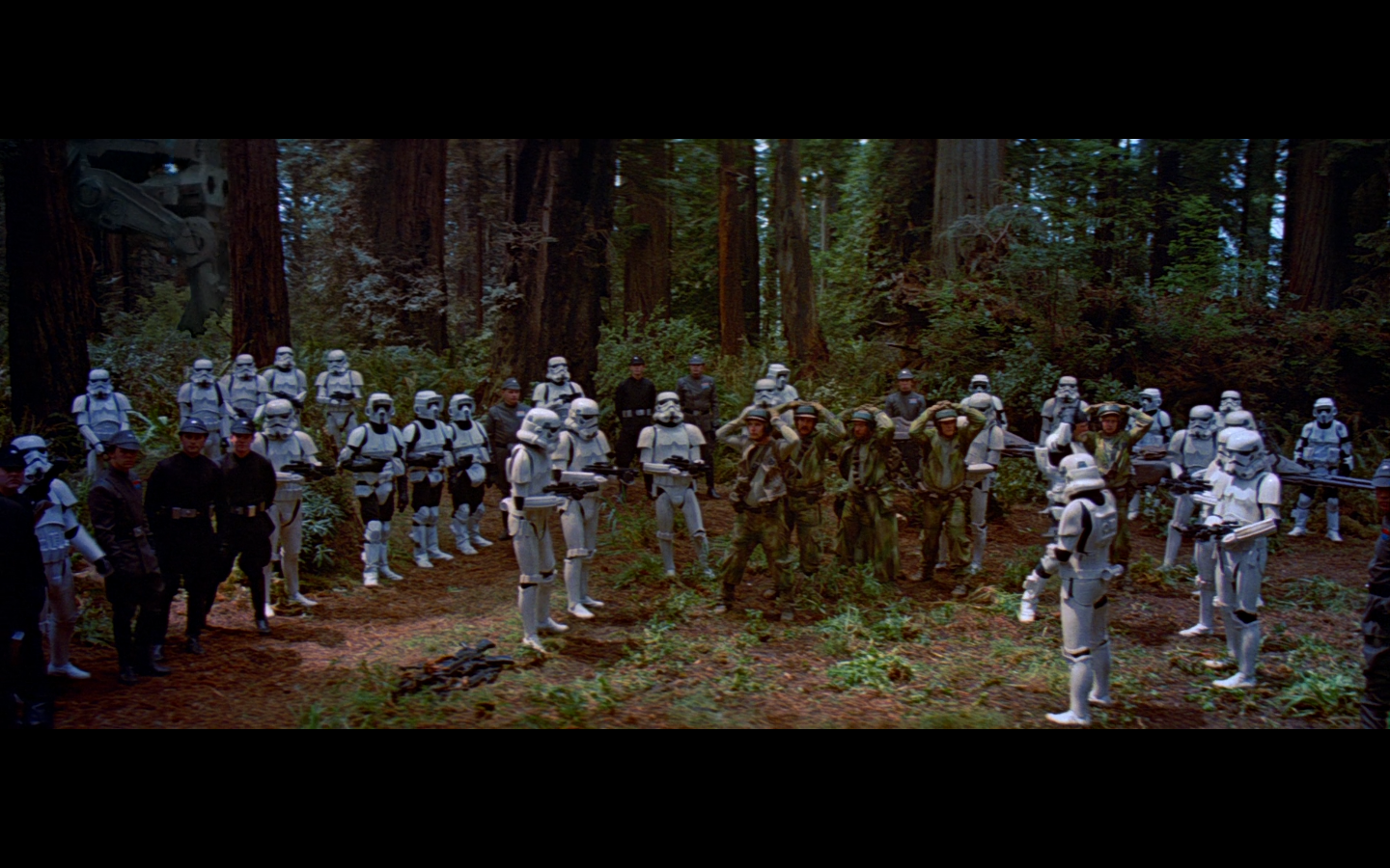 This shot would’ve been so much funnier if there weren’t also dead Rebels on the side. I love the idea of them having dialogue with the two dead Stormtroopers just lying there.